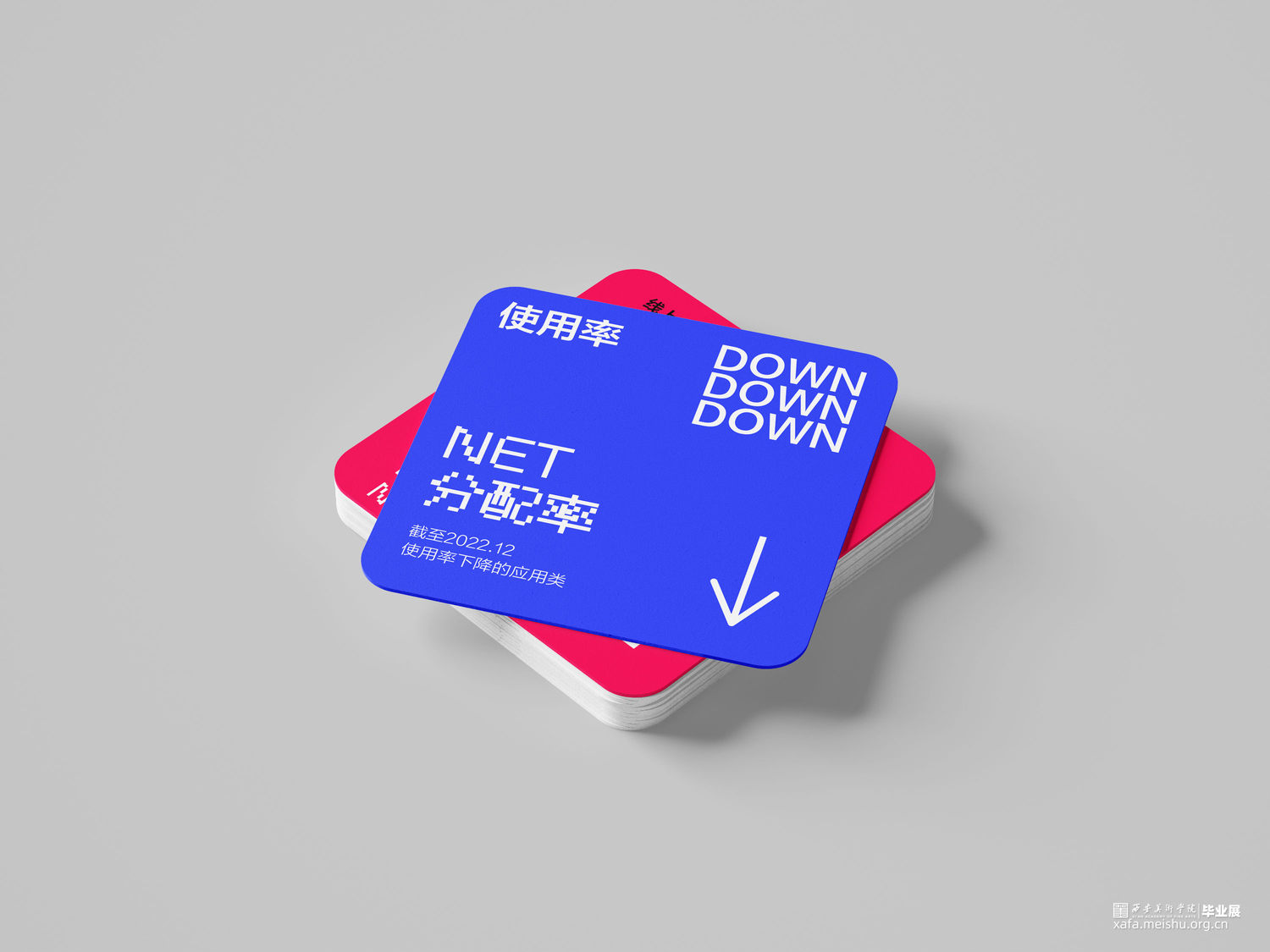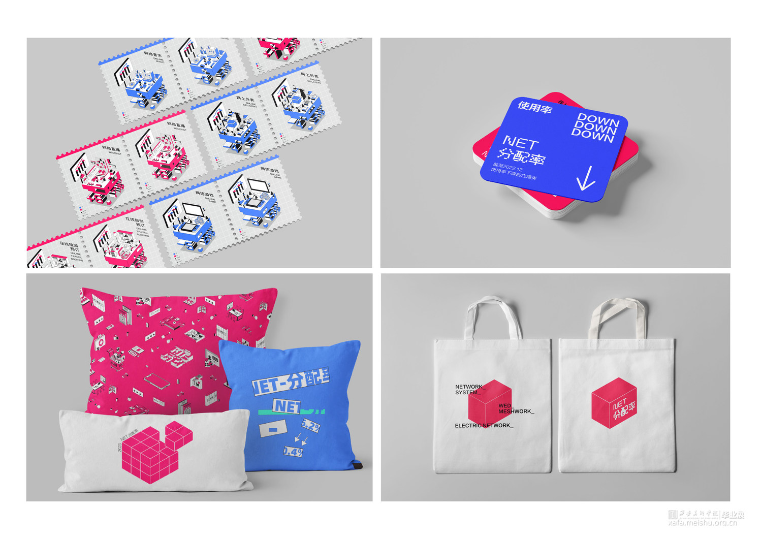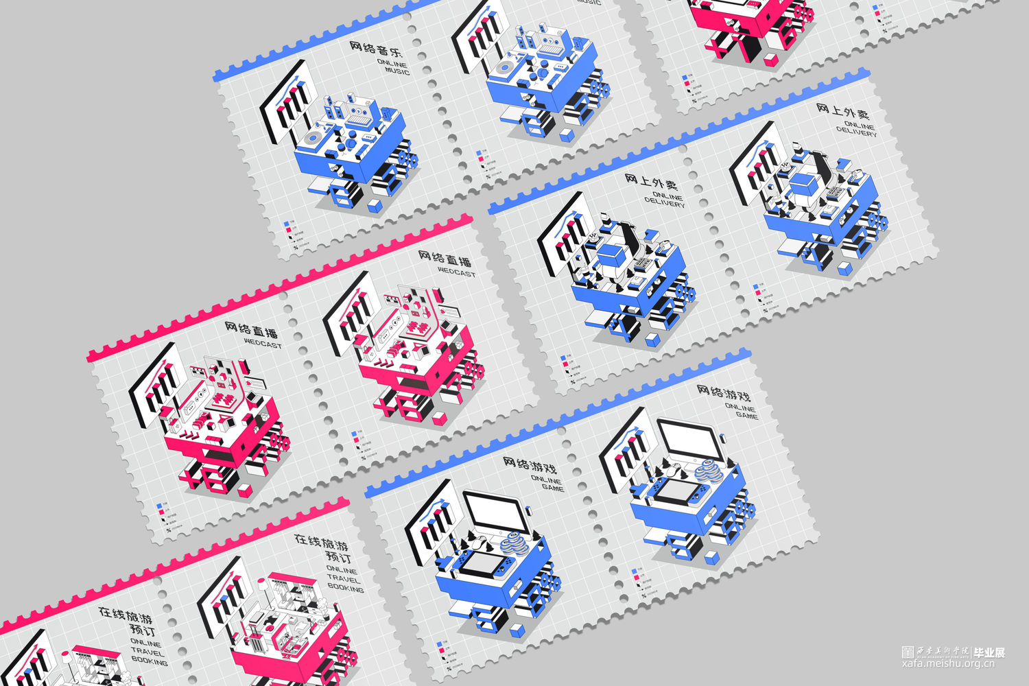 通过研究隐喻图形和信息图表,用2.5d插画的形式将网络对人们生活的影响以图解的方式转化为具像化图形,并用通过信息图表进行呈现。以“魔方”为原型来隐喻网络时代的千变万化,在现实的三维世界和网络虚拟的二维呈现中折中选择2.5d的形式来进行信息图表的绘制。将人们使用不同网络应用频率放在魔方这样一个平台上,解构重组,体现网络对人们生活的影响。其中红色代表使用率上升的网络应用,蓝色代表使用率下降的网络应用。