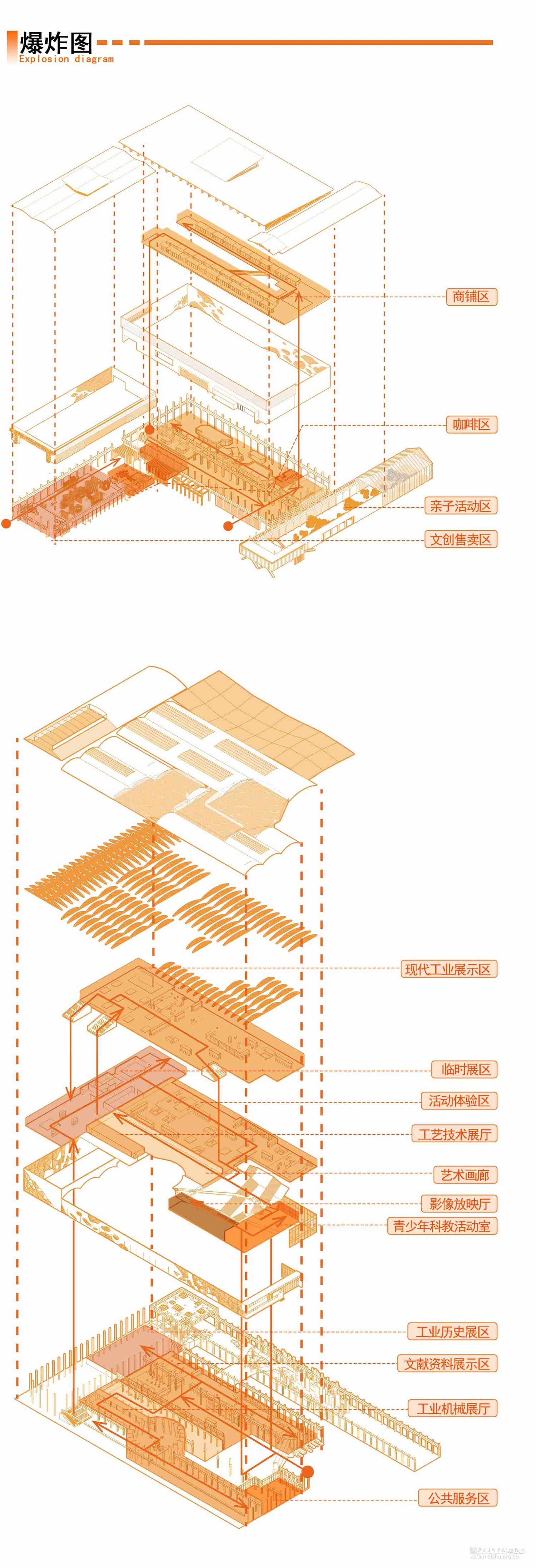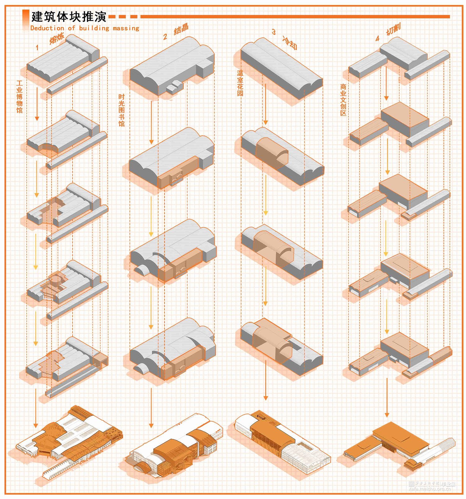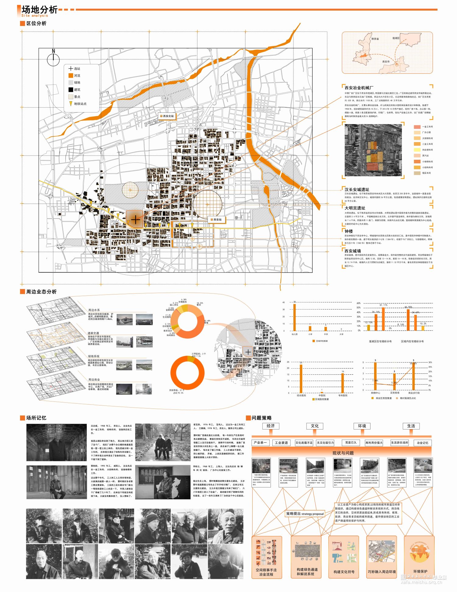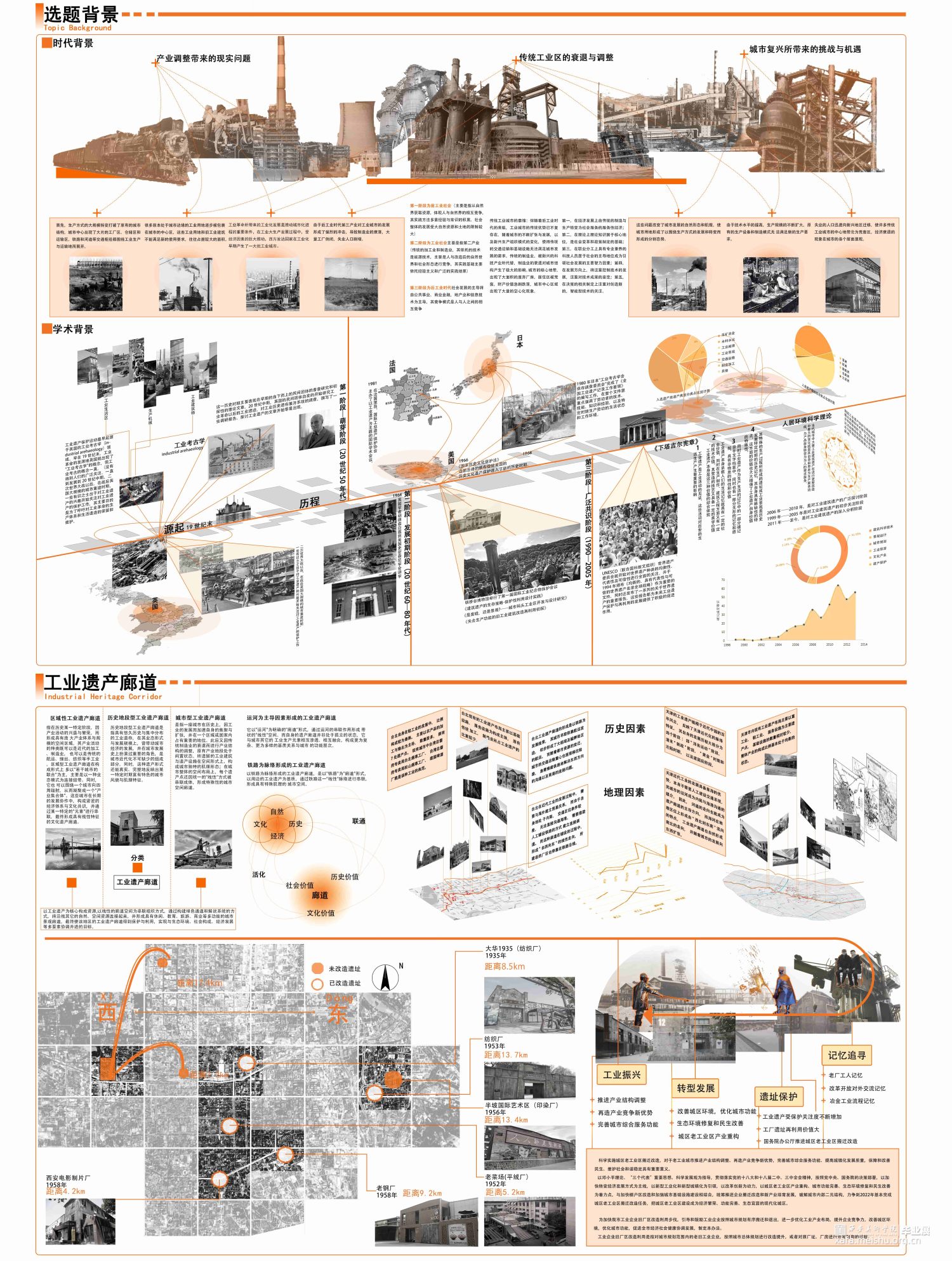 西安作为我国西部最重要的中心城市,其工业建设也是在相当早的时期开始建设并发展。经过多年的发展形成了具有相当规模的工业体系。通过对西安冶金机械厂遗址的改造,使其焕发新的活力,承载符合时代需求的新功能。唤醒老一辈集体的记忆,了解过去的艰难与荣誉。串联西安历史的过去与现在,感受时代的发展和工业的进步。通过对厂址的二次改造设计,唤醒原本工人曾经的记忆,同时也让后来的人们了解到过去的大生产时代的热情与活力,了解更多老一辈工人在厂区中艰苦奋斗,为祖国做出贡献的精神。采用叙事性的设计方法,选用西安冶金机械厂曾经获得冶金部科技进步一等奖的冶金产品——连铸机,以及连铸机的工作流程与原理作为本次设计的主要线索。将熔炼、结晶、冷却、切割这四大步骤融入到每个厂房的功能和造型的改造之中。将厂区曾经取得的辉煌成就融入设计之中,引导老一辈工人的自豪感,价值感。促使新一辈的人们也能通过这些当年的成果继续勇攀高峰。将冶金厂原厂区的南部区域改造为一个以文化历史展览为主,商业休闲为辅的综合文化园区。与西安城市东部的老钢厂、老菜场、大华纺织厂和半坡国际艺术区相呼应,与之配合形成一个相对完整的城市型工业遗产廊道。为周边居民提供一个可参观游览的休闲场所,对于外来游客来说,此场所可作为一个了解我国西部工业发展历史,参观西部现代工业成果的一个重要窗口。亦可以作为广大中小学生的一个爱国主义教育基地和历史学习基地。