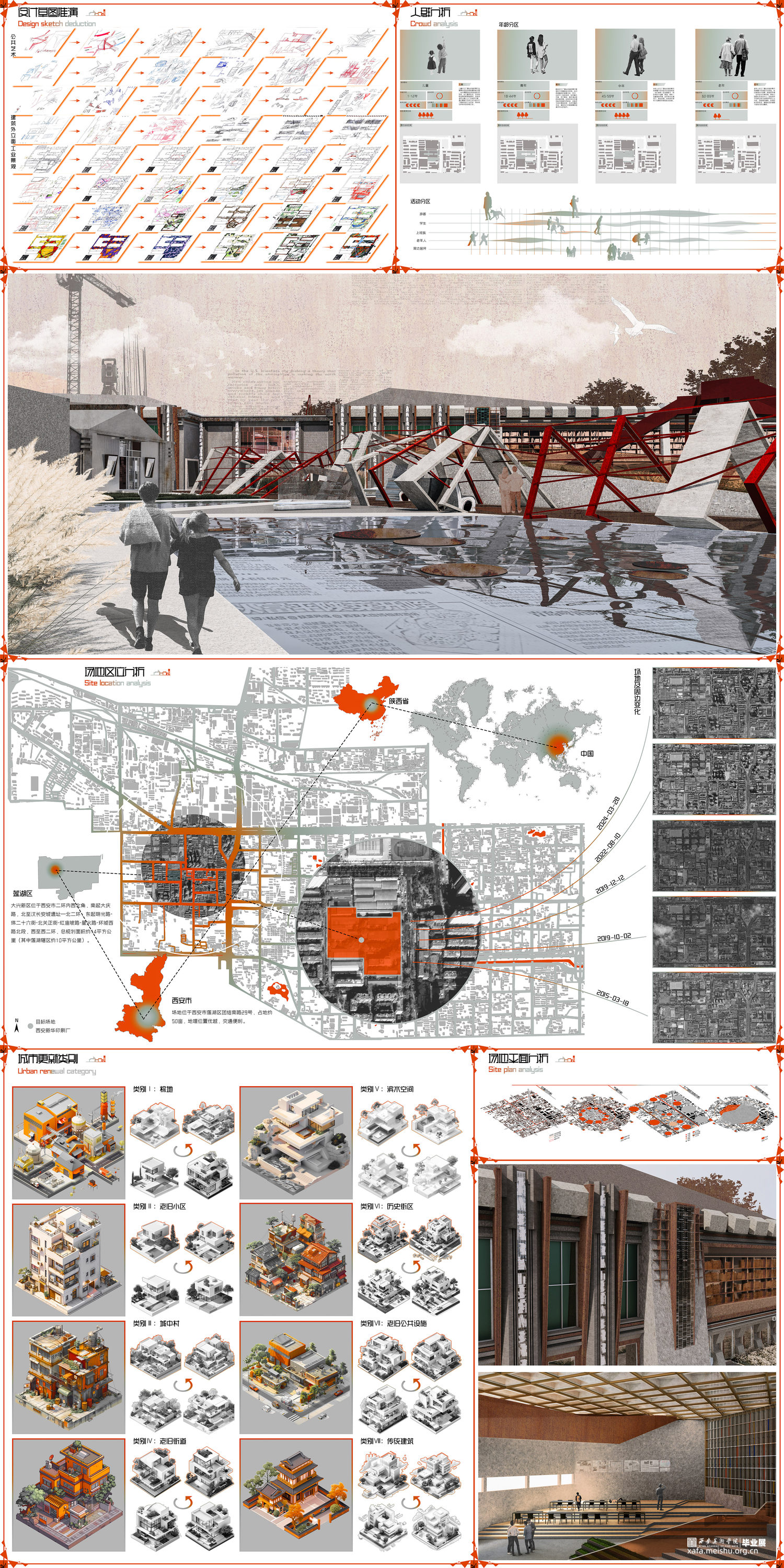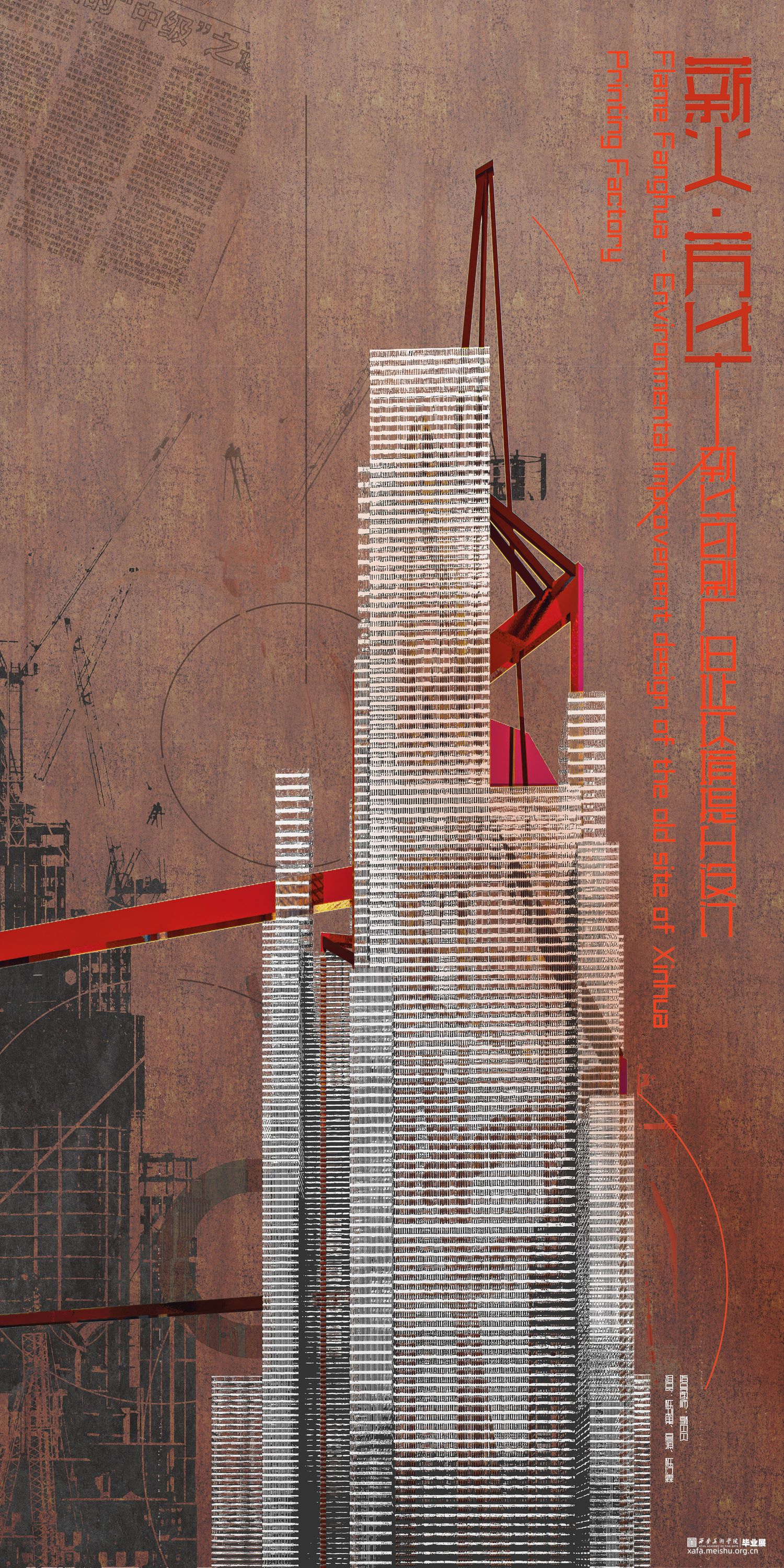 本设计选址西安新华印刷厂,该厂房位于西安市莲湖区(未来规划大兴新区),西安新华印刷厂与祖国同岁,在祖国75周年诞辰之际,选择此场地进行城市更新,对其进行传承记忆与更新。