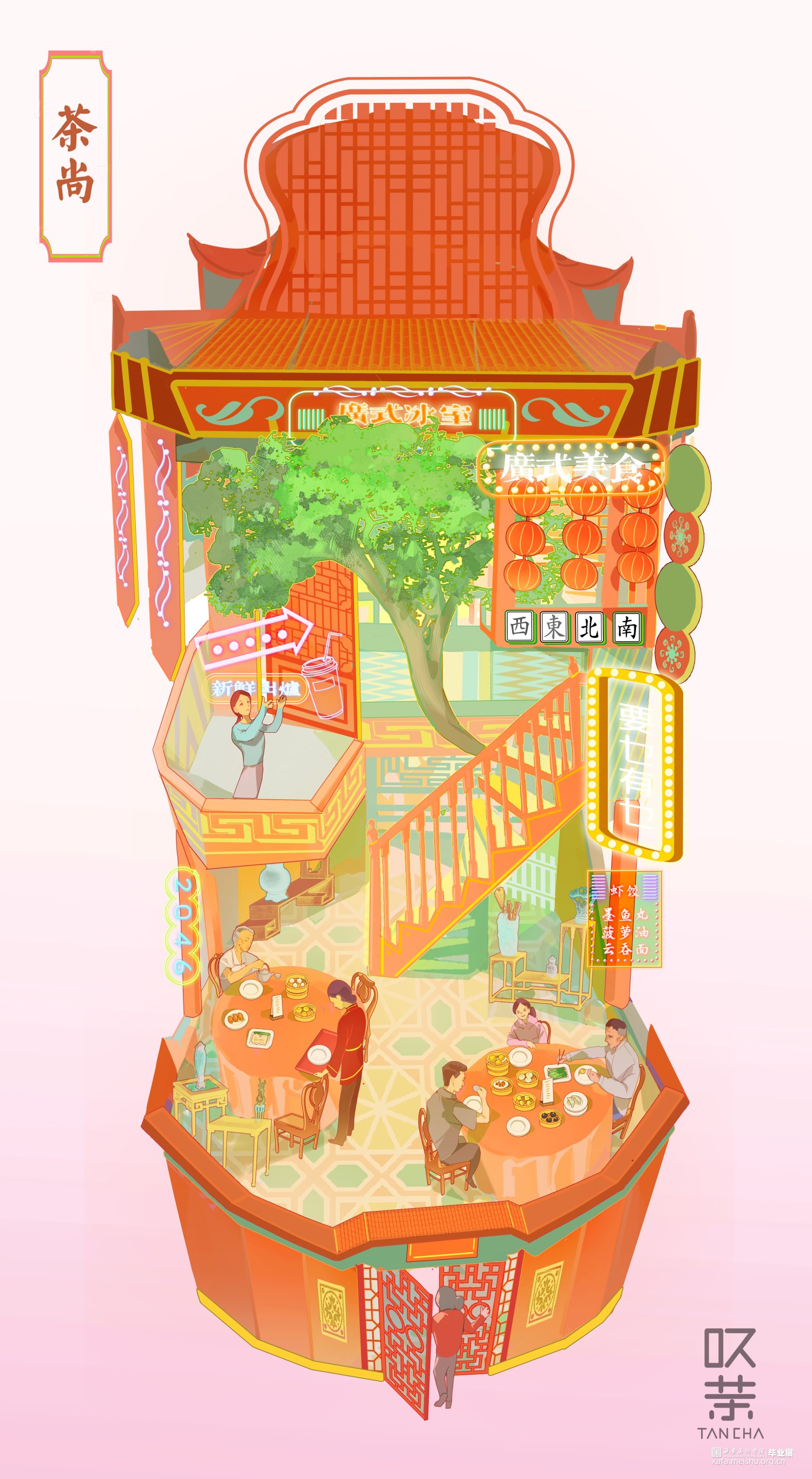 《叹茶:⼴式早茶⽂化》项⽬是⼀个融合艺术与⽂化的创新尝试。通过插画和绘本的形式,我们将带领观众穿越时光,探索⼴式早茶⽂化的丰富内涵和历史渊源。从清朝的古⽼茶楼到现代的时尚茶馆,我们将⽤艺术的笔触勾勒出⼴式早茶在不同时期的变迁与传承。这不仅是⼀次视觉盛宴,更是⼀次⽂化之旅,让⼈们在欣赏的同时,深切感受到⼴式早茶⽂化所蕴含的历史沧桑和⼈⽂情怀。