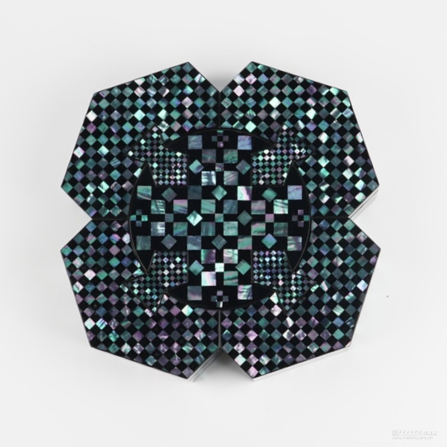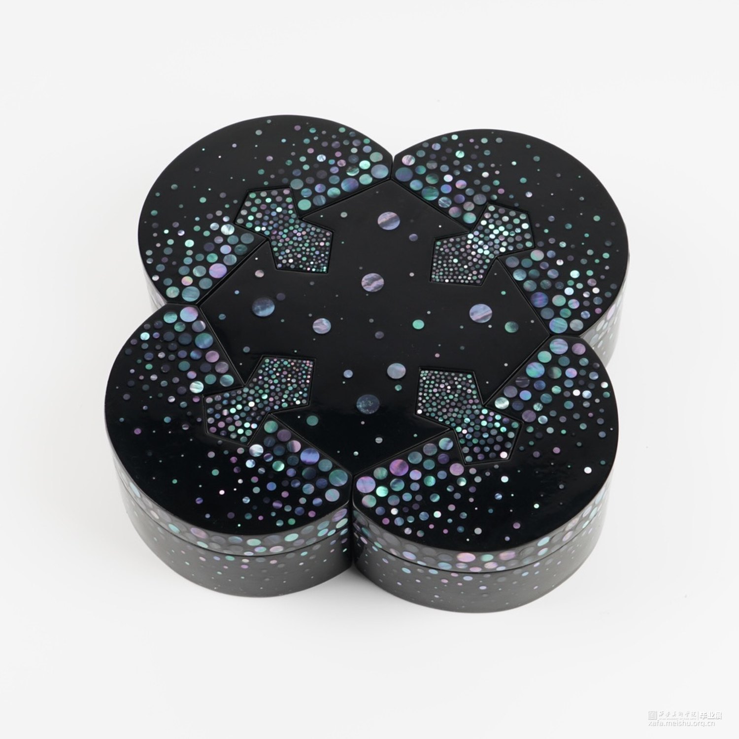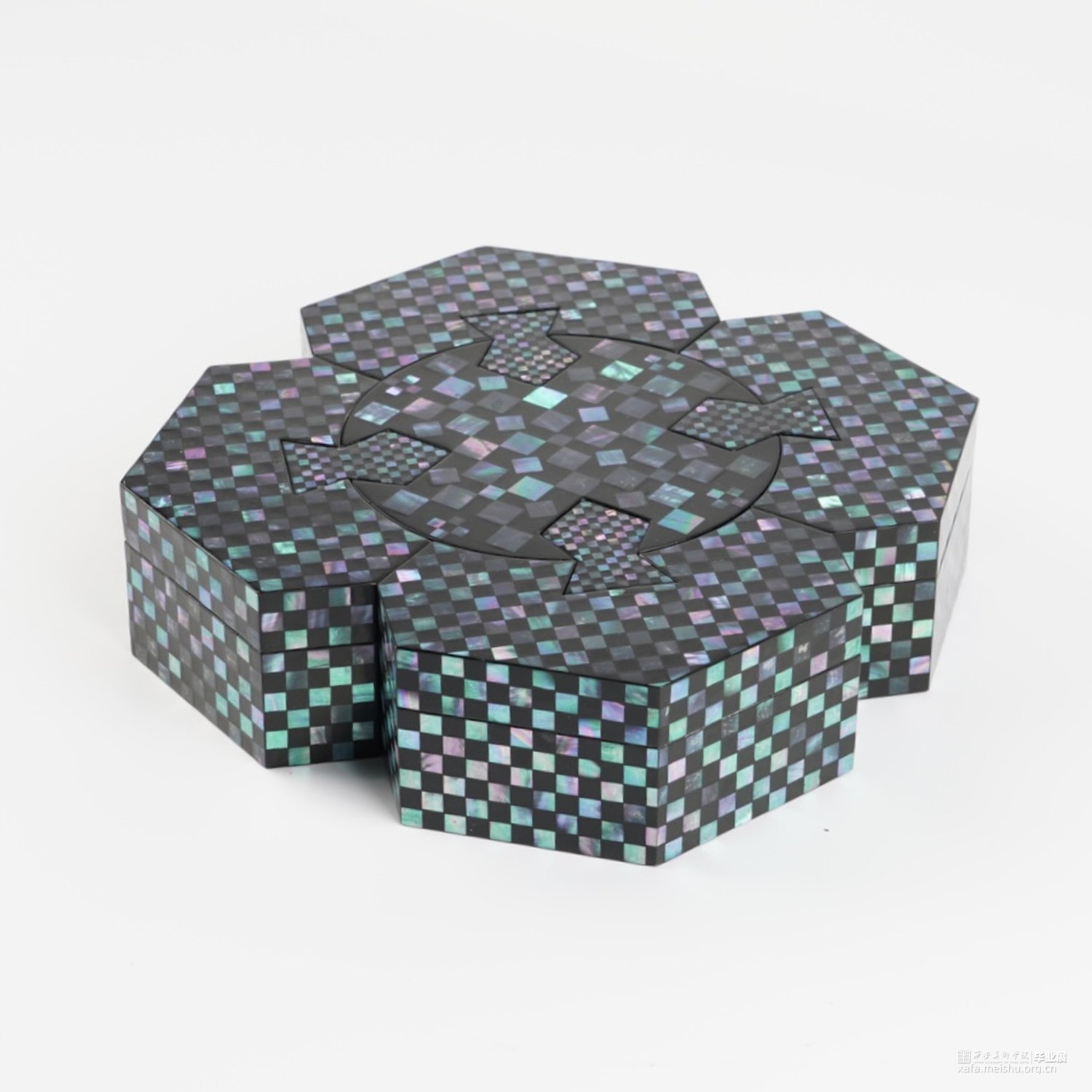 这款漆盒不仅传承了中国传统漆工艺、榫卯结构与螺钿镶嵌工艺,更融入了现代科技感,使得传统工艺与现代审美完美融合。