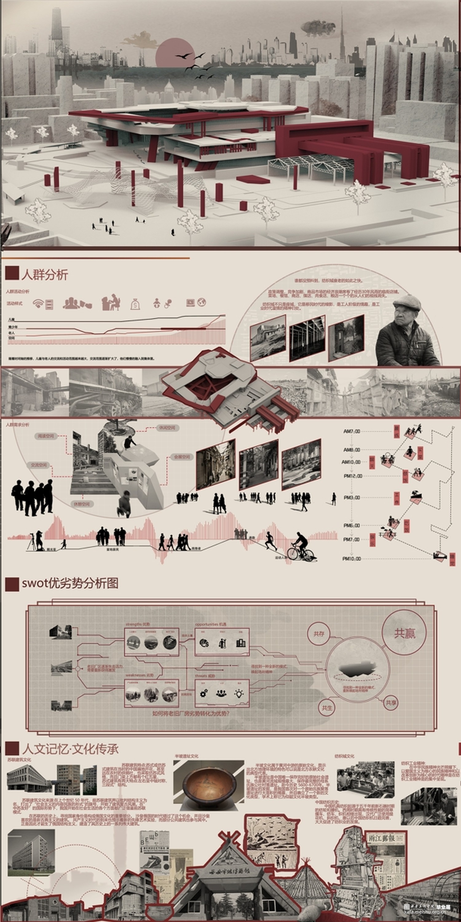在日渐发展的城市化进程中,老旧的厂区和规划被逐渐地抛弃和被遗忘。老旧的厂区厂房既有隐藏的经济,资源重新利用价值,也有独特的美学风格。使遗弃的工业园区重新利用,通过再设计,结合现代技术,唤起生活过的人们心里曾经的场所记忆,使原有场地得到最大化利用;那些没有经历过这段峥嵘岁月的人们,也能因为场地功能的原因,成为周边居民活动交流的精神场所,使得场所精神在新时代也能更换形式延续下去,这样带动了周边居民幸福度的提升,间接带动了城市文化遗产的保护。总结老旧厂房的改造经验,从中提取出一些废弃厂房的改造方向方法,能够更好