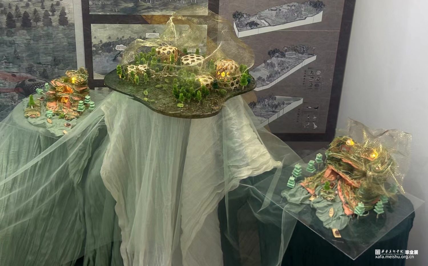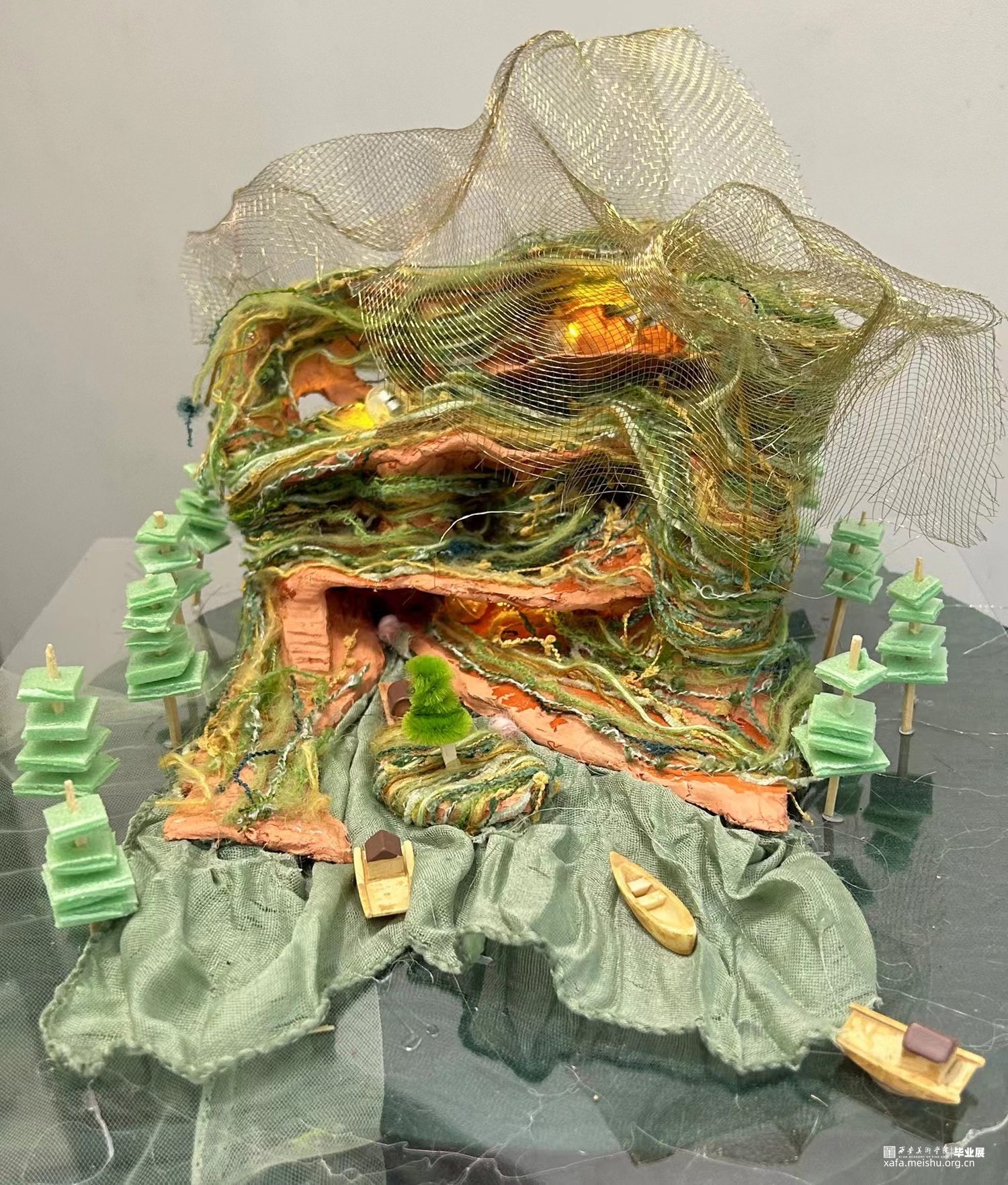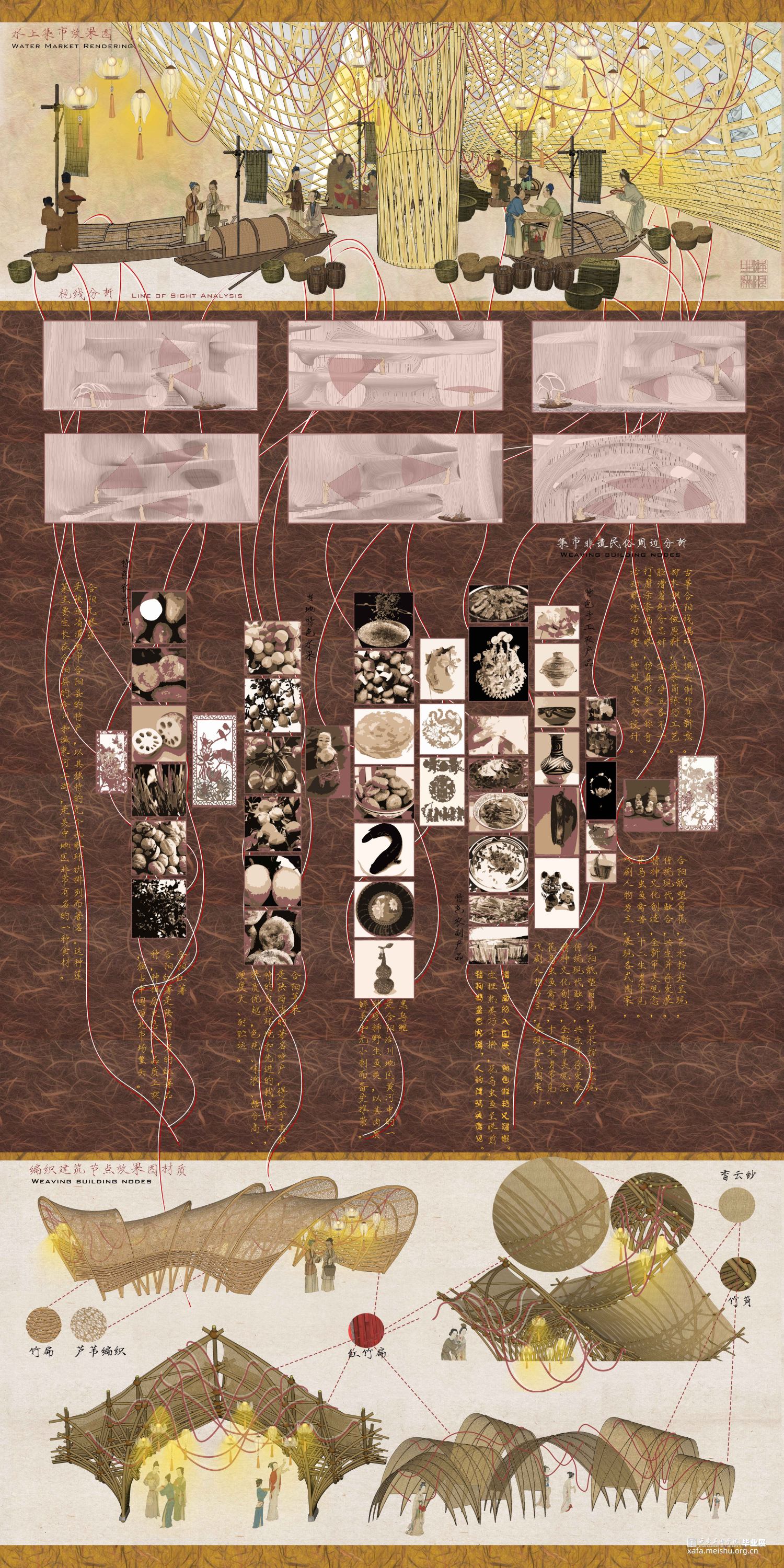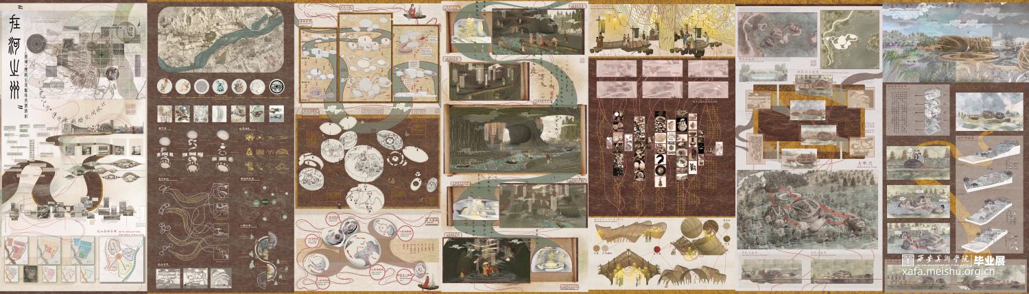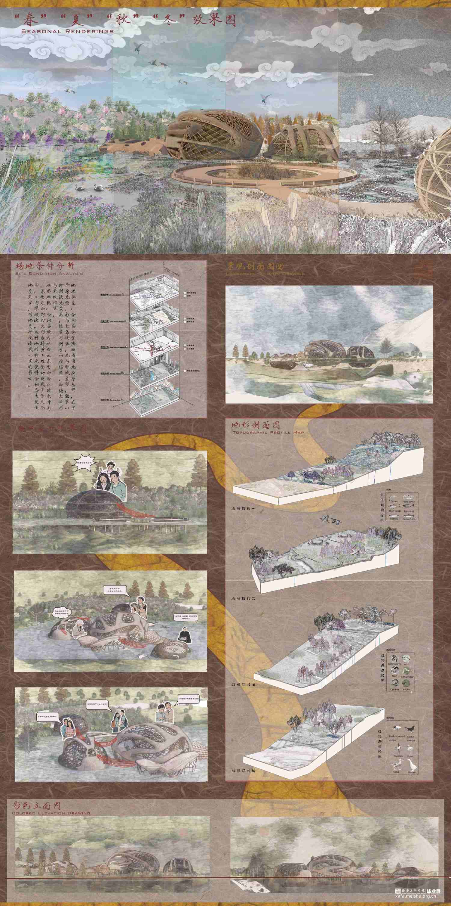 本作品以诗经《关雎》为线索,受到黄河流域的非物质文化的启发,结合剧场空间这一载体,意图采用当代与传统相结合的手法,致力于创作一个诗情画意、可持续性的空间环境。我们希望通过这个设计,将诗经中的诗句与空间相结合,让书里的诗句走出二维平面,来到三维空间,并且可以引发人们对于环境共生型空间设计的思考和共鸣。
