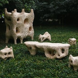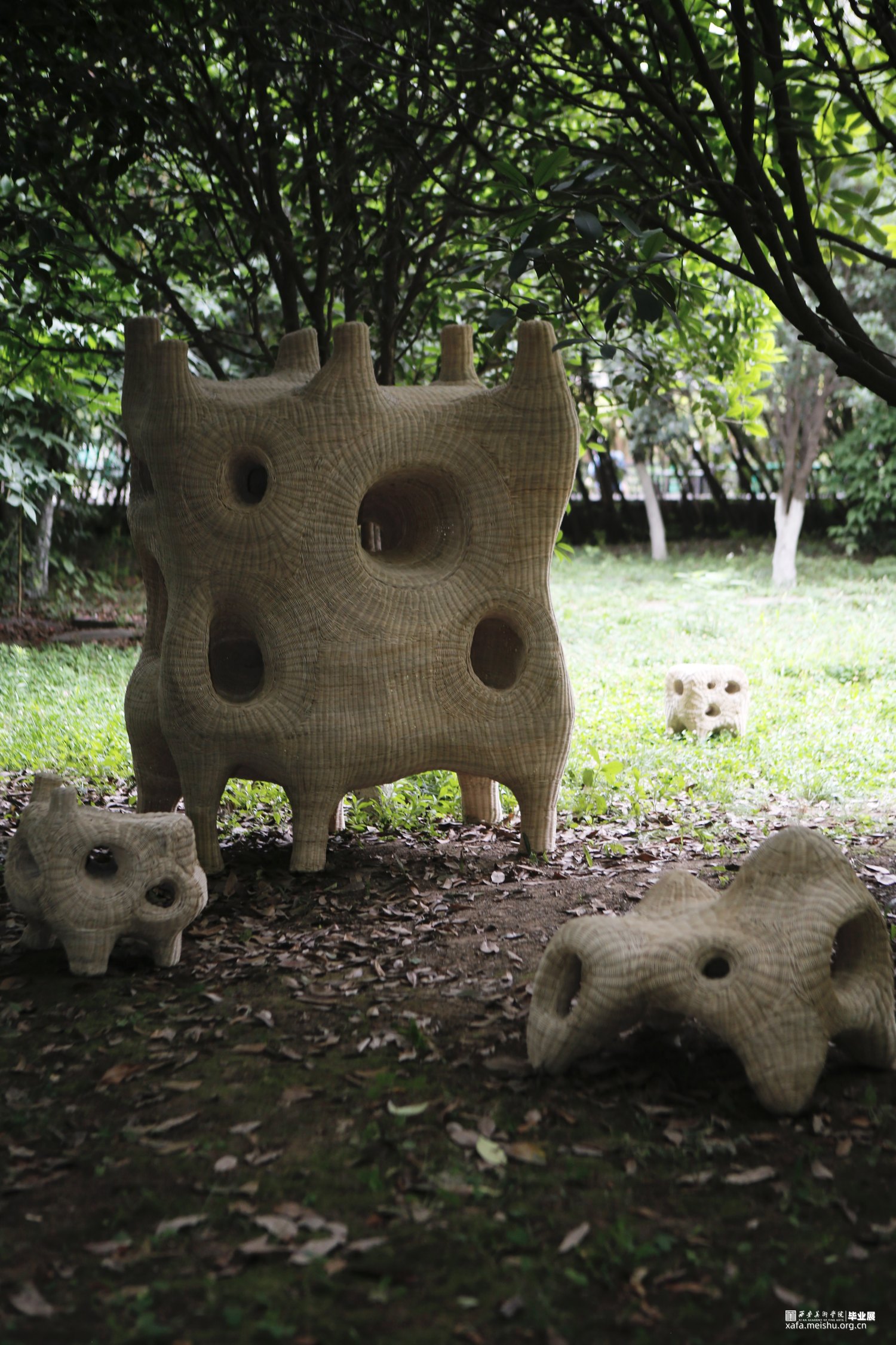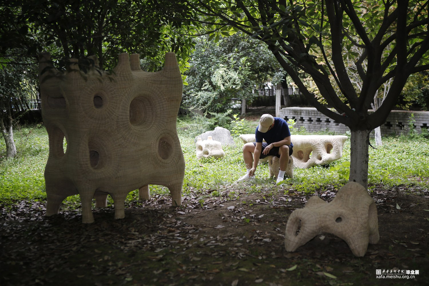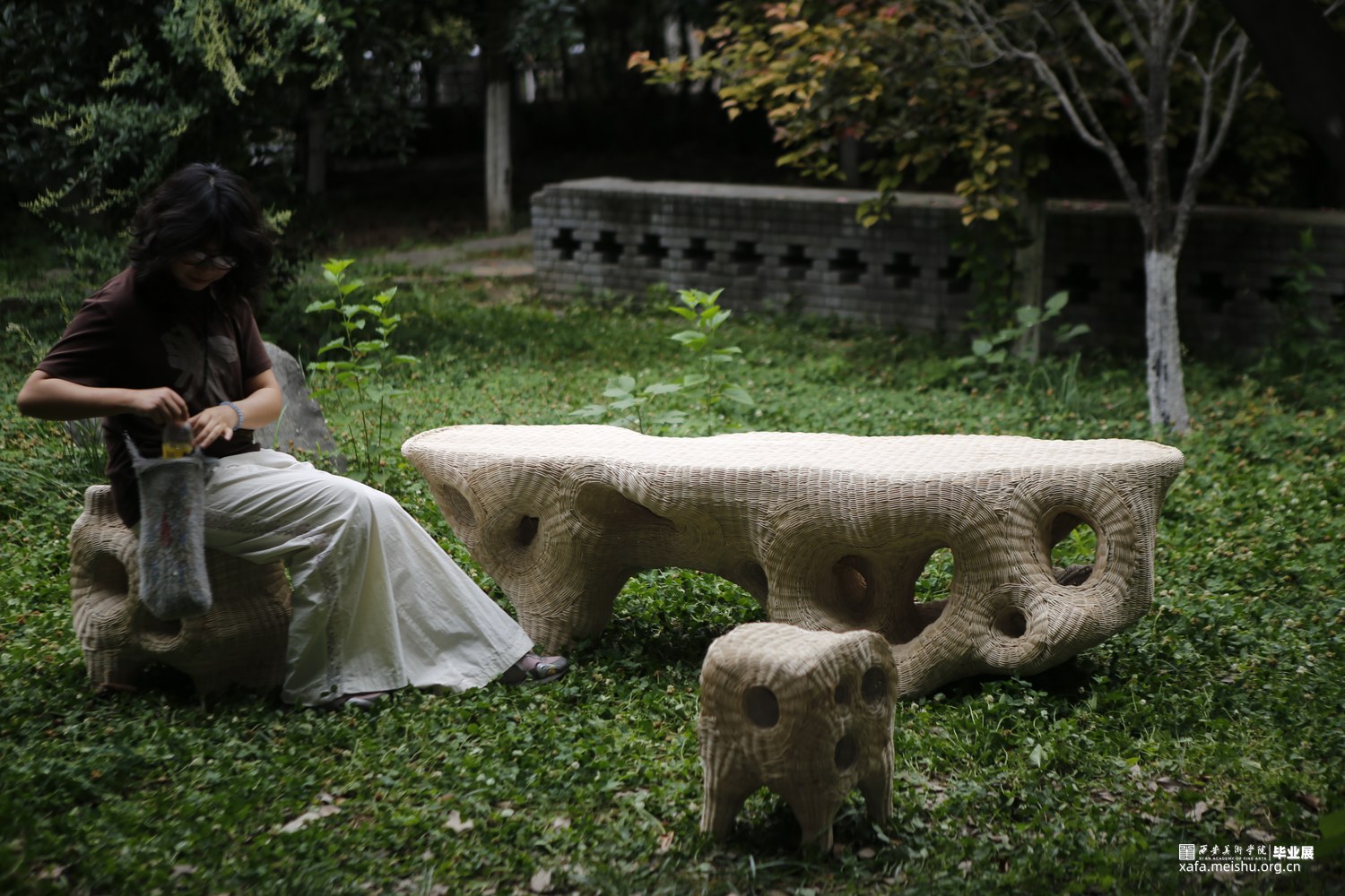 在这组作品当中,每一件作品都如同一块精心雕琢的自然艺术品,展现出孔洞与曲线的和谐美感,犹如太湖石的天然纹理,带给人一种回归自然的宁静与舒适。家具的结构设计受自然溶洞启发,形成独特的空间感和透气性,既美观又实用。而陕北的地形地貌的元素则赋予作品一种深厚的地域文化内涵,仿佛将当地的风土融入到了现代家居的生活当中。