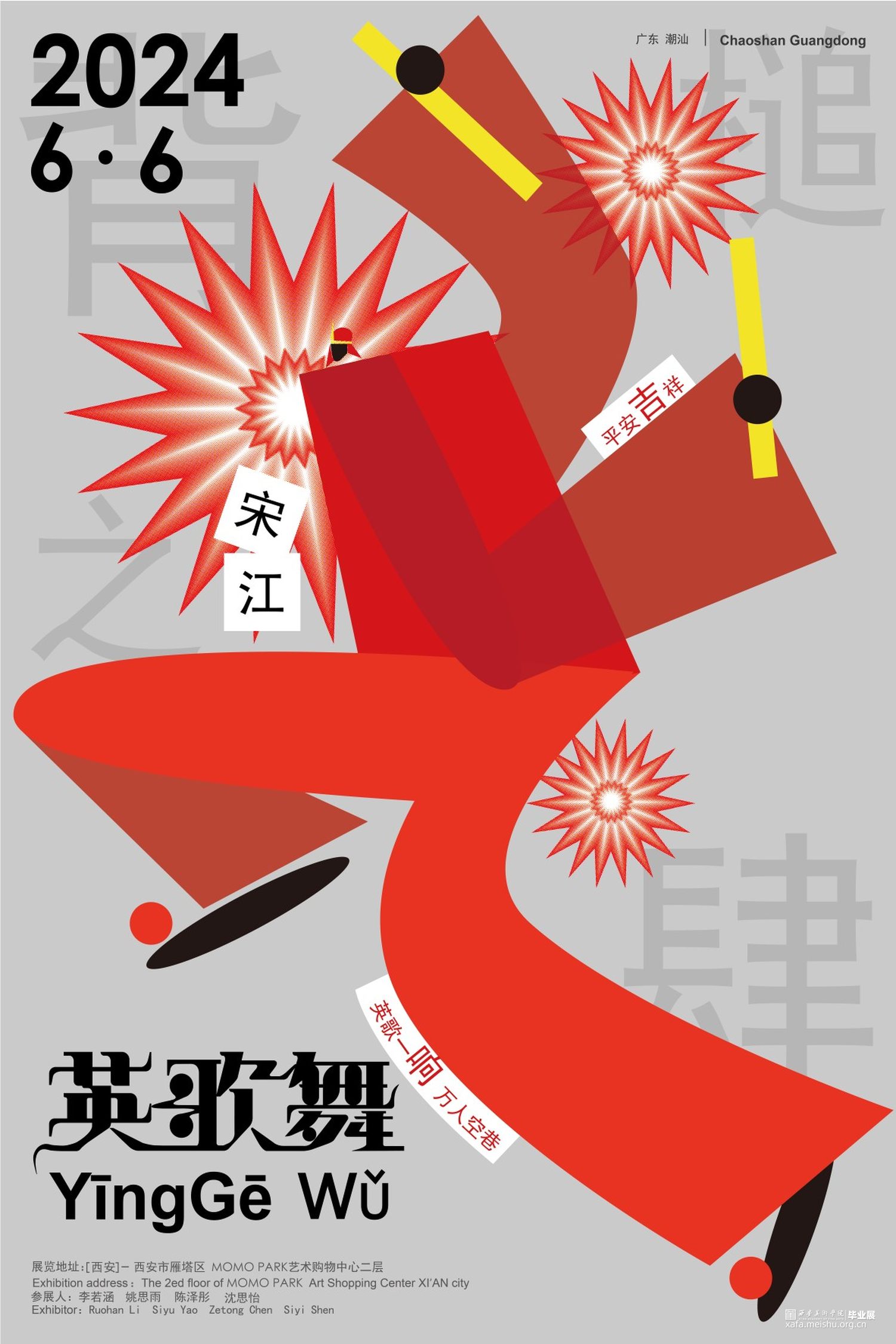 本次设计方案的制订主要以潮汕英歌文化里的人物为基础,以英歌的“动势”贯穿整个作品。简洁、清晰的图像设计,往往能够激发观众的情感共鸣与认同。通过鲜艳的色彩、简洁的线条和凝练的形象,希望能够打动观众的心弦,引起情感共鸣,唤起对传统文化的自豪感和认同感。