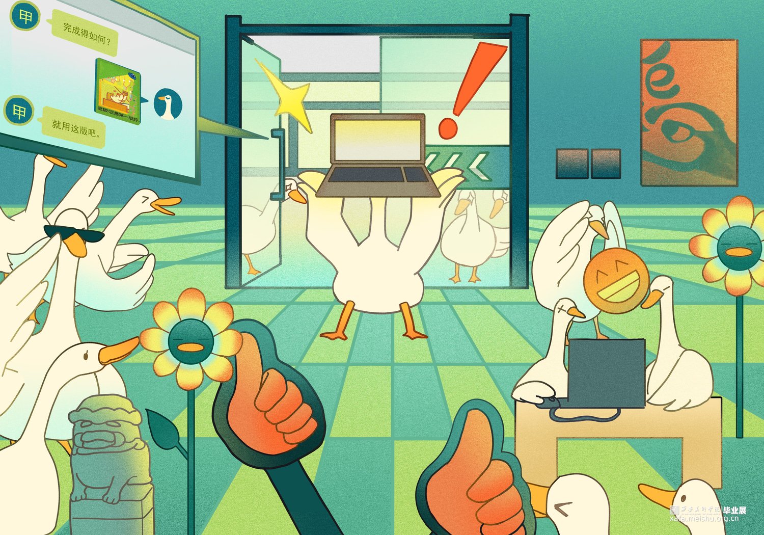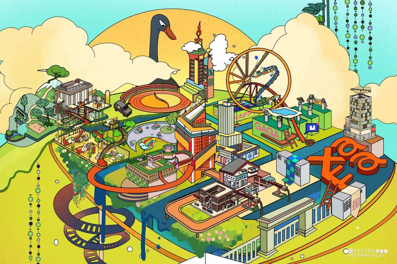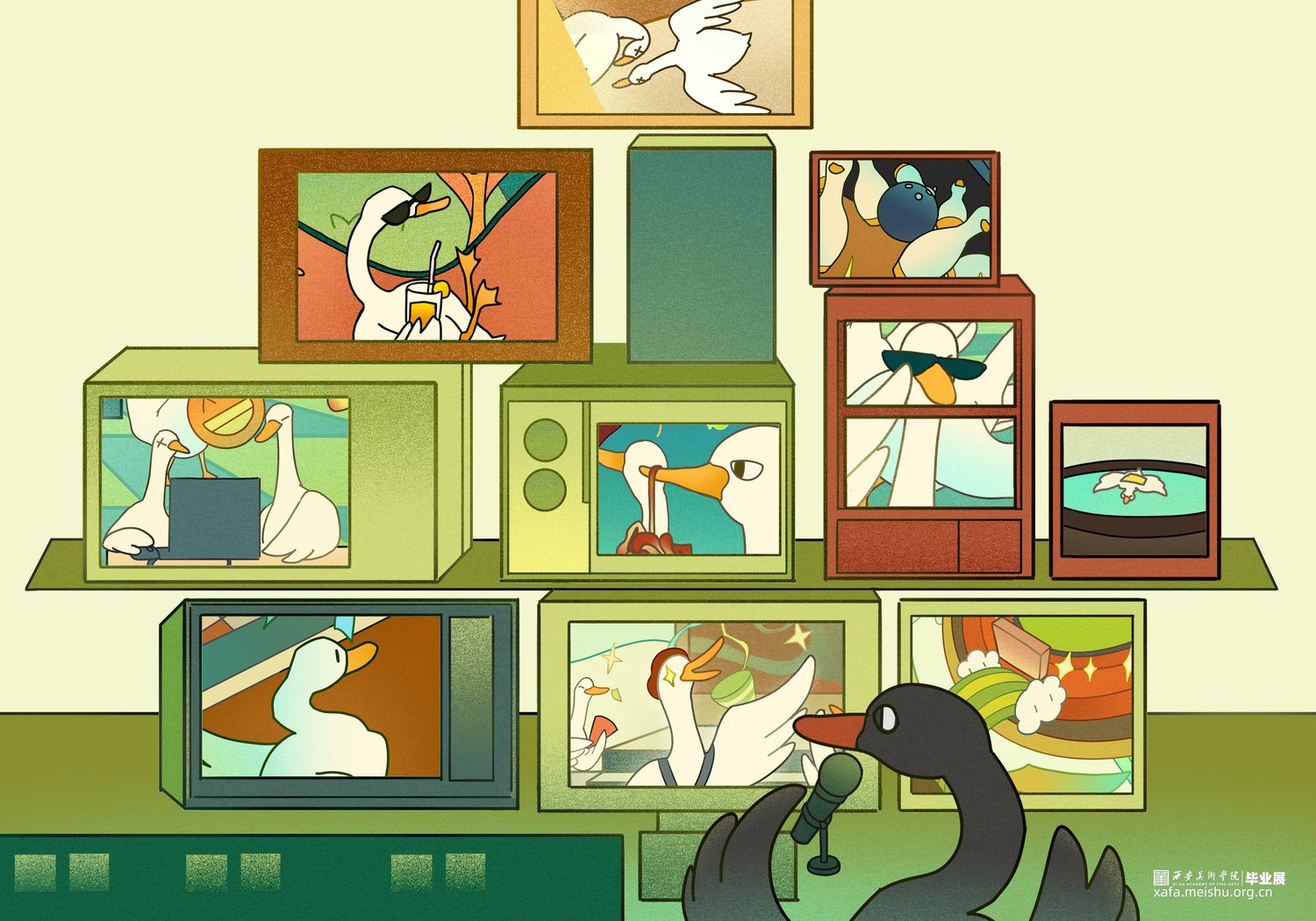 《西美乐呵鹅》是基于西安美术学院地图而设计的一款虚拟解压体验场所。