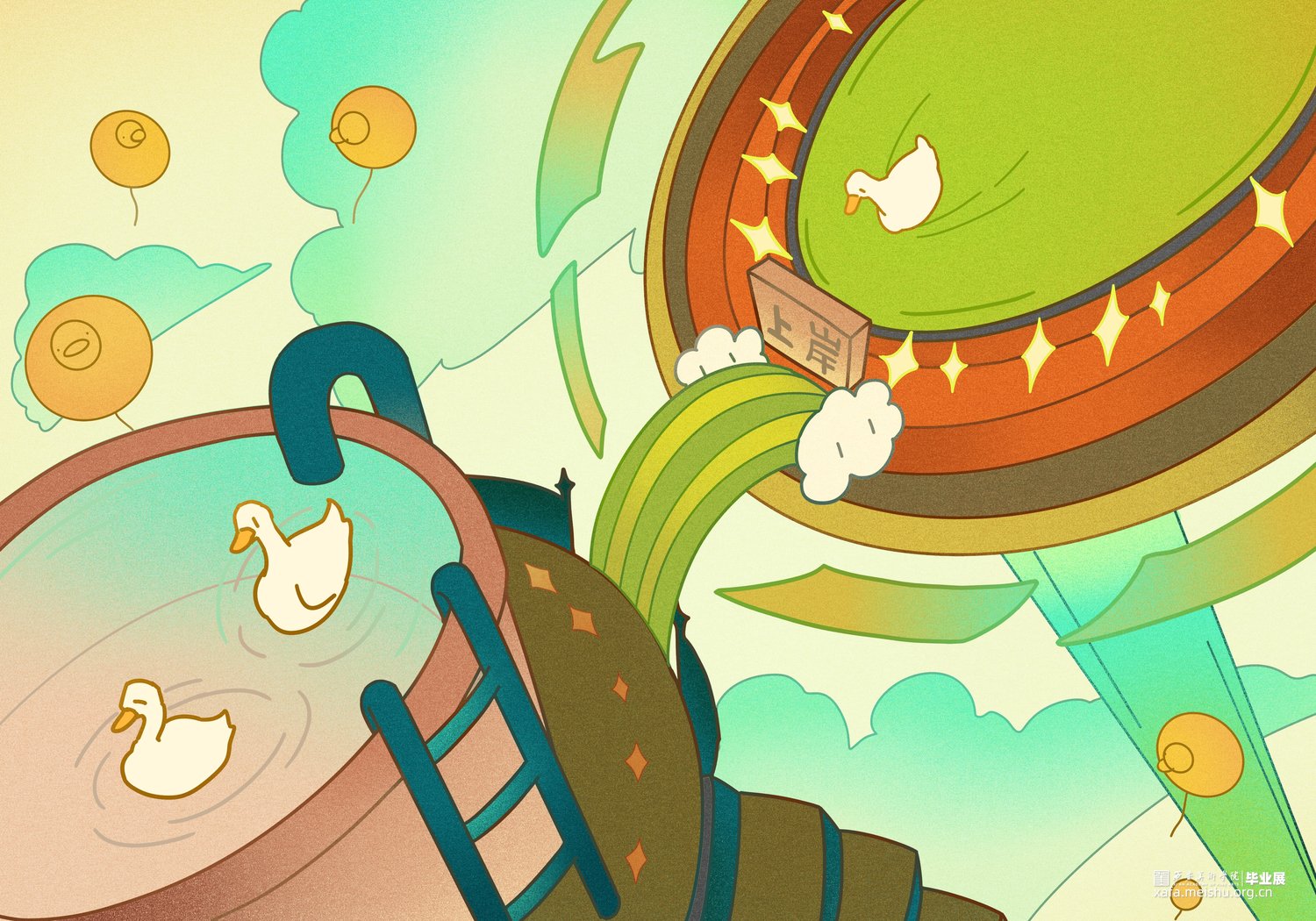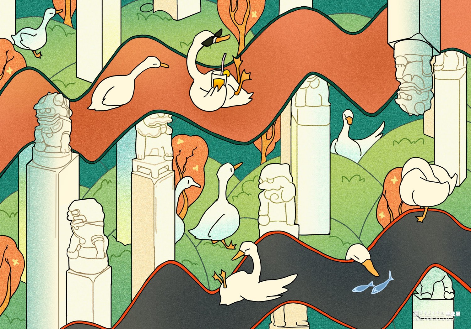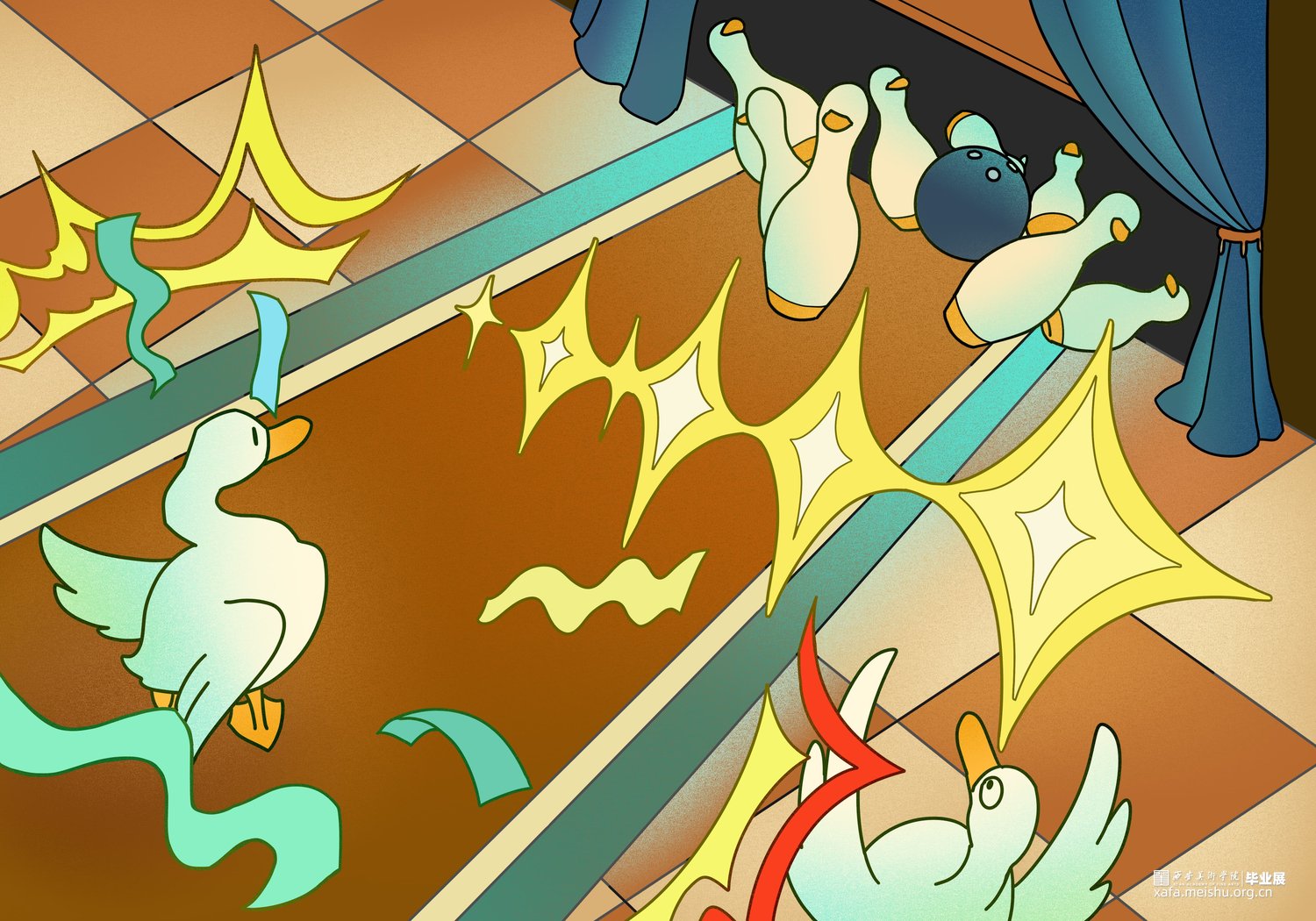 《西美乐呵鹅》是基于西安美术学院地图而设计的一款虚拟解压体验场所。
