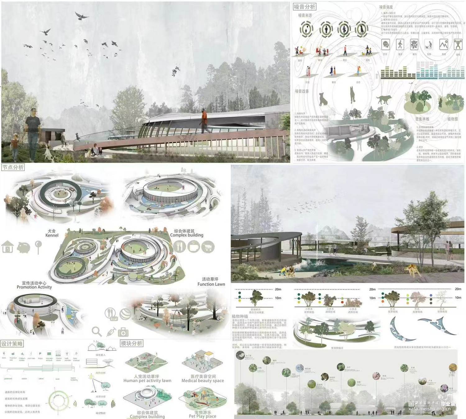 此次设计是基于流浪动物泛滥的前提下进行的流浪动物庇护所改造设计。人类心理学研究表明,人们生活的环境对其心理健康有重要影响,舒适、安全的环境可以促进人们的幸福感和情感交流。而宠物心理学研究则指出,宠物的生活环境对其行为和心理状态有着显著影响,合适的环境可以提升宠物的生活质量和幸福感。因此,结合人类与宠物的心理需求,通过景观设计来创造一个适宜的共生环境,促进人宠之间的亲密关系,提升宠物庇护所的整体福祉水平。通过对空间美学、材料等方面的研究,建造一个适宜流浪动物居住的环境,与周边环境和谐相融,达到收容、救治、领