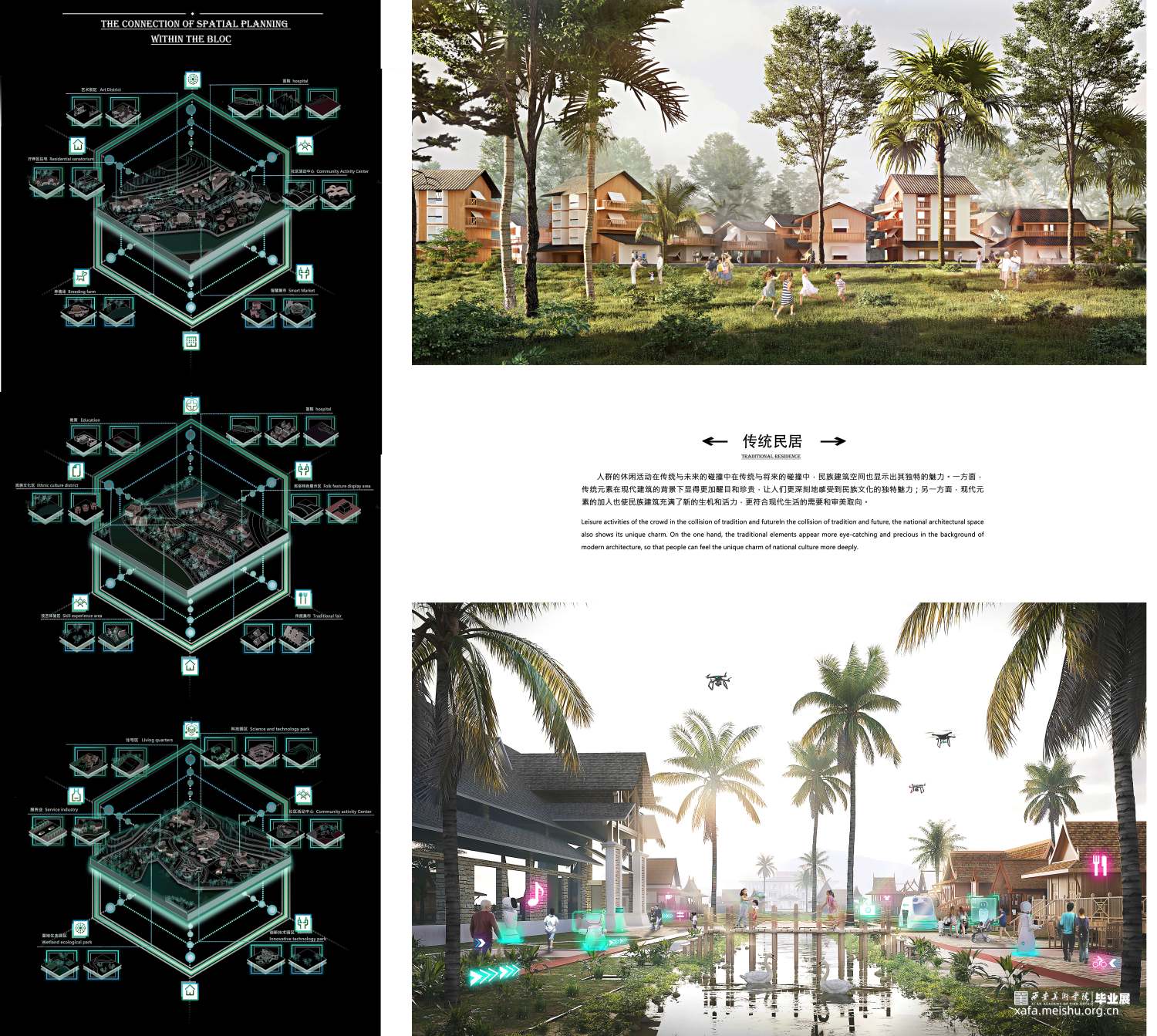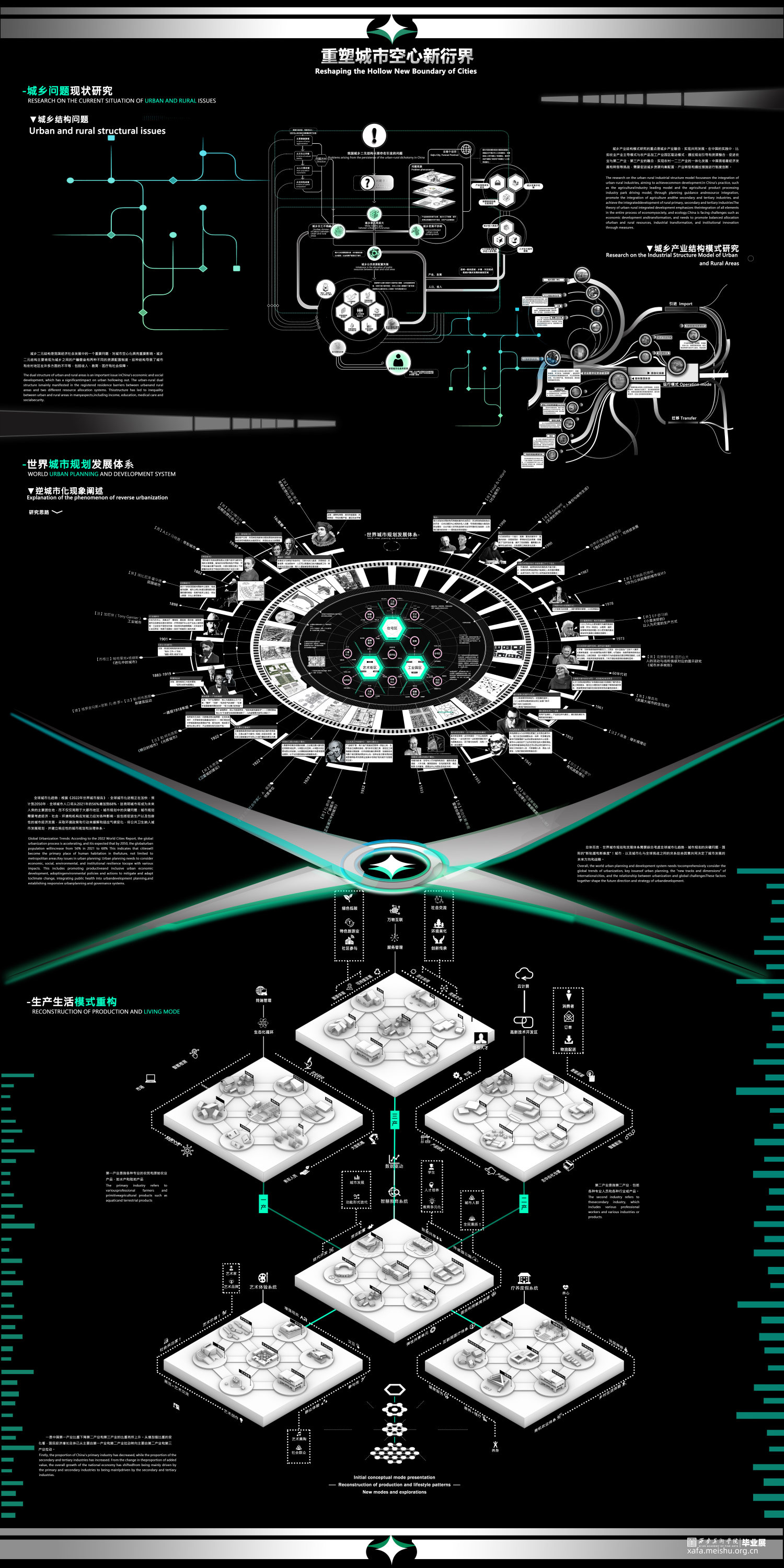 本设计更加注重均衡发展,优化城市空间布局,实现中心区域与郊区的功能互补。该模式去中心化,确保每个区域自给自足,满足人居住的一切需求,同时保持各区域的独有特色。