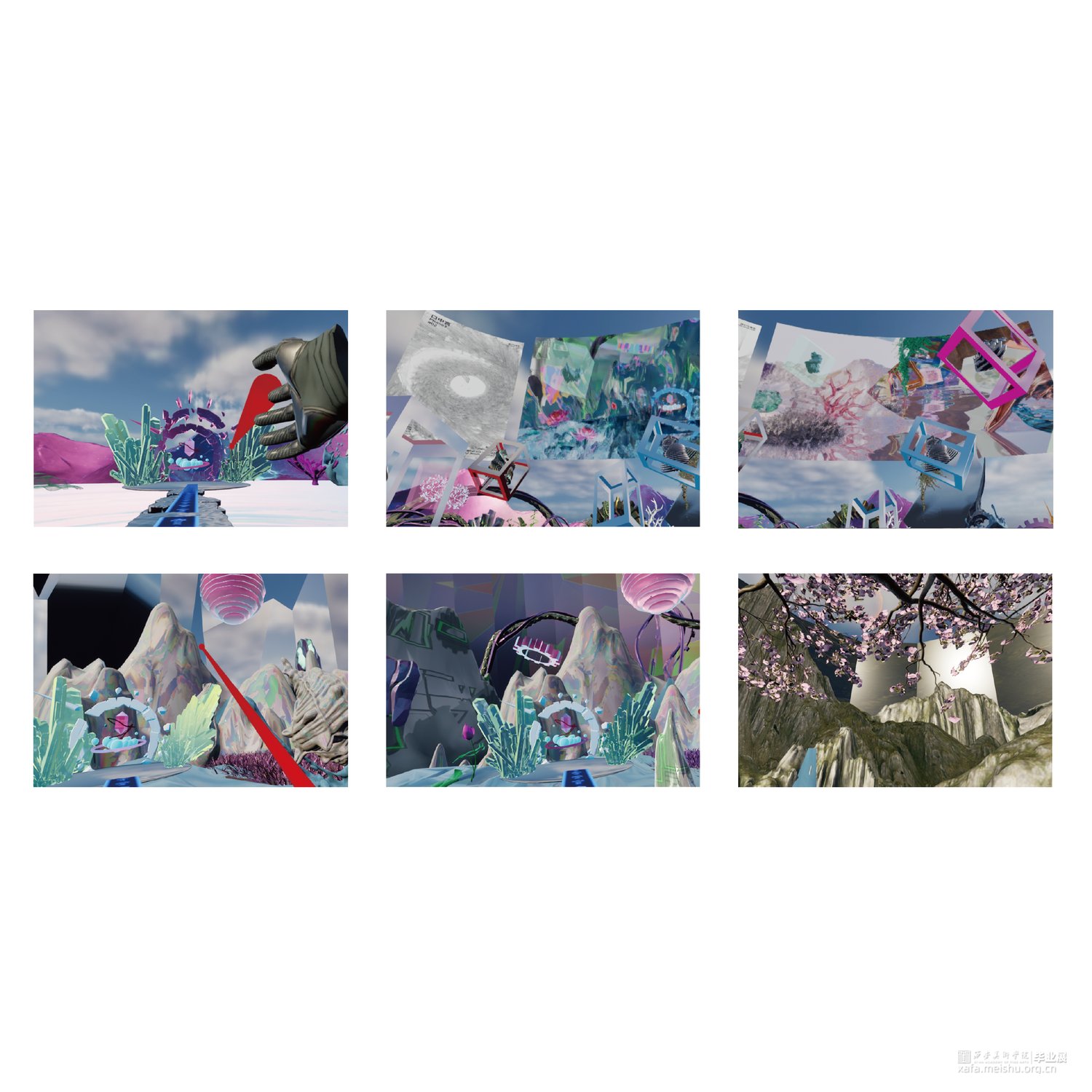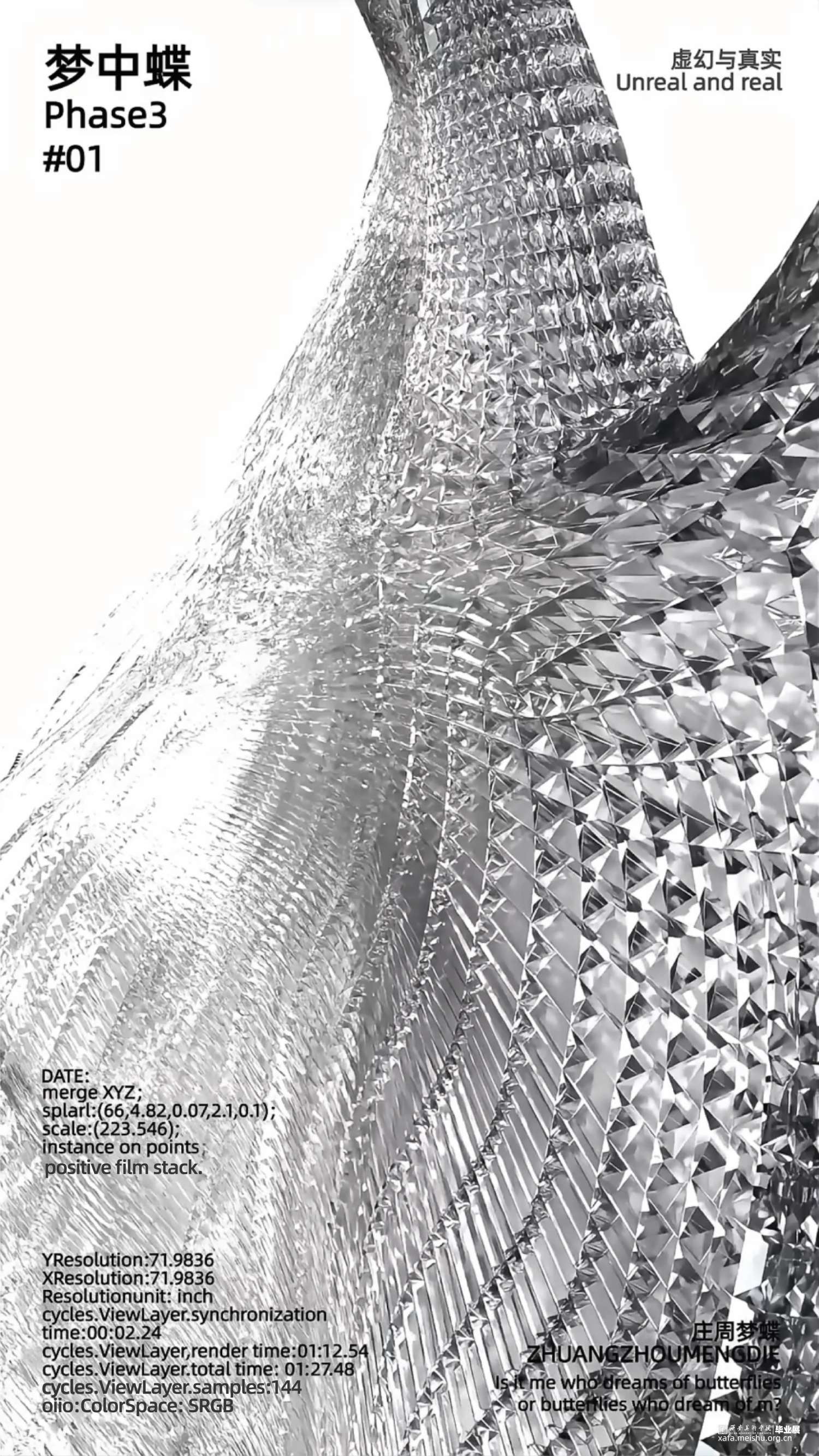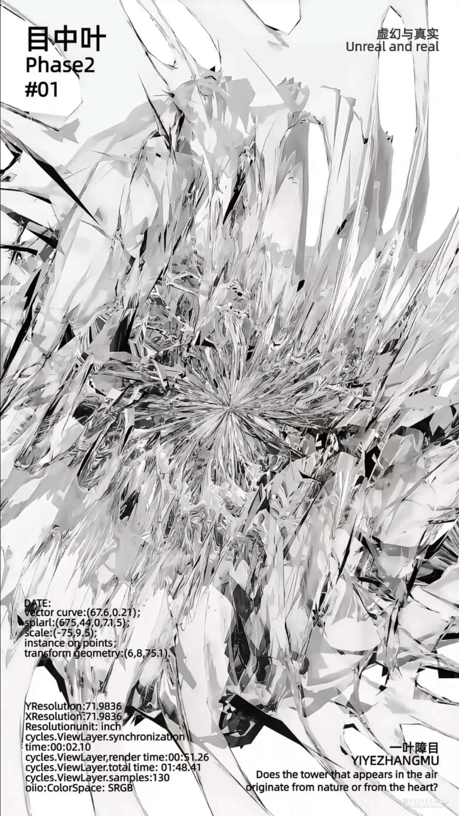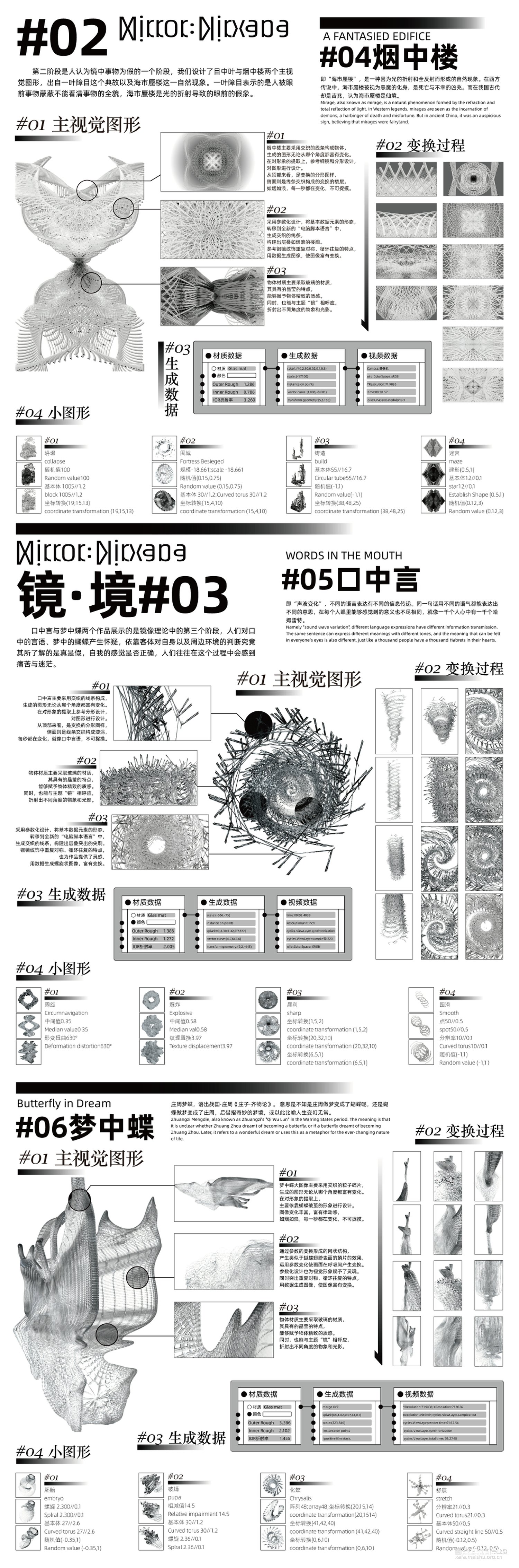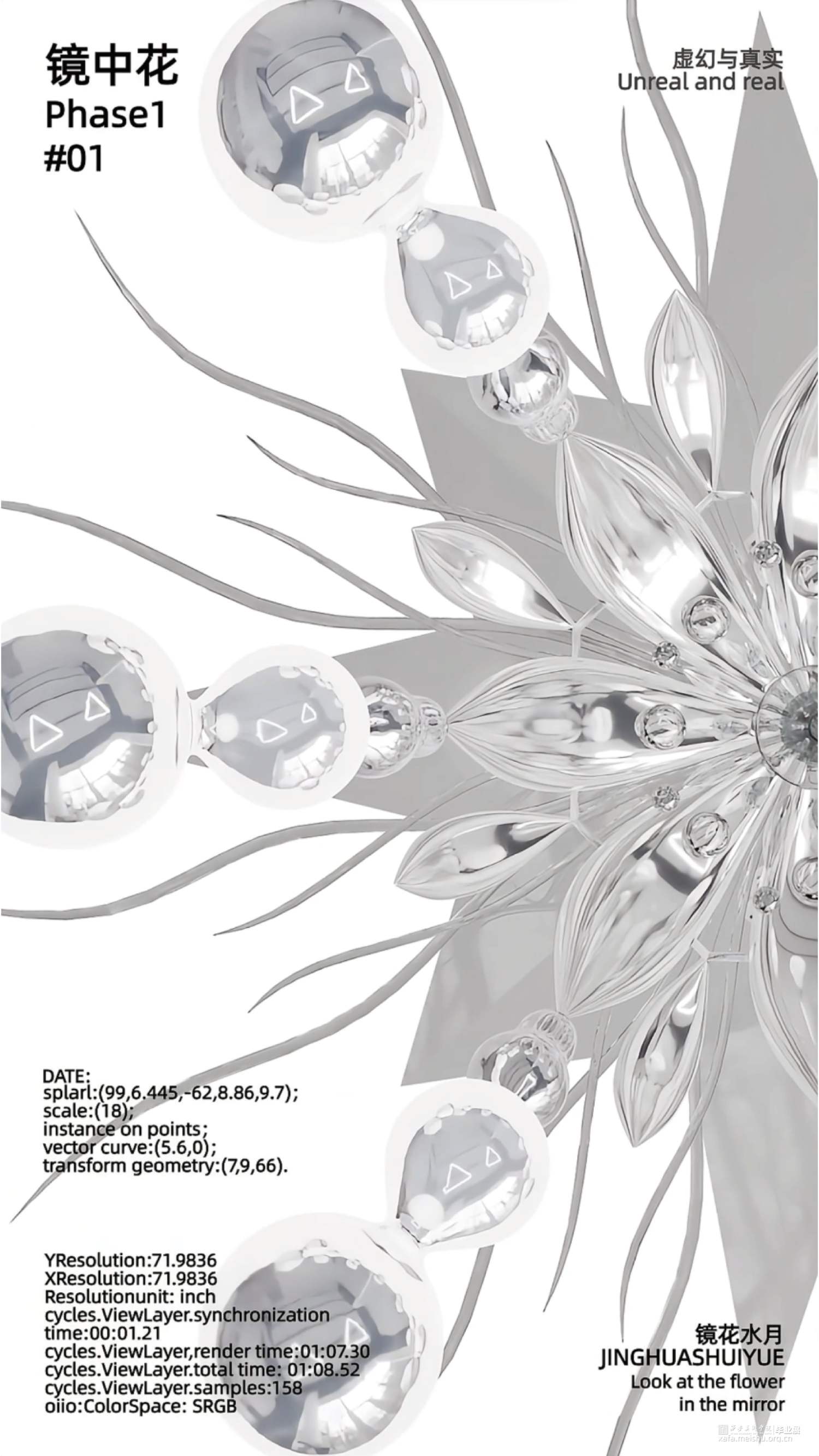 在本作品中我们用镜子做隐喻,可以把镜子理解为周身的环境,或者更广泛地是他者的反馈。结合东方美学通过将现实中能够折射物体的“镜”分解重构。从辩证法的“正反合”的逻辑出发,将三个过程转化为镜像似真、镜像似假、镜像为真三个阶段,探究在自我意识形成为“境”的最初,虚幻与真实二者之间的关系。