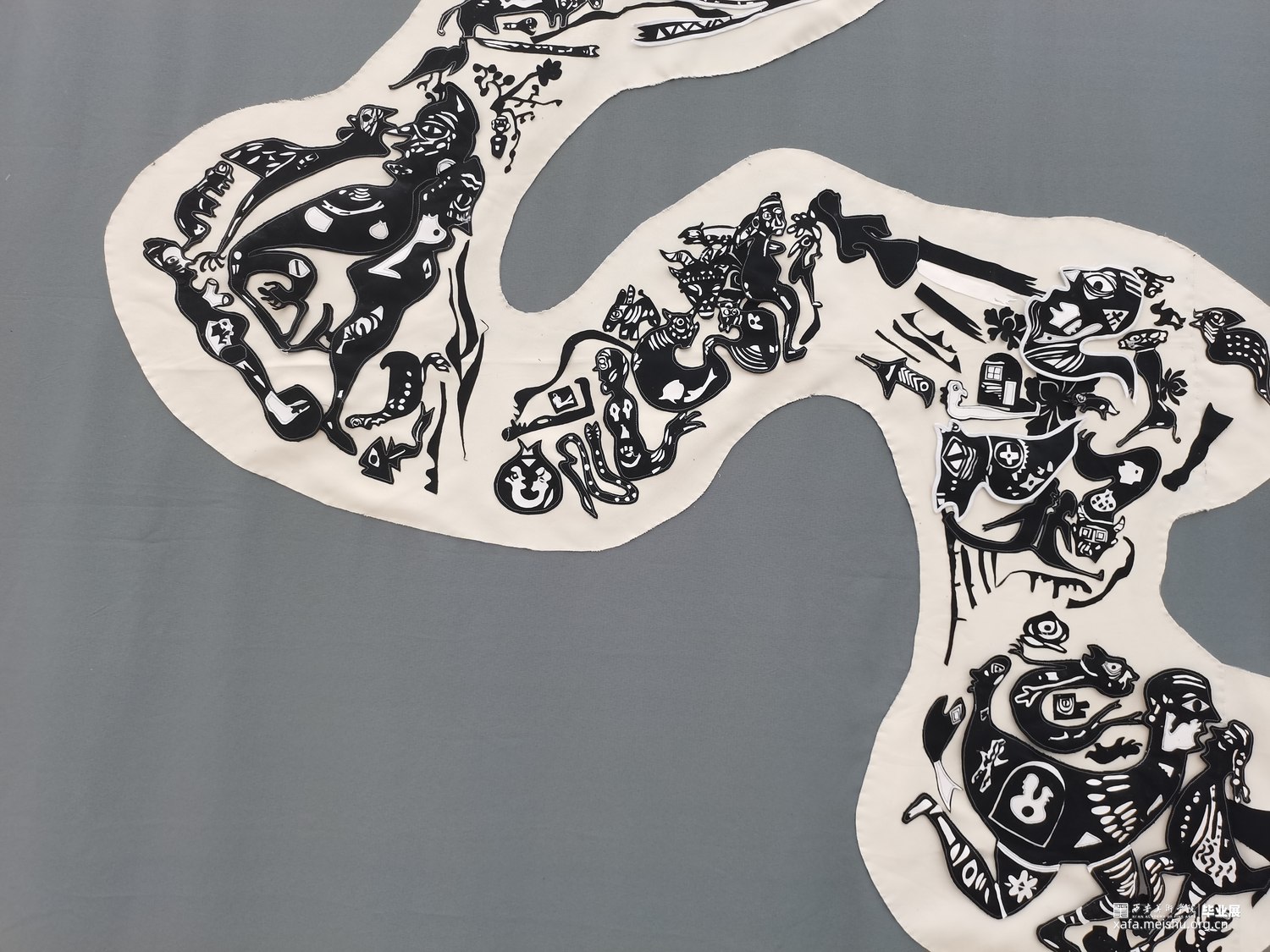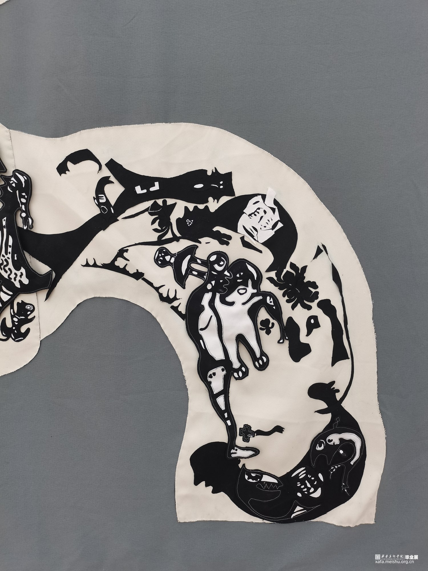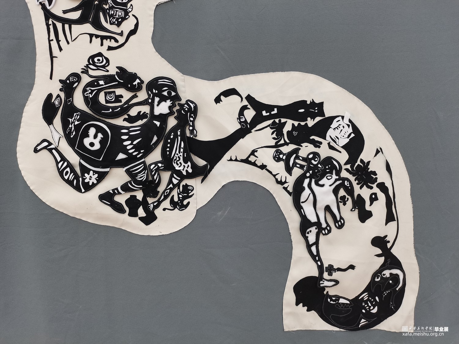 该作品以陕北民歌为切入点,用布堆画的形式表现 陕北民歌中的情情爱爱 , 陕北的黄土地滋养了无数祖祖辈辈生活在这的陕北人民,他们的爱情也如黄土一般乘风而来,随风而去。然而暴虐的风沙并不能阻隔他们至真淳朴的爱情,爱早在心里生了根发了芽,成为彼此心尖尖上的你。