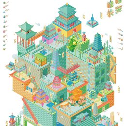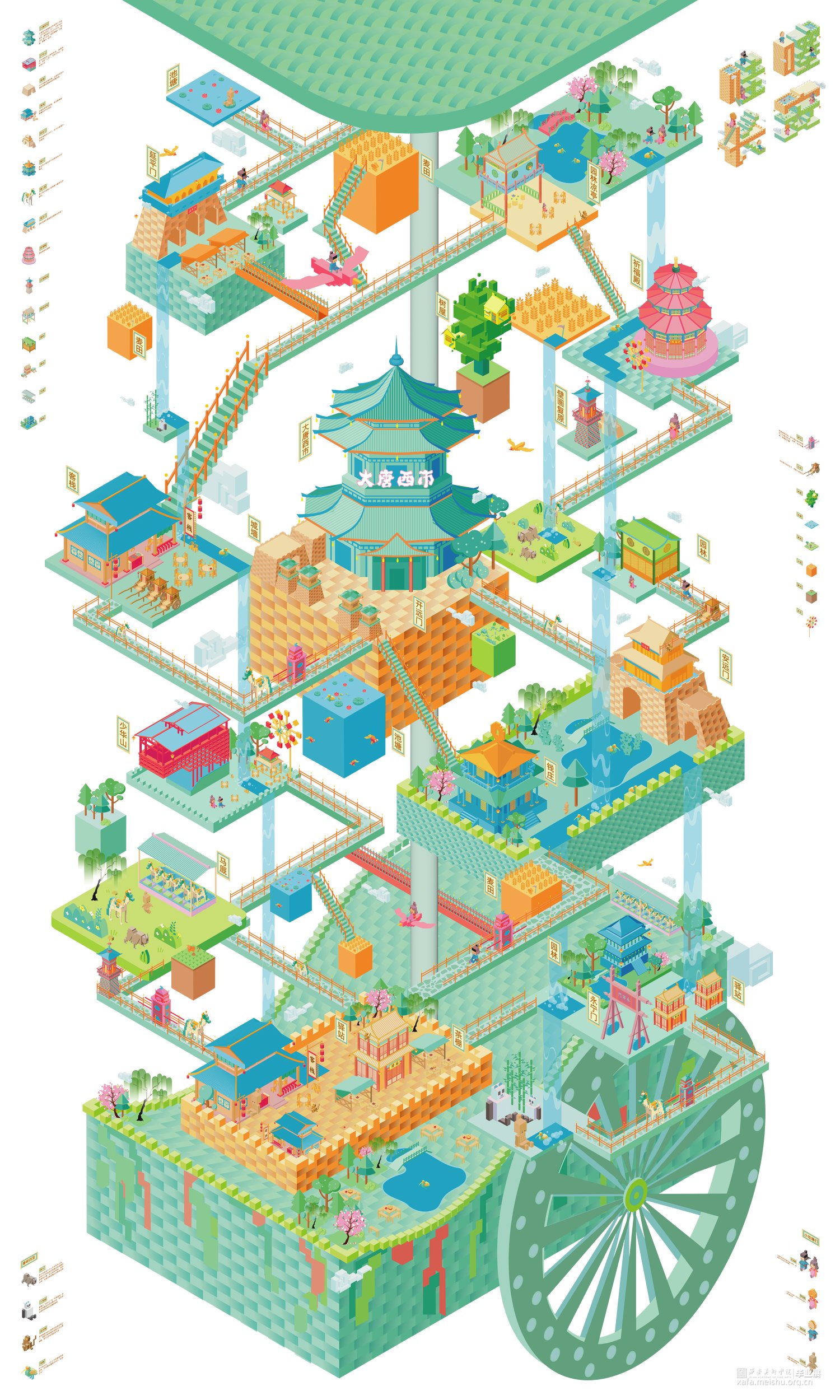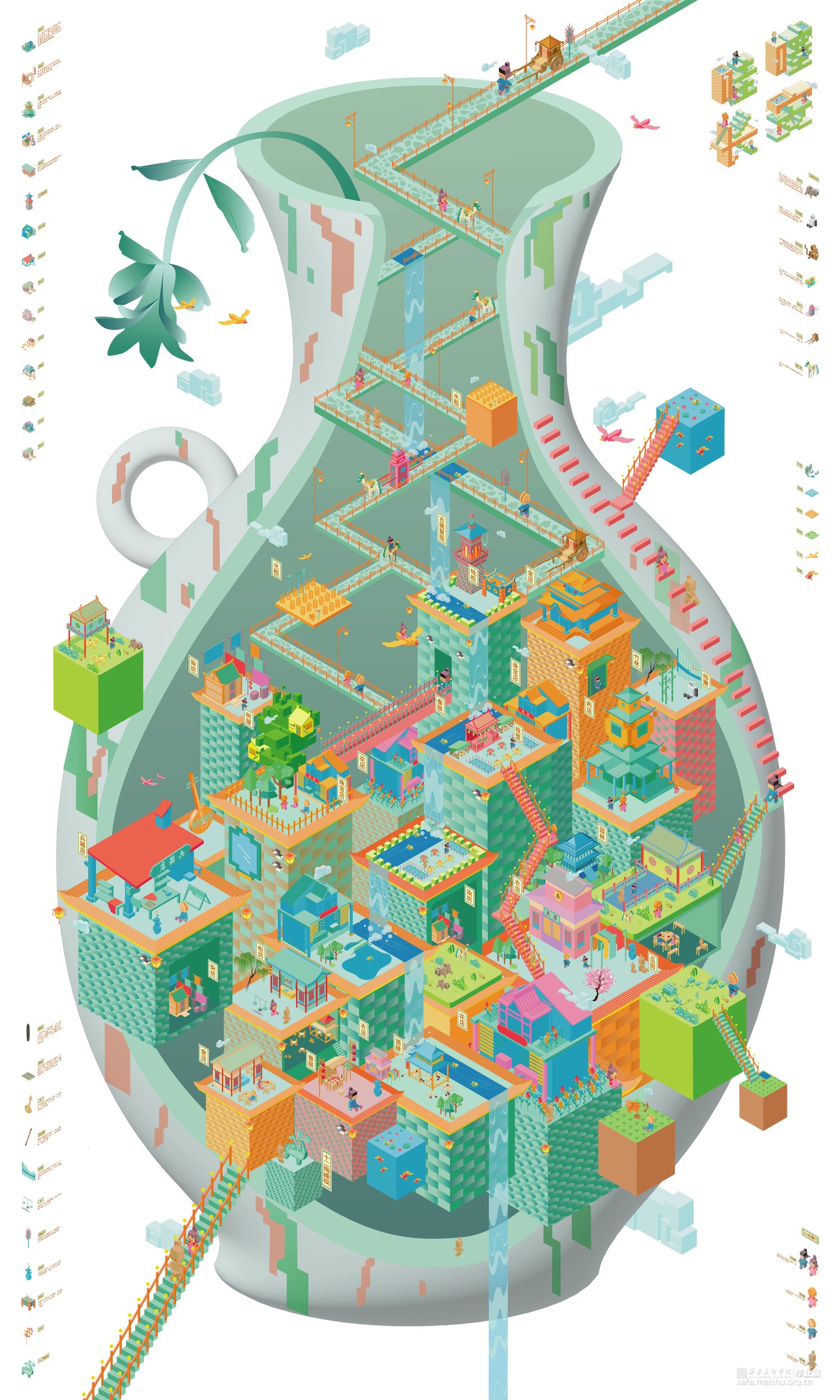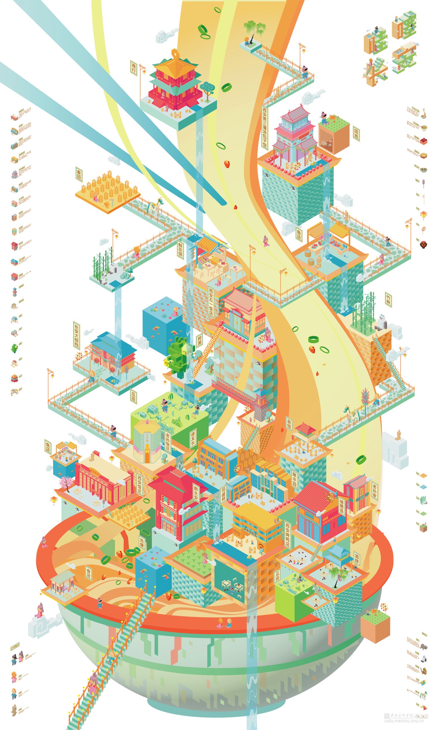 作品《哇塞!长安》以西安城市的过去与现在为题材,展现了这座千年古都的悠久历史和丰富人文。长安作为盛唐时期的首都,曾见证了中华文明的巅峰时期,积淀了深厚的历史文化底蕴。而如今的西安,则延续着这座古都的优势,不断创新发展,成为中国中部地区的重要城市中心。作品采用了2.5D的视觉表现手法,将时间和空间的流动巧妙融合,营造出独特的沉浸式体验。这种介于二维与三维之间的视觉形式,能够更生动地传达观者对这座城市的独特理解和想象。总的来说,《哇塞!长安》通过展现西安历史文化与现代发展的结合,为观众带来了一次视觉上的时空旅程,让人感受到这座城市厚重而富有活力的魅力。