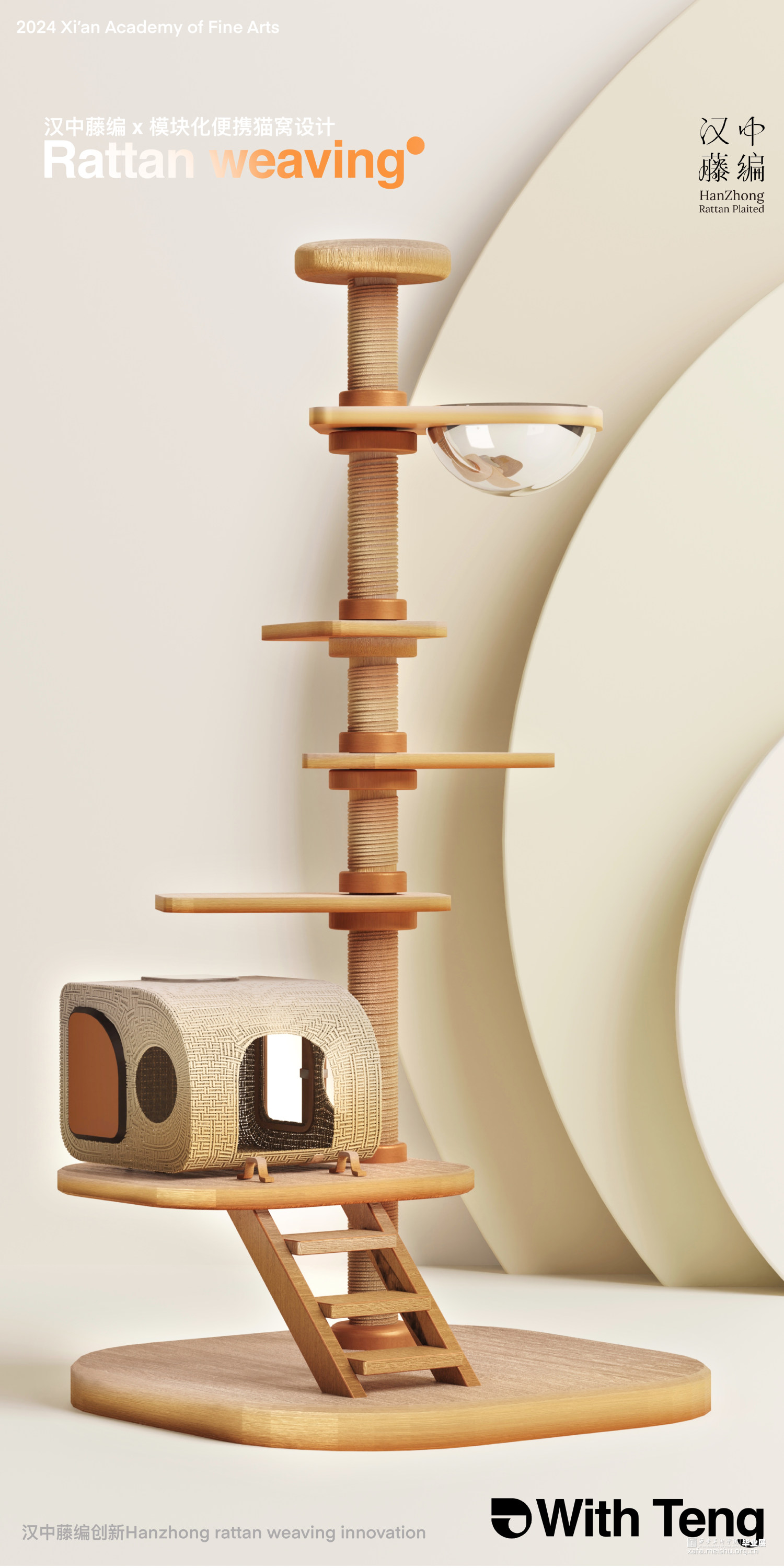 汉中藤编多功能模块化猫包是一款结合传统工艺与现代设计的宠物用品。采用汉中藤编技艺,这款猫包不仅展现了手工艺的精细与自然之美,还提供了多种实用功能,满足宠物与宠物主人的需求。