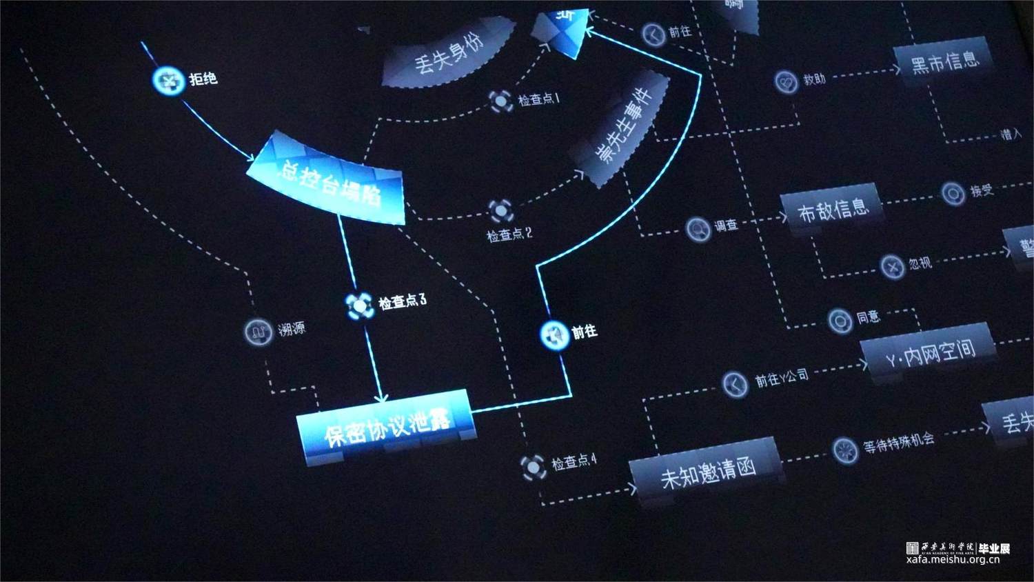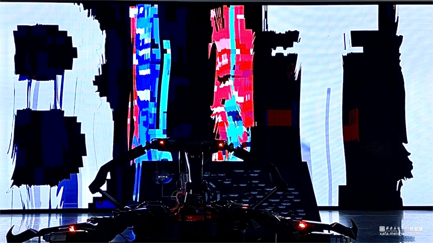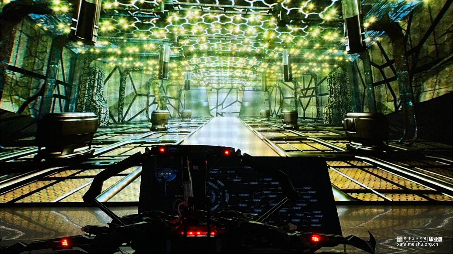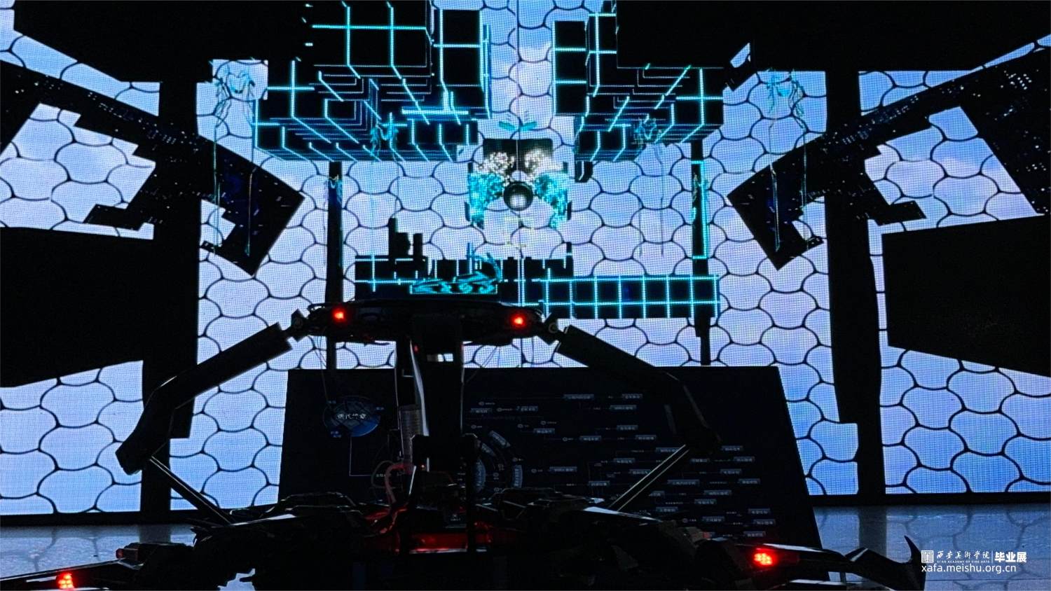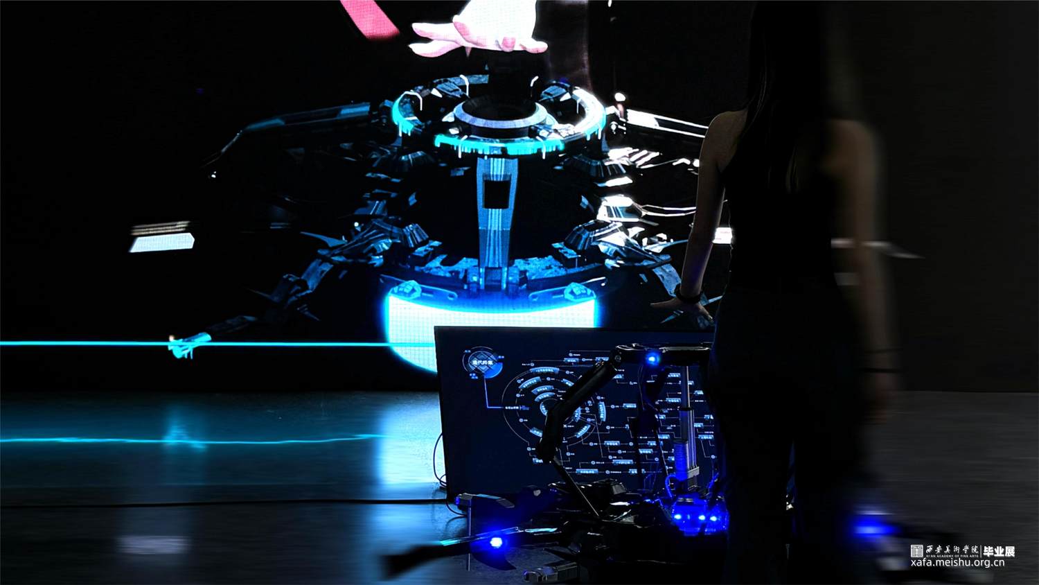 在交互技术层面,本作品采用UE5(虚幻引擎)进行场景的搭建渲染,运用动捕设备制作人物动画,并通过OSC和MQTT协议以及TouchDesigner软件,打通装置灯光与传动、实时关卡流程图、游戏界面等多媒介的数据通讯,在交互设备上选用Leap Motion,诣在脱离传统游戏游玩模式,打造全新的沉浸式交互体验空间,总体来说,本作品的技术集成性非常高,并且试图冲破重组传统的游戏方式。