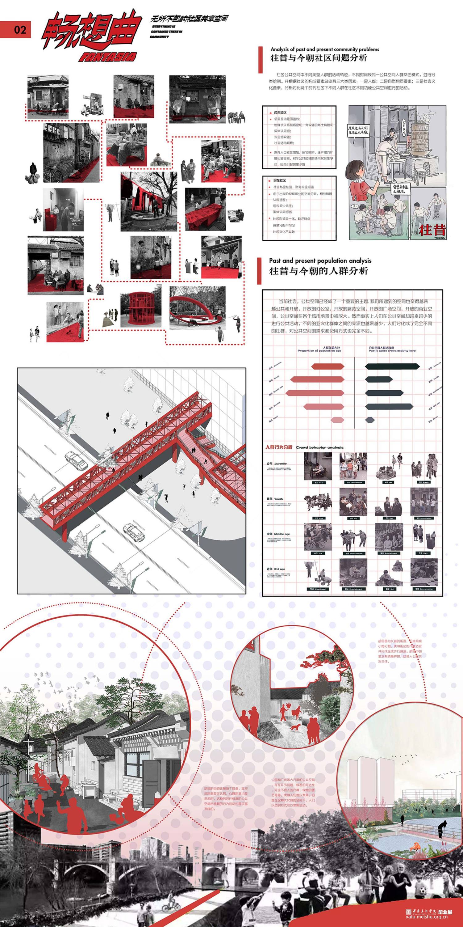 城市快速发展,城市公共空间的设计在规划方面出现了种种问题,我们已研究过去只当代的城市社区形态,分析利与弊。现在将已有公共空间设计与建构拆成小的模块,并重新组合,利用空间重组与