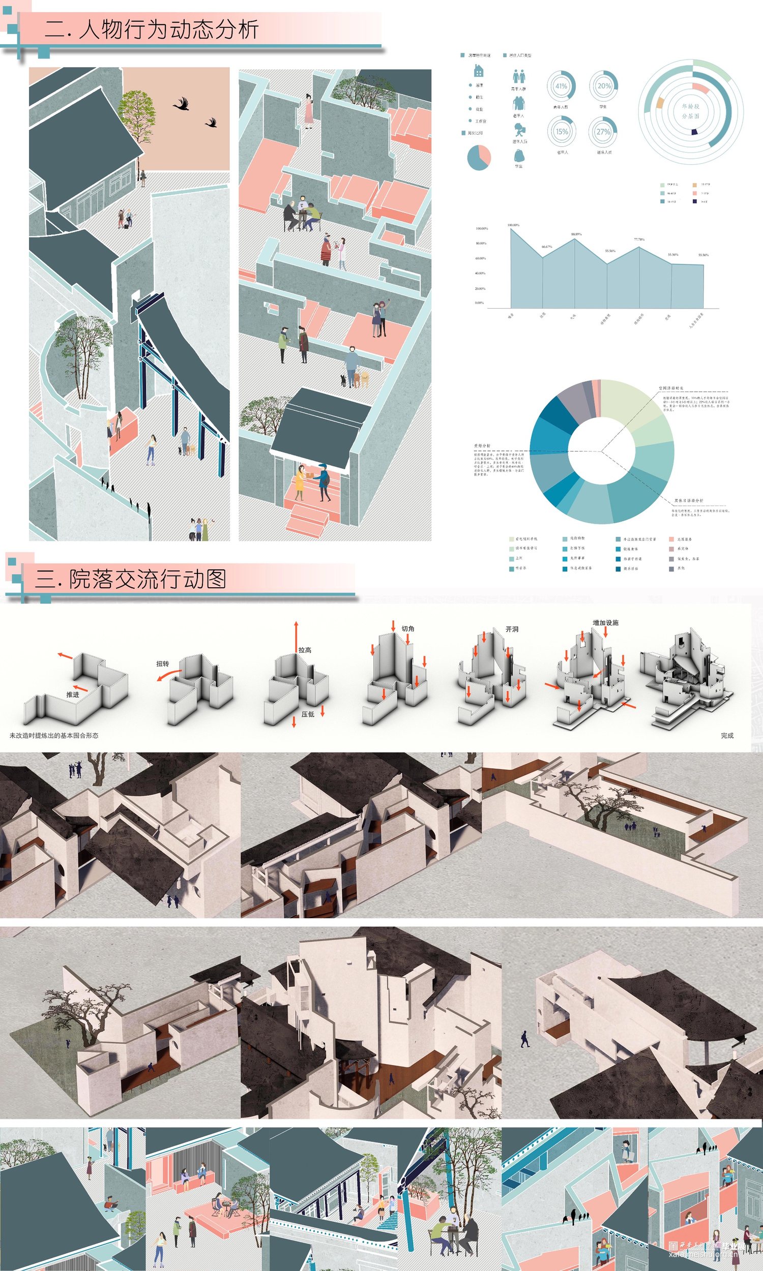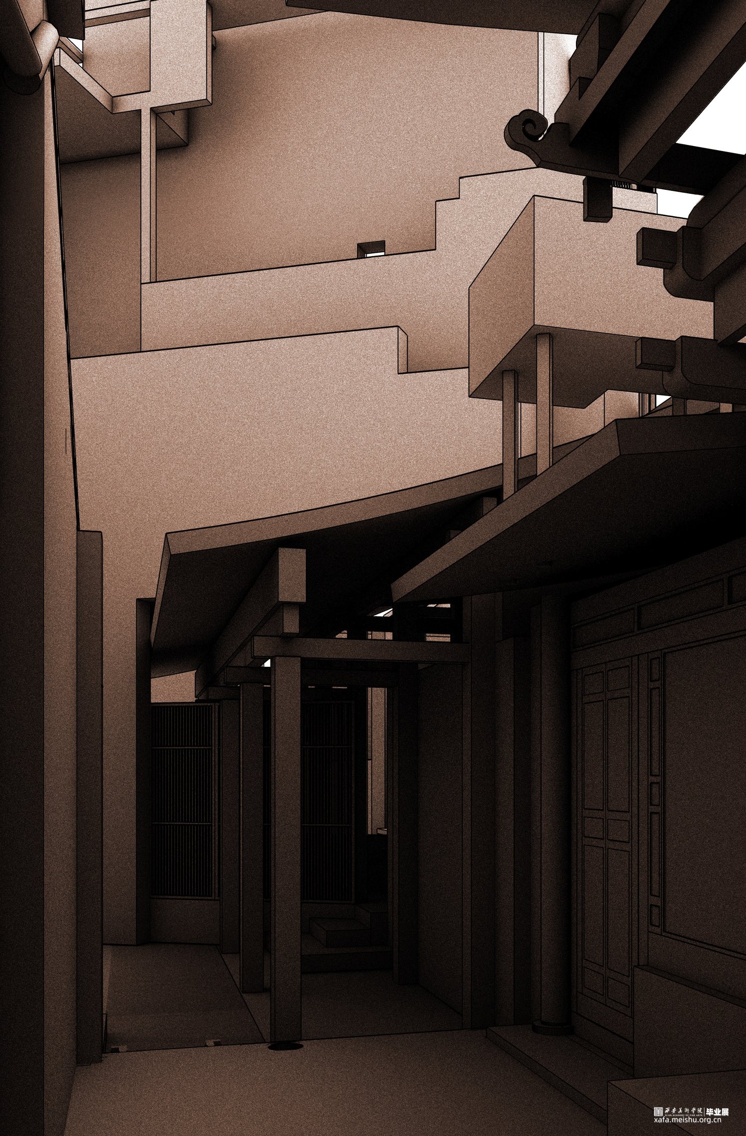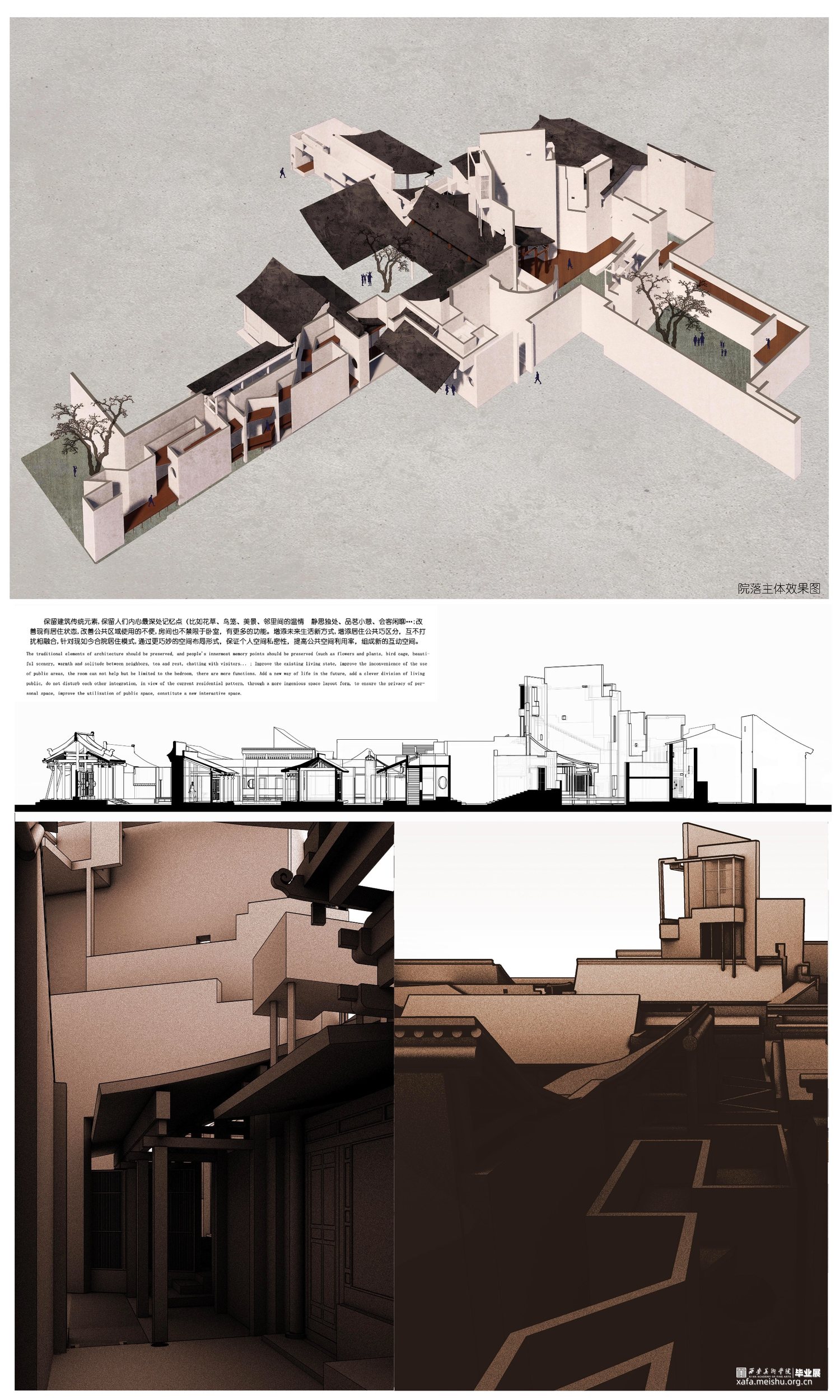 设计说明:以设计研究为出发点对甘肃天水“胡氏民居”聚落的合院进行意向研究设计,以此聚落群为基础提出了社区文教活动场所的设计方法与策略。立足传统人居环境为肌理延展文化脉络的延伸,推动合院空间形态和合院生活方式的探索与发展,以写意式的设计手法表现“大家与小家”。使得合院居住空间原有城市肌理中通过“有破有立”的空间形态捕捉现代人居行为模式,从行为学角度通过对合院空间关系的优化塑造,探讨对未来居住空间的创新
