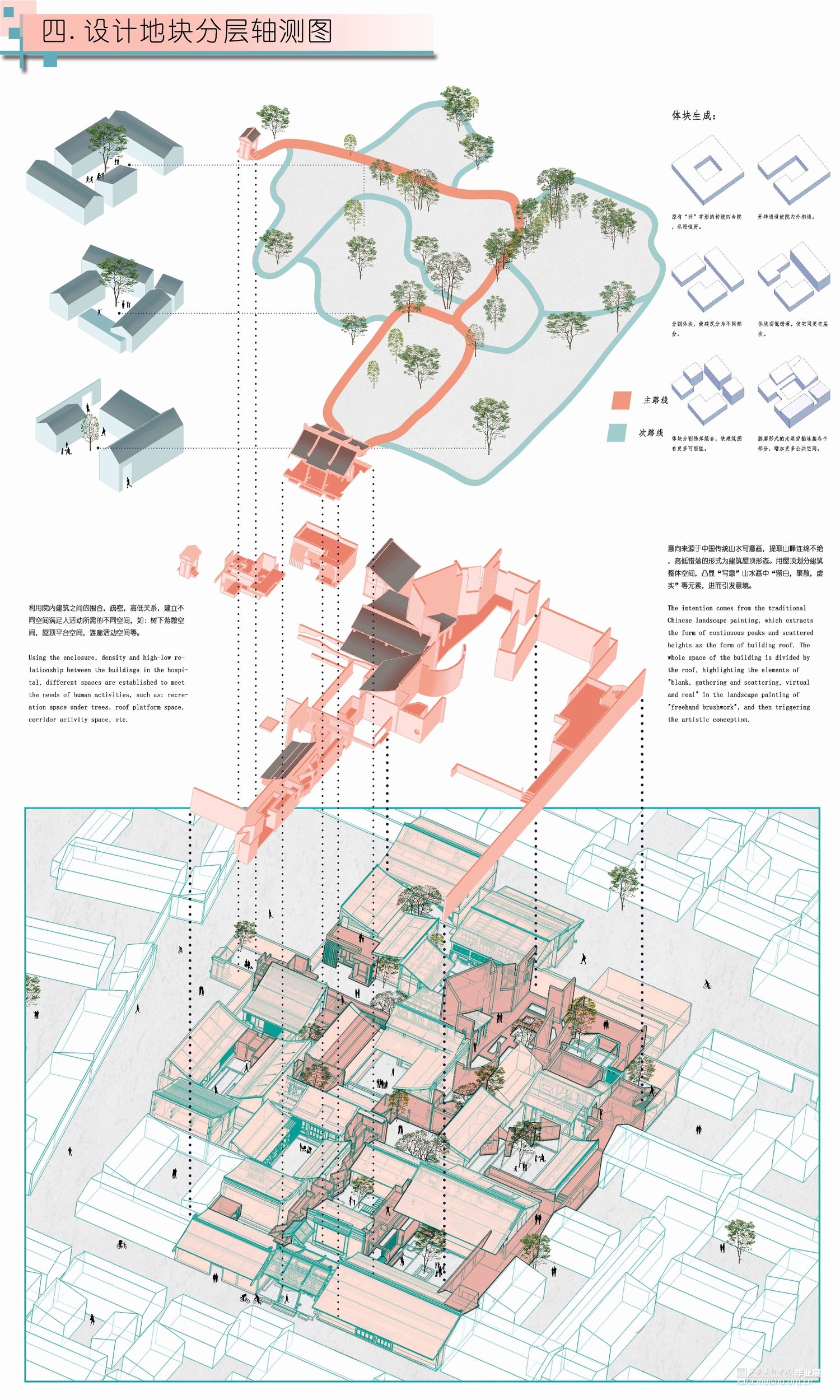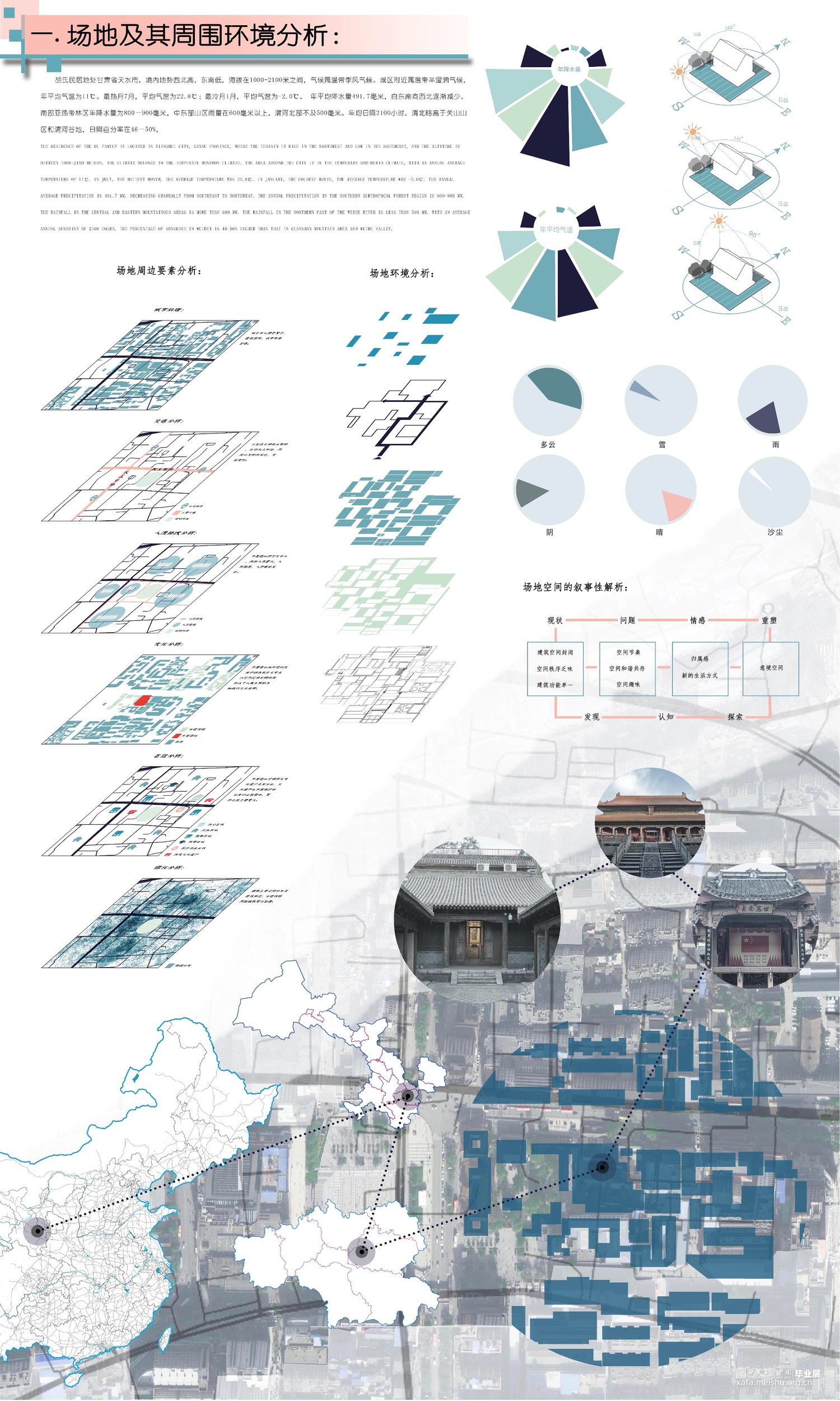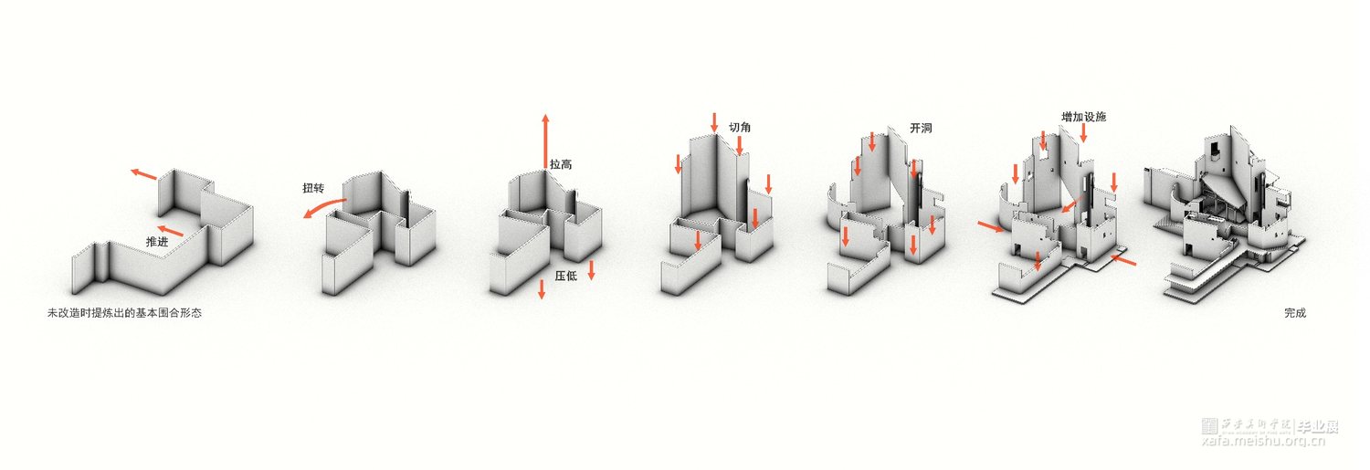 设计说明:以设计研究为出发点对甘肃天水“胡氏民居”聚落的合院进行意向研究设计,以此聚落群为基础提出了社区文教活动场所的设计方法与策略。立足传统人居环境为肌理延展文化脉络的延伸,推动合院空间形态和合院生活方式的探索与发展,以写意式的设计手法表现“大家与小家”。使得合院居住空间原有城市肌理中通过“有破有立”的空间形态捕捉现代人居行为模式,从行为学角度通过对合院空间关系的优化塑造,探讨对未来居住空间的创新