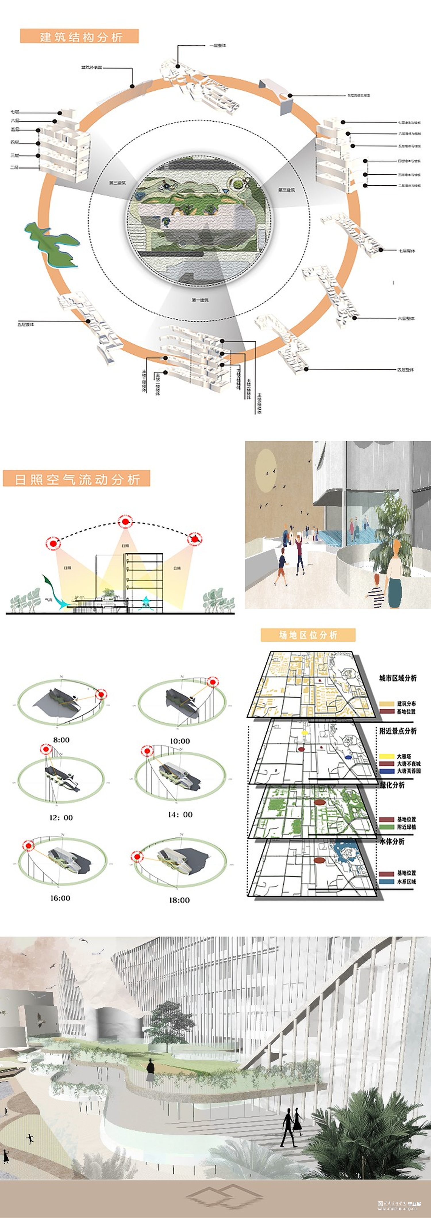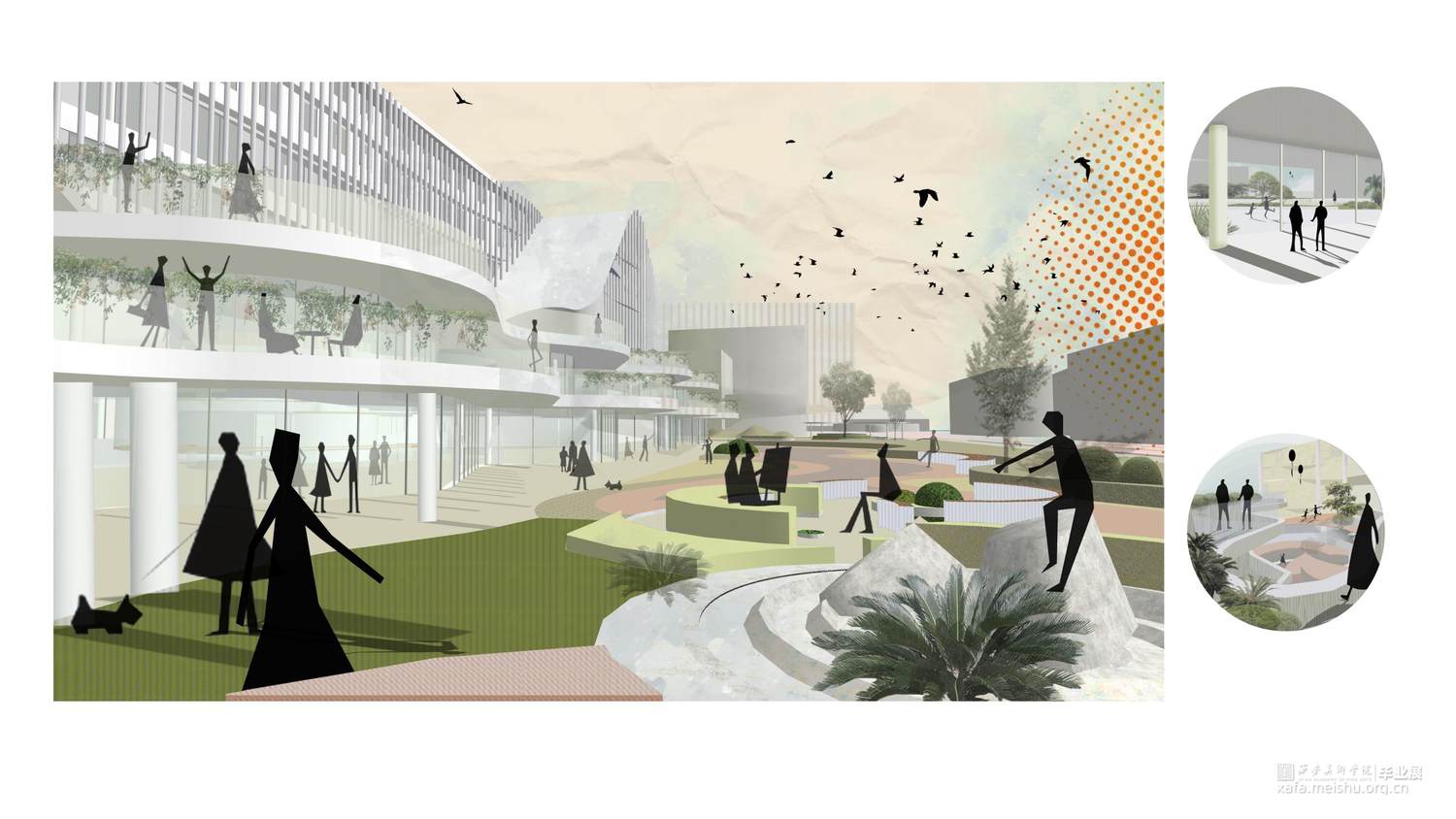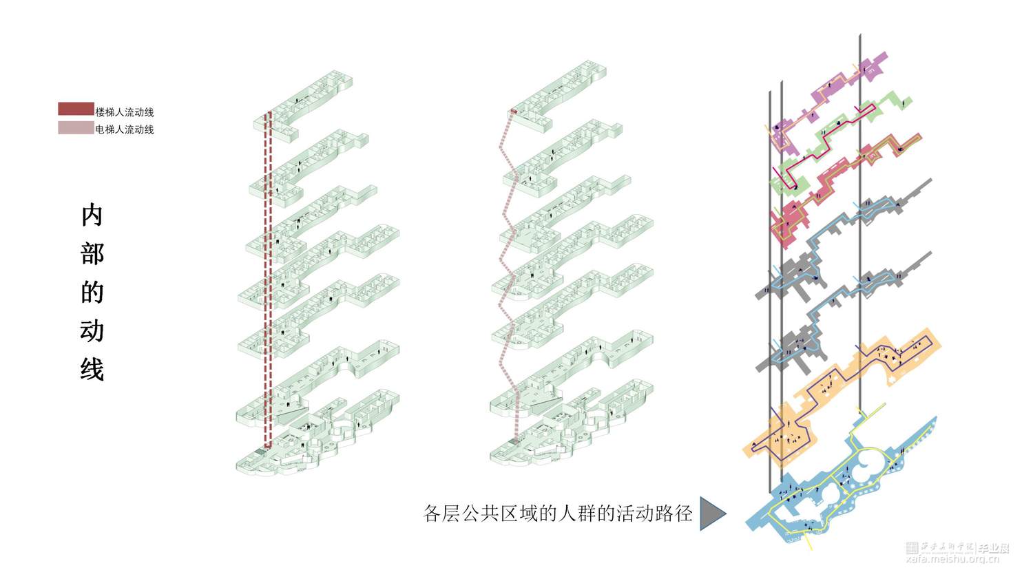 共享体现在展示空间,交流空间以及庭院空间。通过两个不同的庭院空间,增加酒店与外界环境联系;大小不同的展示空间则加强酒店内部人与人之间的联系。