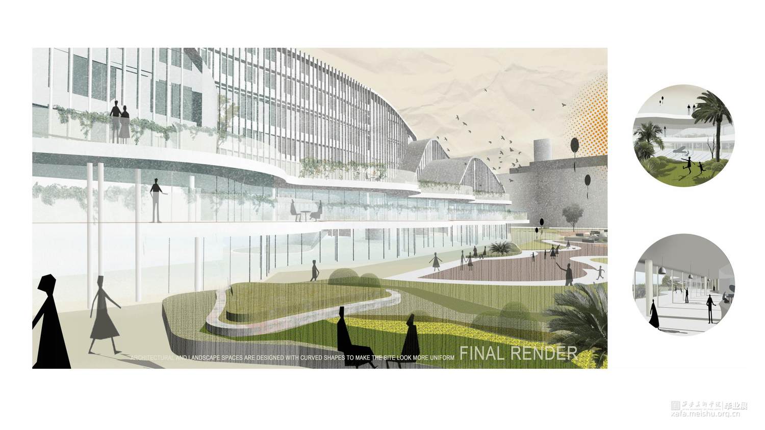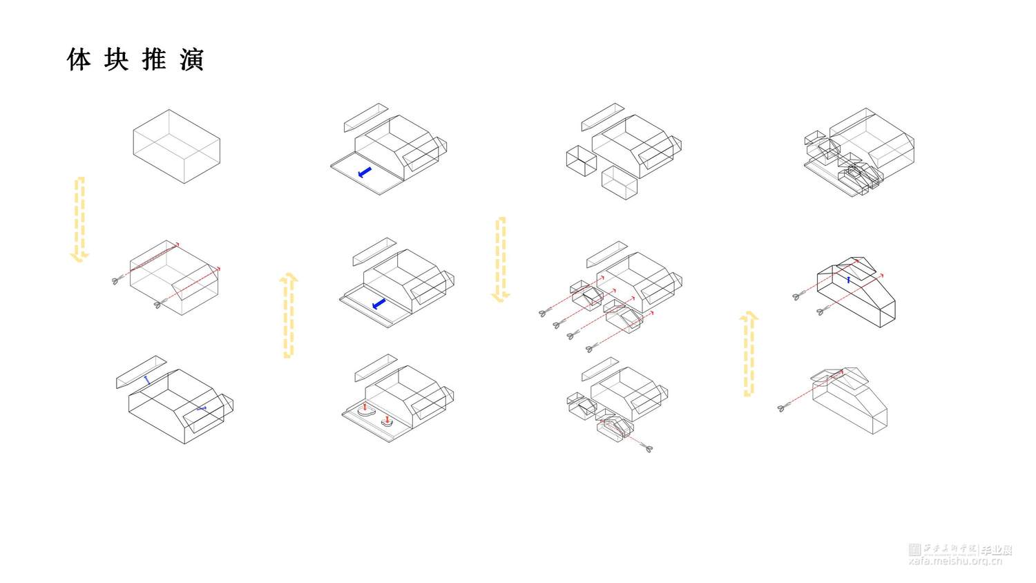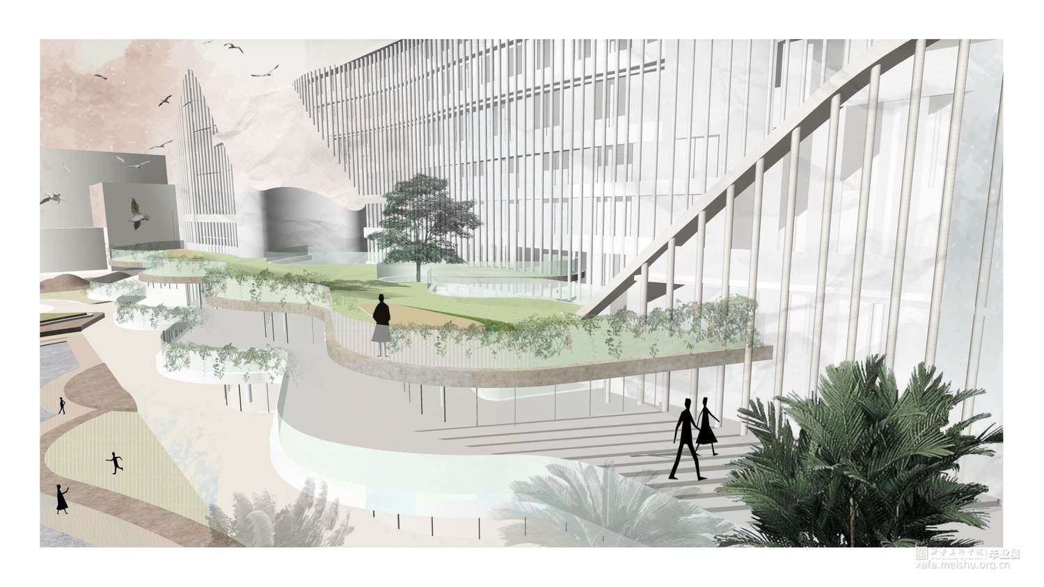 共享体现在展示空间,交流空间以及庭院空间。通过两个不同的庭院空间,增加酒店与外界环境联系;大小不同的展示空间则加强酒店内部人与人之间的联系。