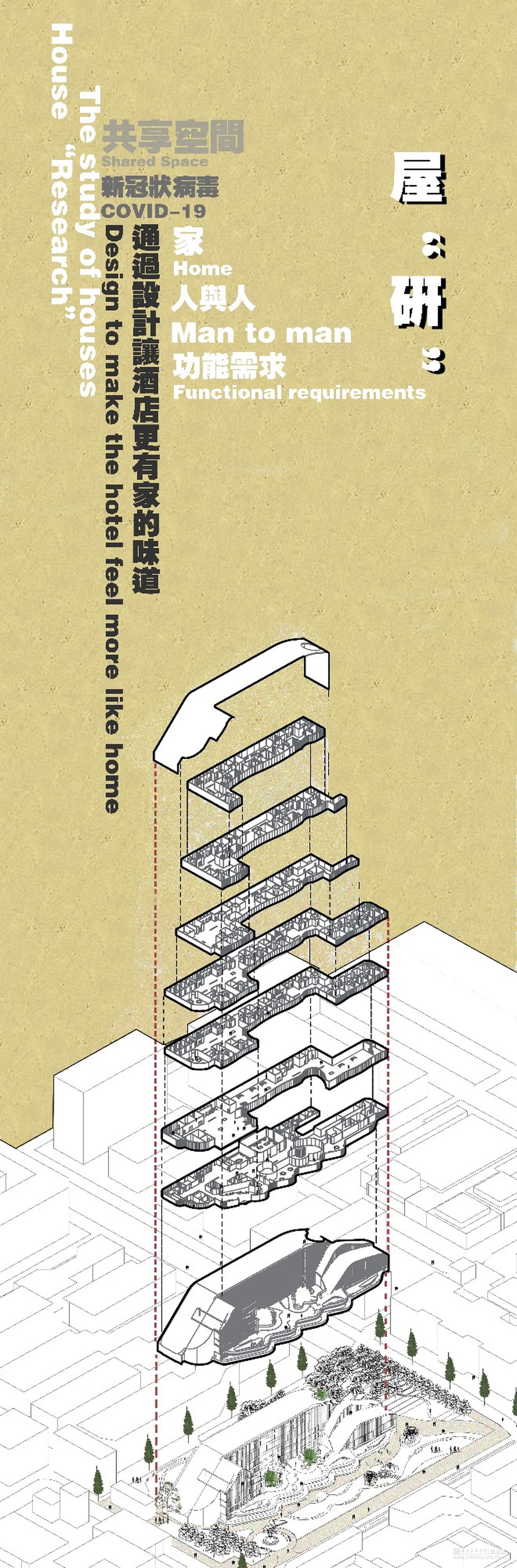 2020年,这个特殊的年份。新冠病毒打破了人们平静的生活,作为环艺人,我们能做些什么?“酒店隔离”在新闻中成为高频词,那么我们从酒店的角度出发,分析人的行为,根据人的需要进行酒店设计。