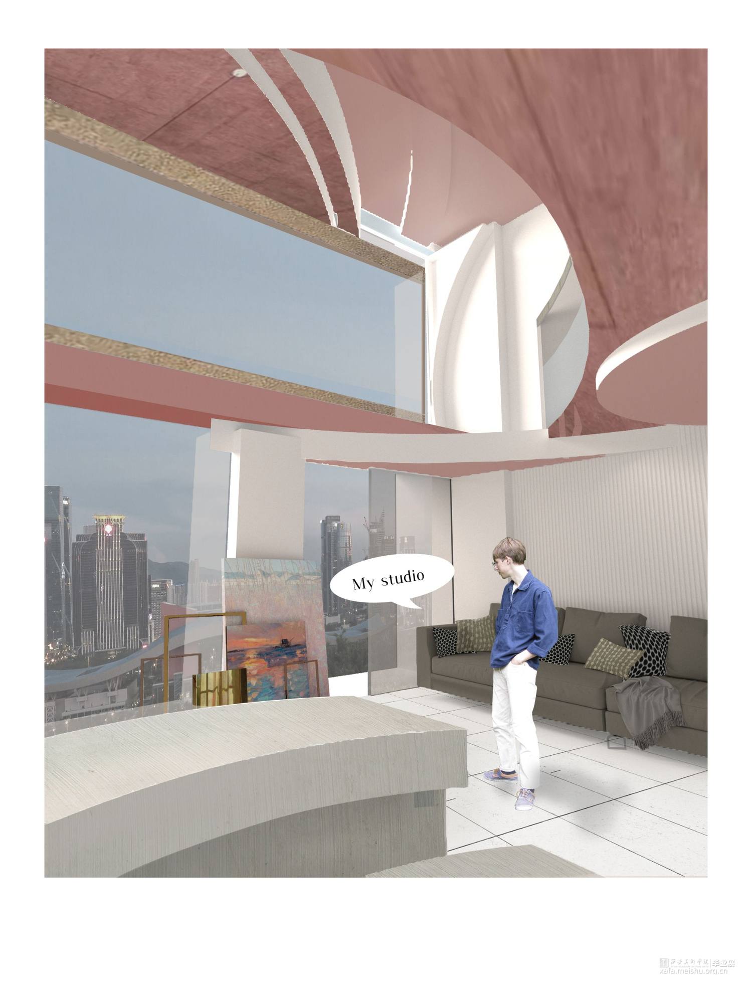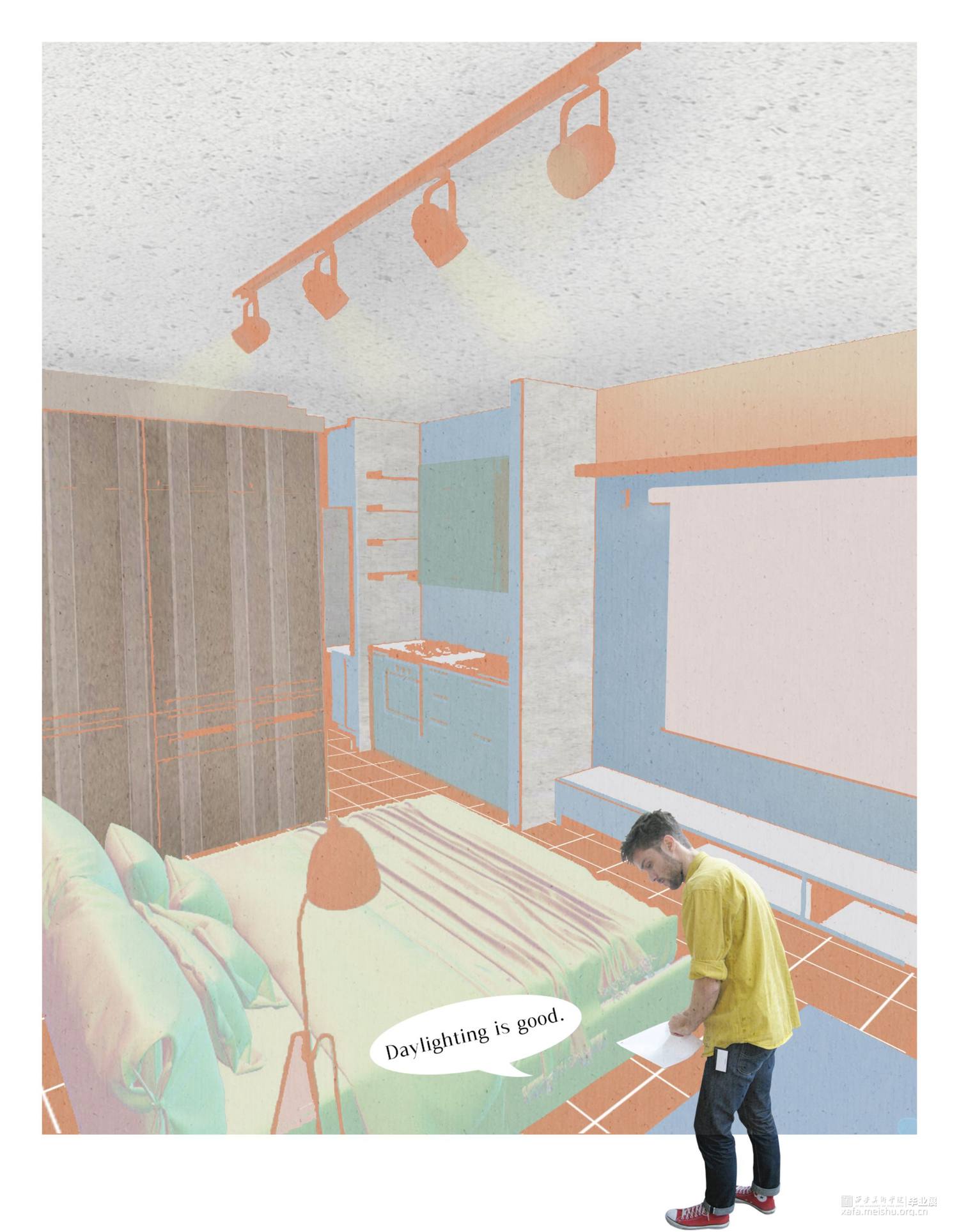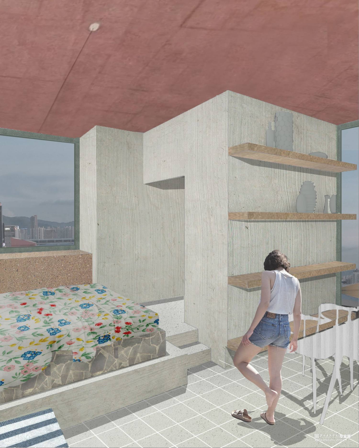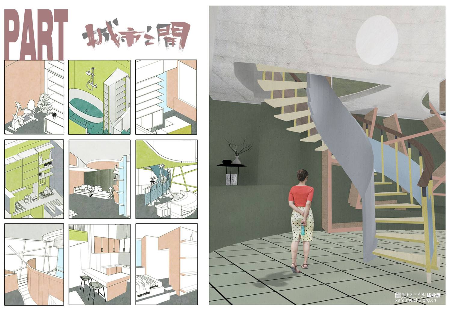 通过对“网”这一概念的解构与重组,并从整体理念中提炼出“间隙、空间、彼此之间”这三个概念,分别在建筑设计、居室设计以及共享空间设计这三个层面进行体现,让这些“空巢青年”在城市的间隙中寻找