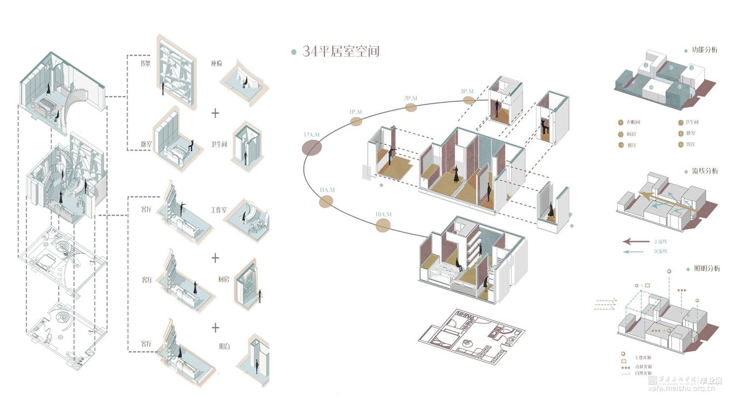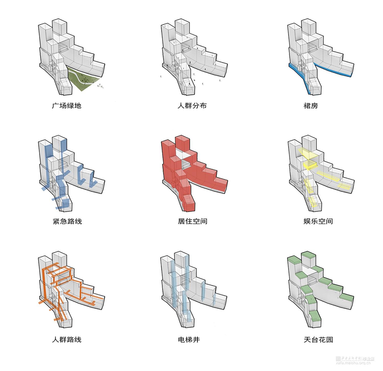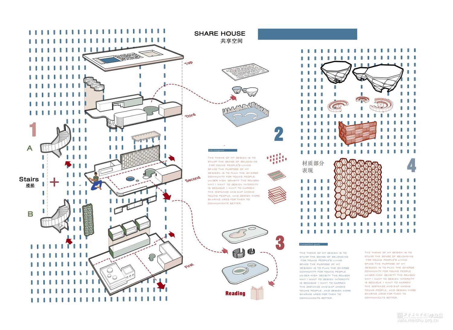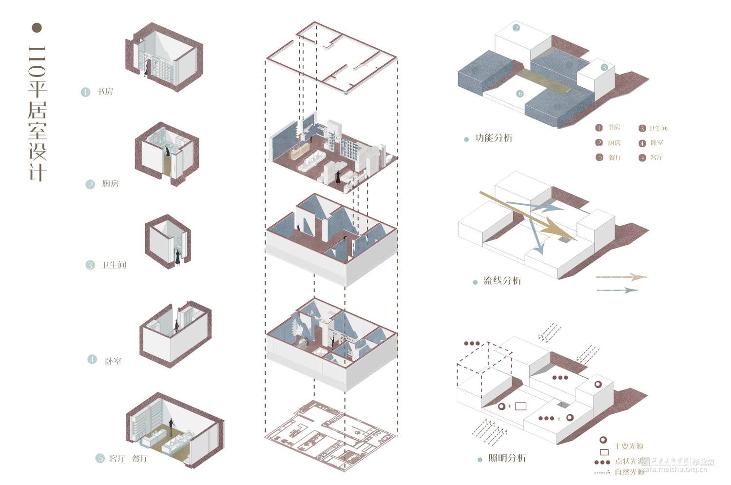 通过对“网”这一概念的解构与重组,并从整体理念中提炼出“间隙、空间、彼此之间”这三个概念,分别在建筑设计、居室设计以及共享空间设计这三个层面进行体现,让这些“空巢青年”在城市的间隙中寻找
