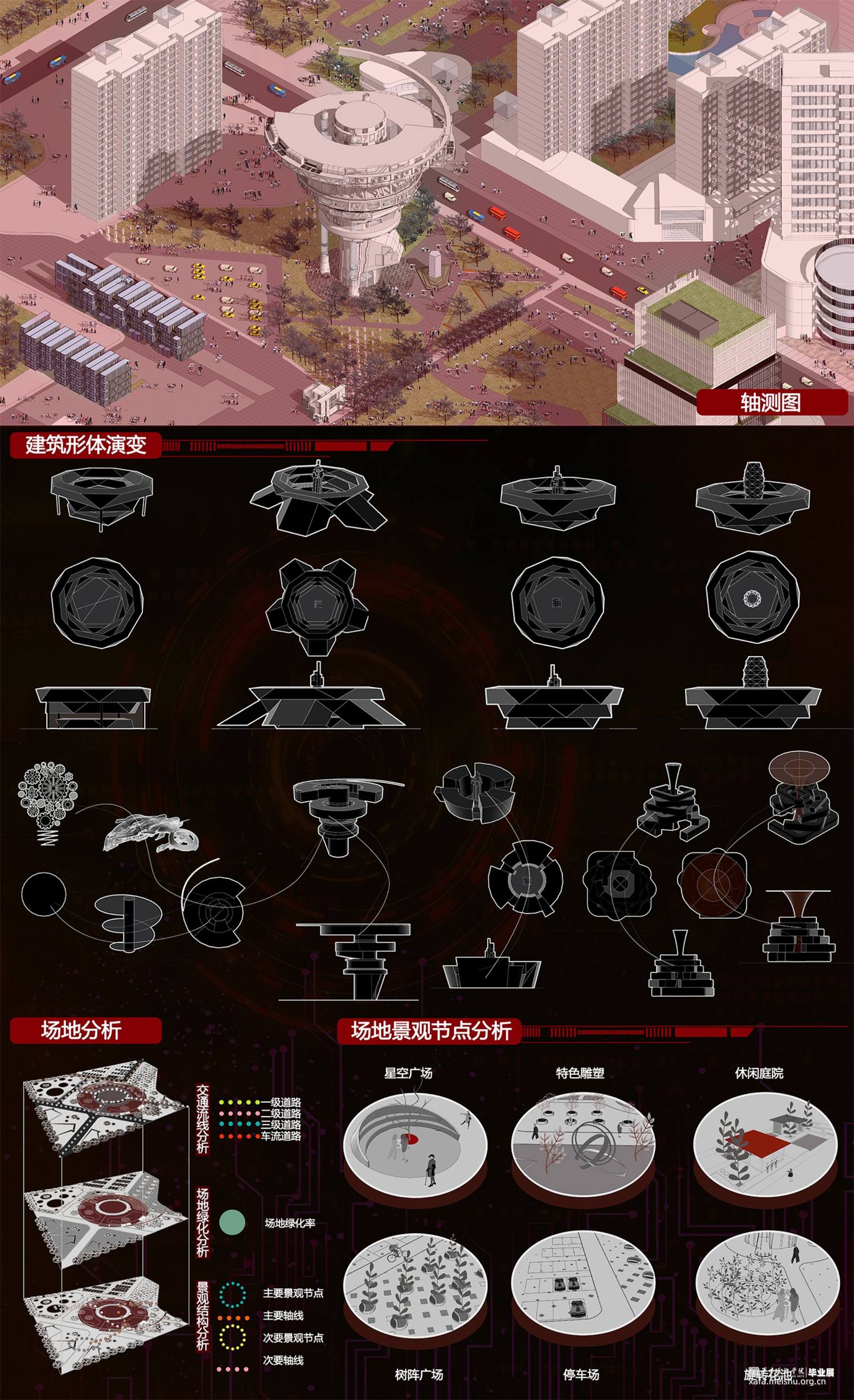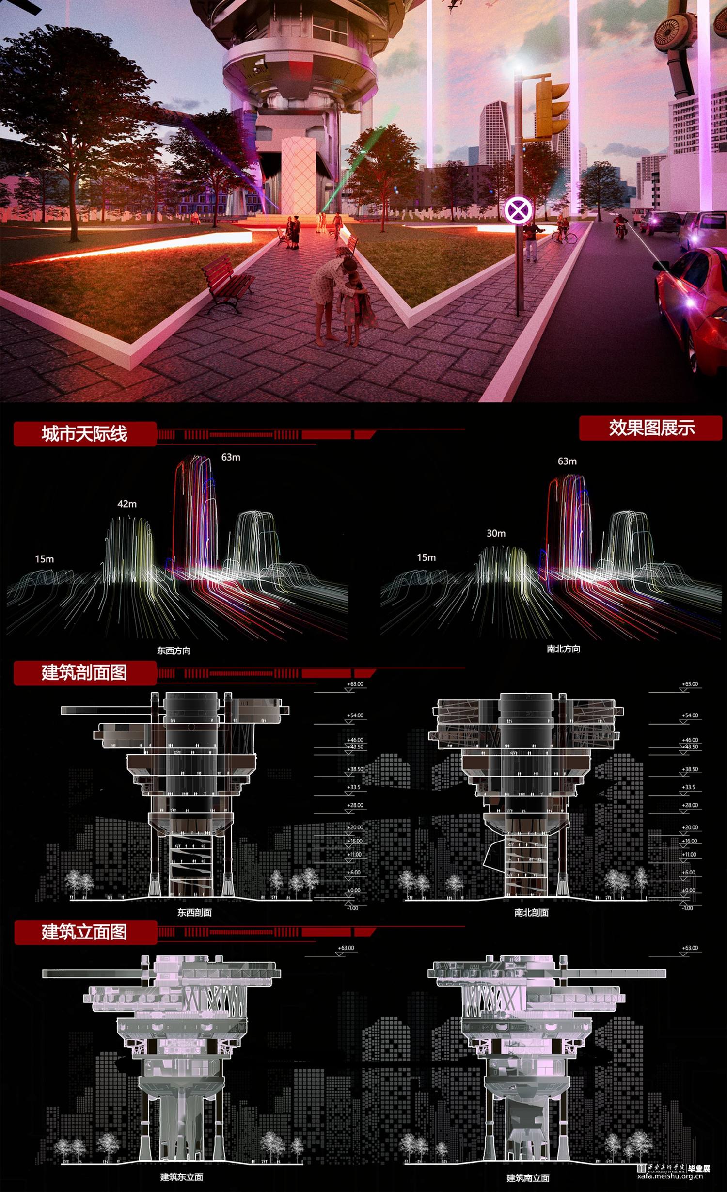 研究聚焦于朋克文化在当代审美语境下对建筑形态的扩展性,以朋克文化为艺术桥梁,进行对空间感受、视觉体验、展示交互手段等多方面的糅合,使得建筑能够呈现更好的朋克艺术效果,以此营造出一种有意义的空间体验而不仅仅是一系列的视觉图像,以便能够更好的进行朋克文化的传播与发展。设计主要在形态、表皮、色彩方面融入朋克元素,形成视觉上与空间上的相互渗透,与游客形成丰富的对话。