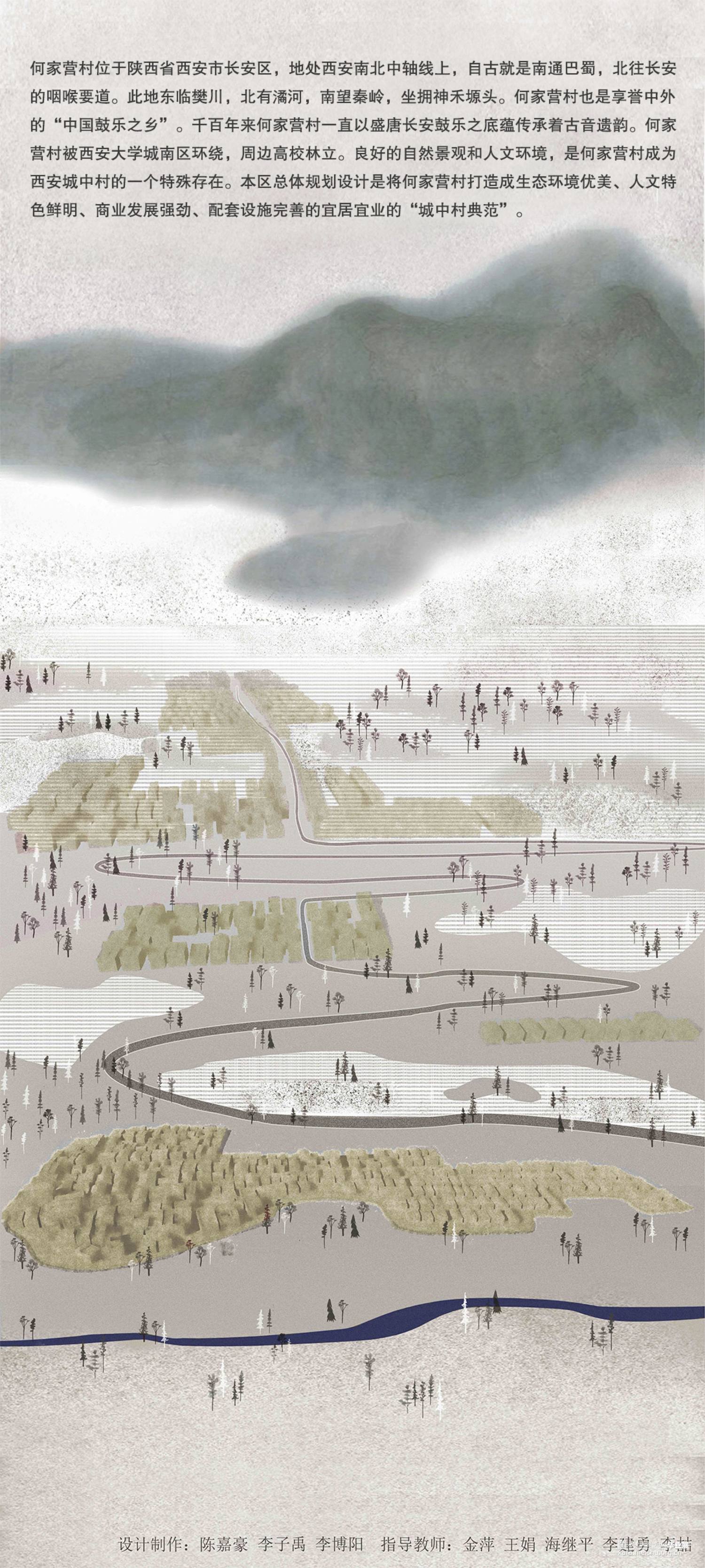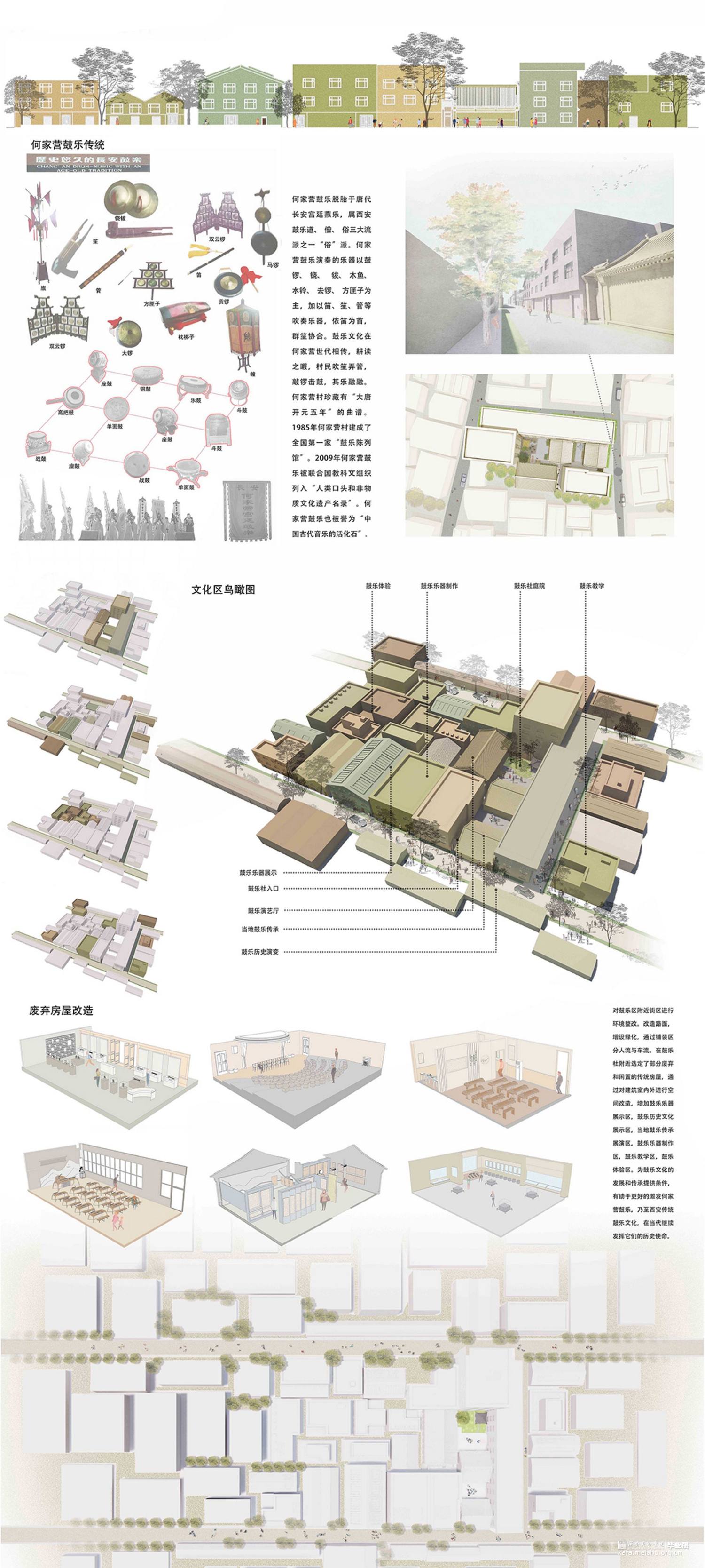 何家营村的鼓乐、商业和生态景观的整体规划与结合为何家营村的经济发展以及生态宜居性等方面带来了巨大的推动作用,增强了传统文化氛围,使何家营村改造设计的场所精神得以建立。