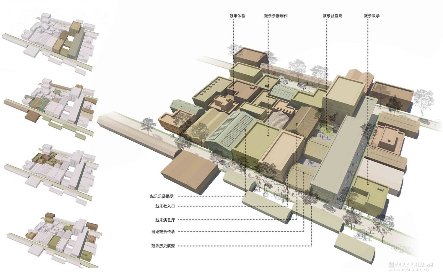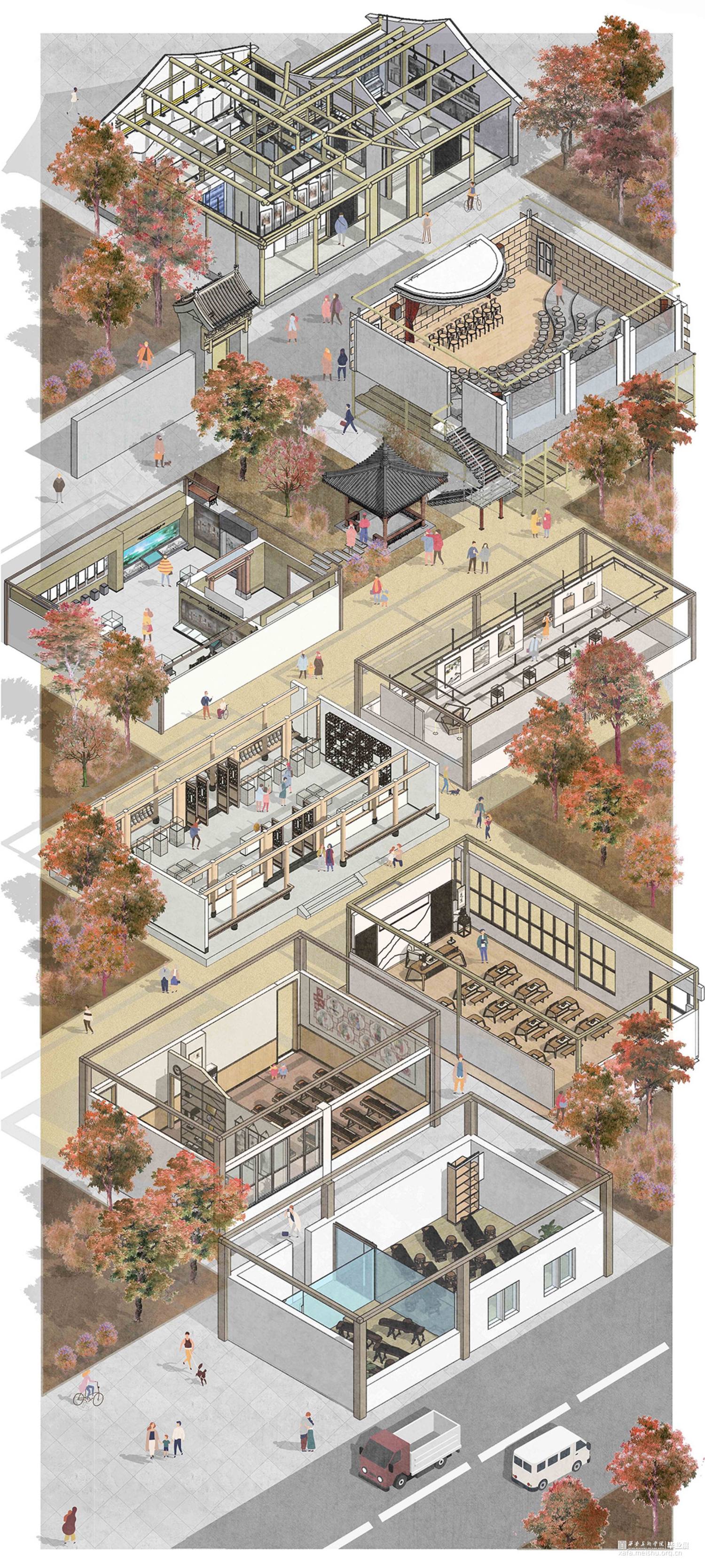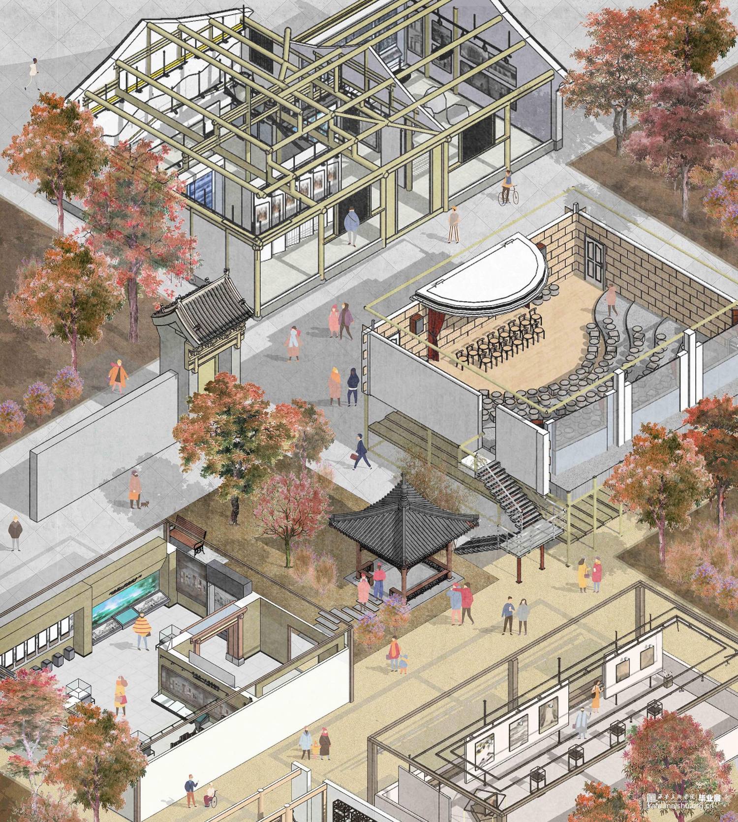 在“鼓韻文化区”设计中以何家营鼓乐社与周边老建筑的环境改造提升和增设鼓乐表演场所为目的。让何家营鼓乐社得到了更广阔的文化宣传空间,也让附近高校学生和访客能够参与其中,给予何家营村鼓乐文化更积极的影响。