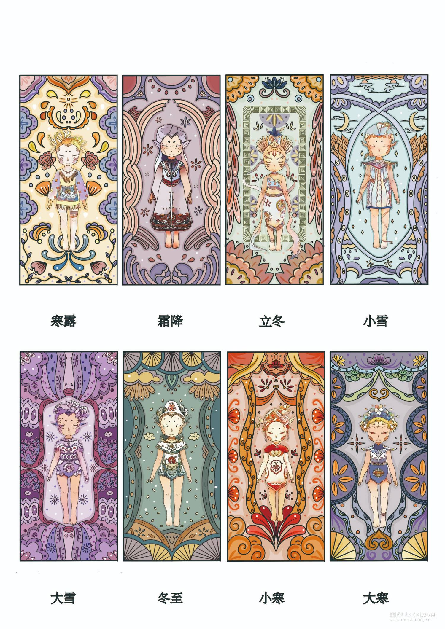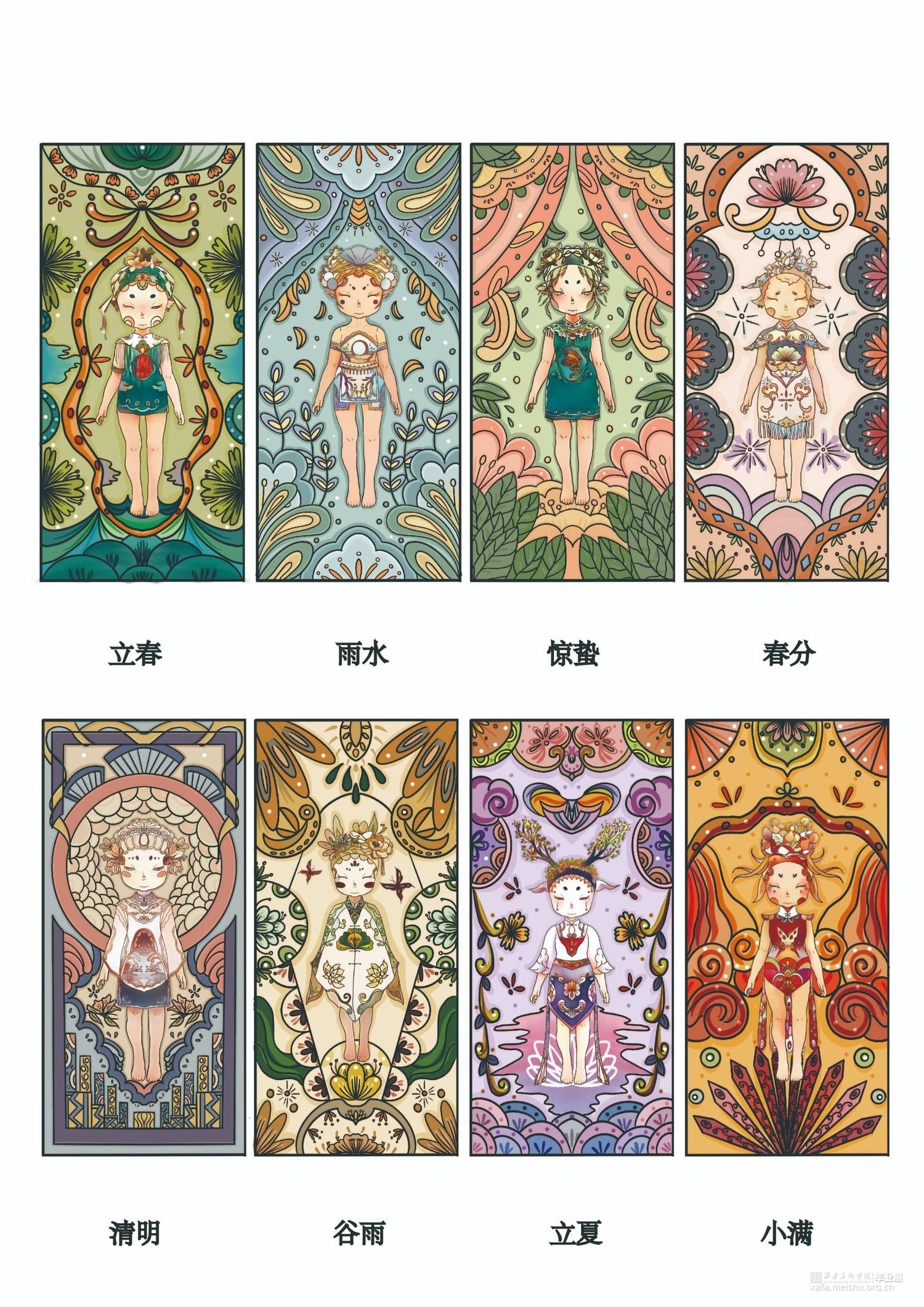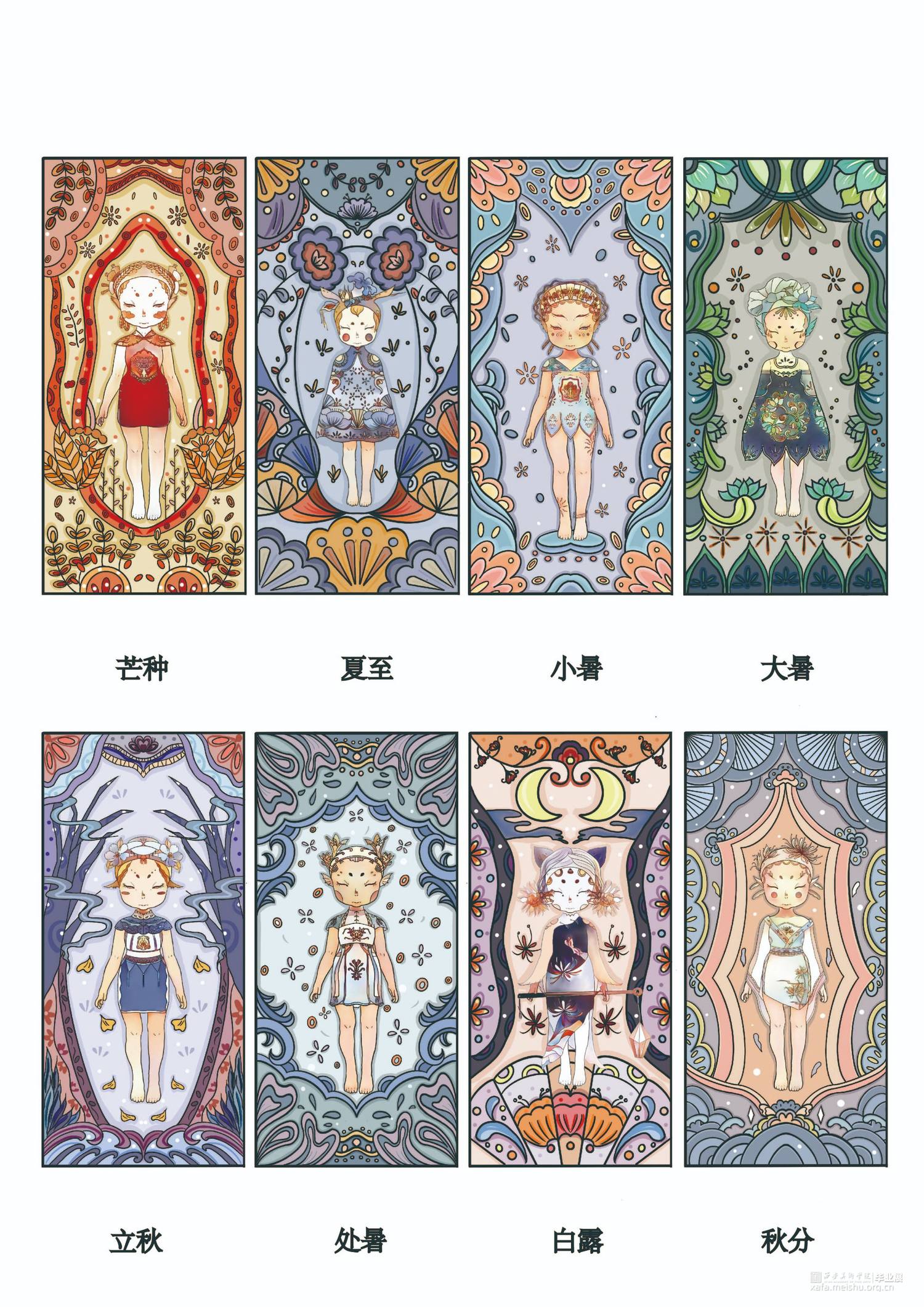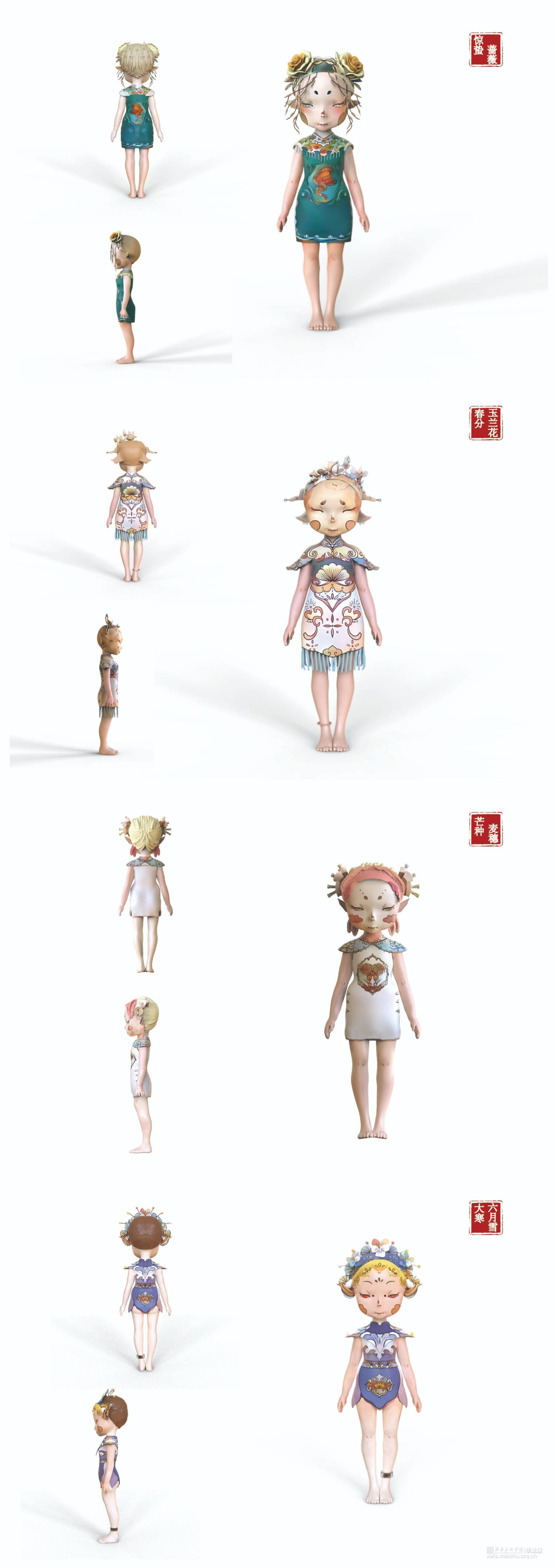随着当今社会科技的发展,卫星探测的崛起,天气预报带给人类的便捷,使传统二十四节气表逐渐被人类淡忘。但其实它象征了古人的智慧、是上古农耕文明的产物,是衡量人与自然宇宙之间独特的时间方式。该系列作品以现代艺术角度重新塑造二十四节气形象,结合中国传统服饰及其节气特征,与现代视觉设计理念相结合设计二十四节气人偶形象、系列插画及其食品包装。并将人偶形象通过3DMAX及3D打印技术,呈现出3维立体效果为大众带来全新的视觉体验。