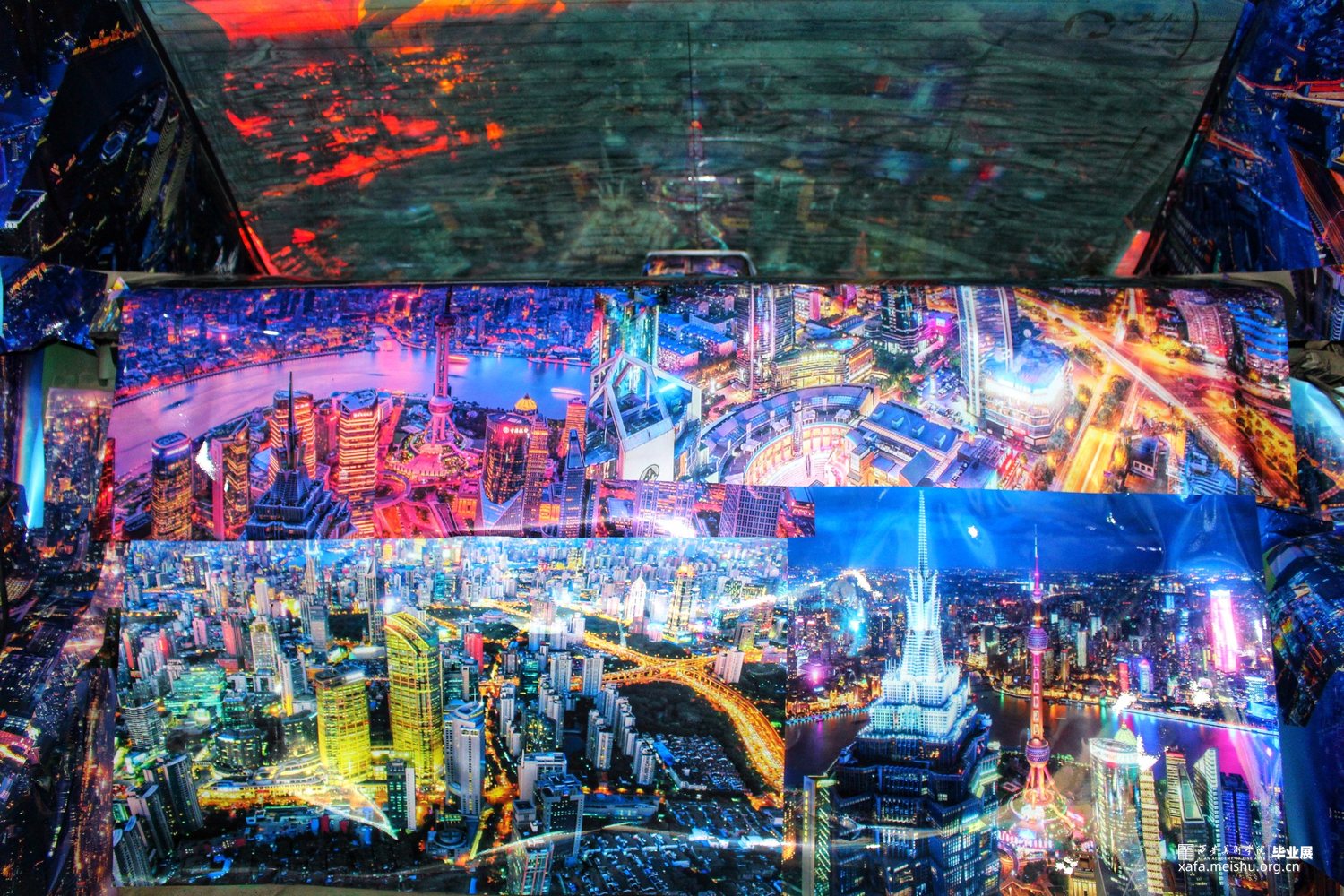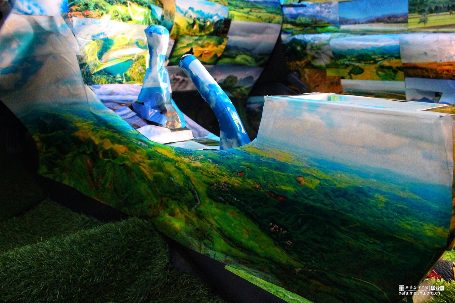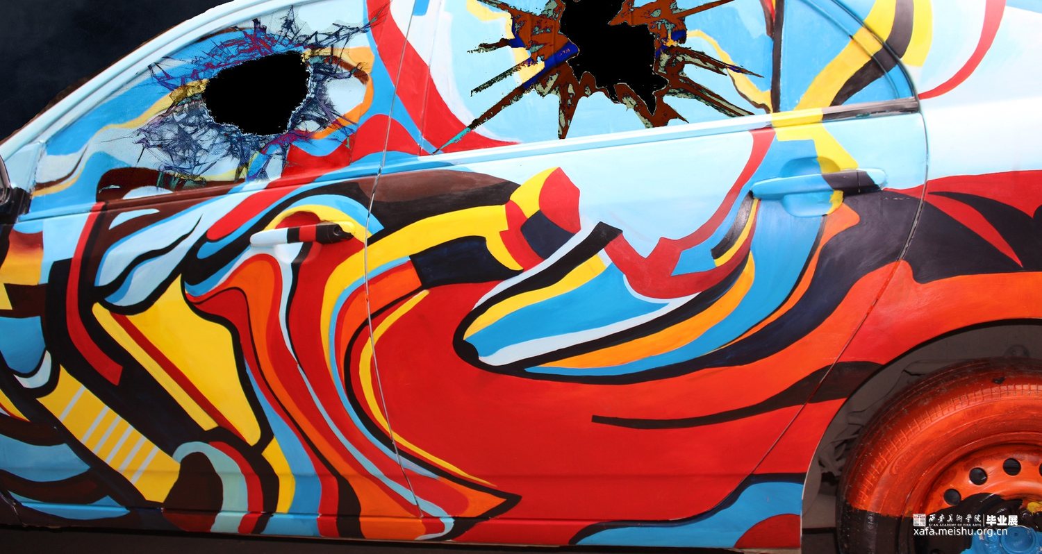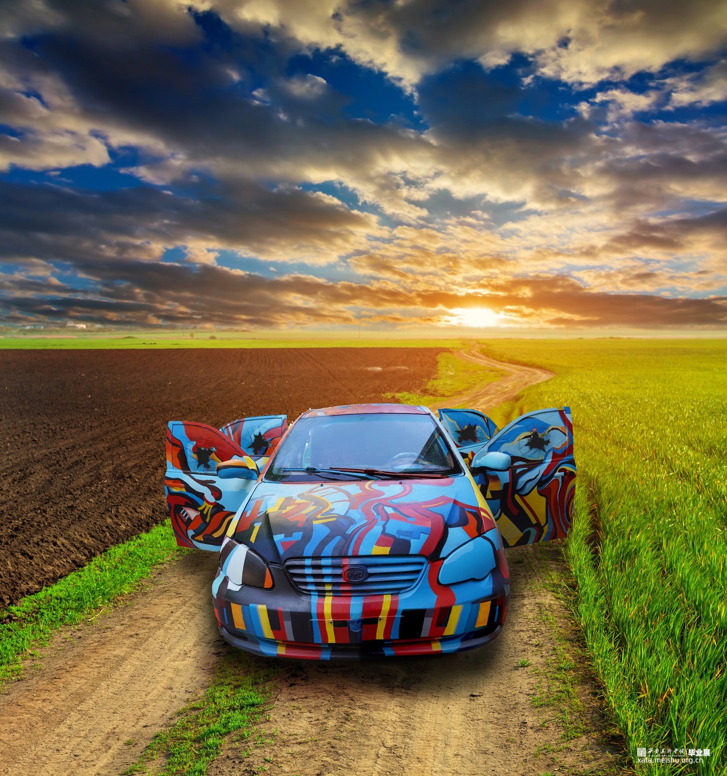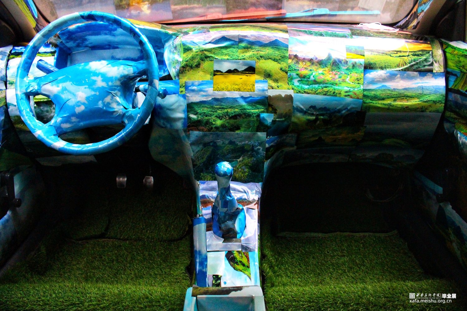 《蜃境》是装置作品,有小轿车,涂鸦绘画,城市与乡村的照片组成,是综合材料与绘画,装置艺术和波普艺术构成。作品表达:表达的是我们心灵追求的一种如梦如真的一个美丽的境地。蜃是各种幻影,美丽而令人向往的地方,是人类梦想的栖息地,是桃花源,是每个人的内心里的归属地,是心灵层次上的理想乡,或许触手可及或许触不可及。人的一生光阴匆匆,犹如一辆轿车永远驶在路上,它的目的地也许不是我们心之所向,但车总是朝向计划的目的地行驶。所以我们选择以车体为载体表达这件装置作品。车内粘贴满了城市与乡村的照片,代表不同人的向往,农村的人