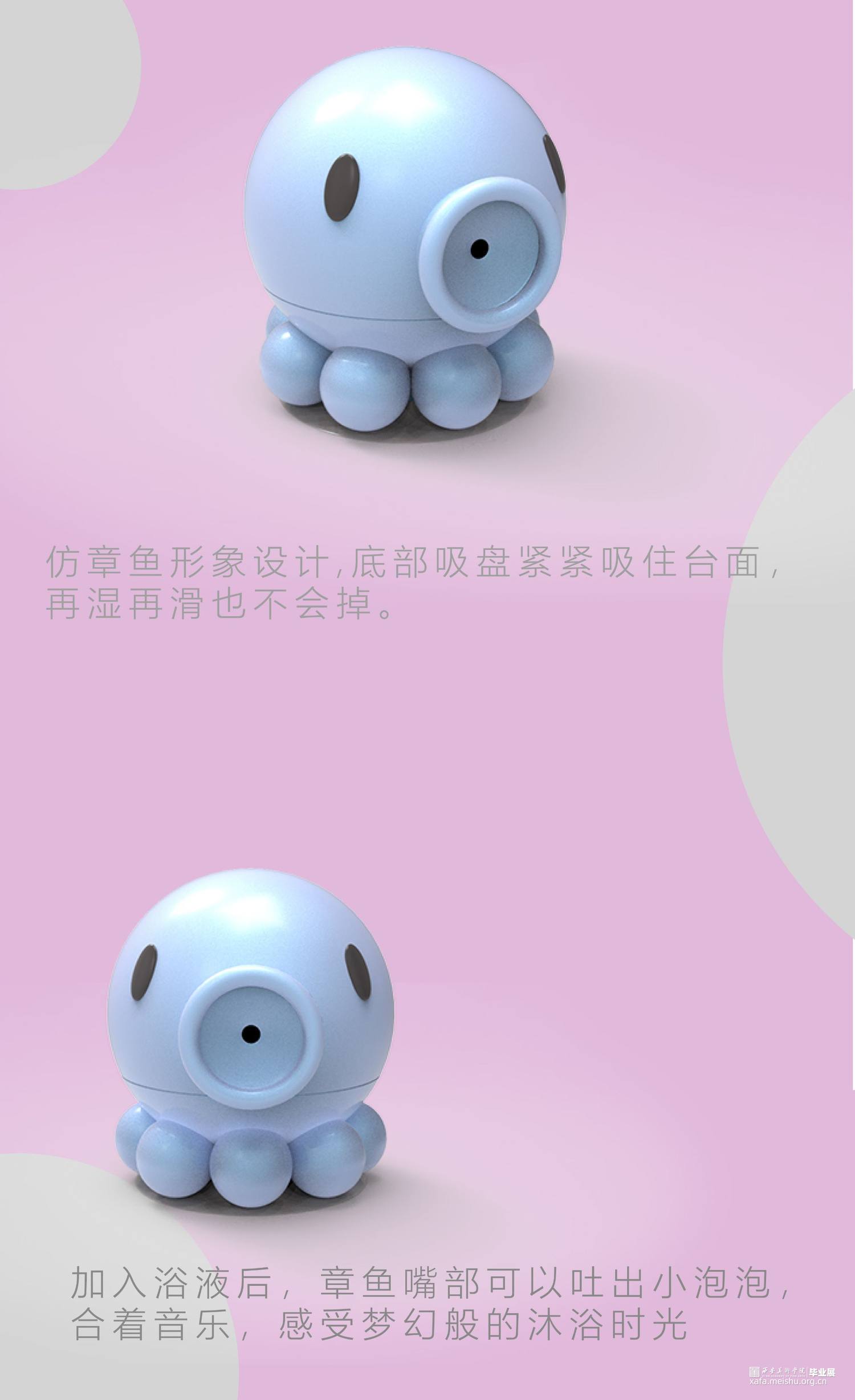 1)章鱼浴室音响:在浴室使用(底部有吸盘可吸附在墙面),除了具备基础的播放音乐的功能,按压章鱼嘴可以从嘴中吐出绵密的泡沫沐浴液。