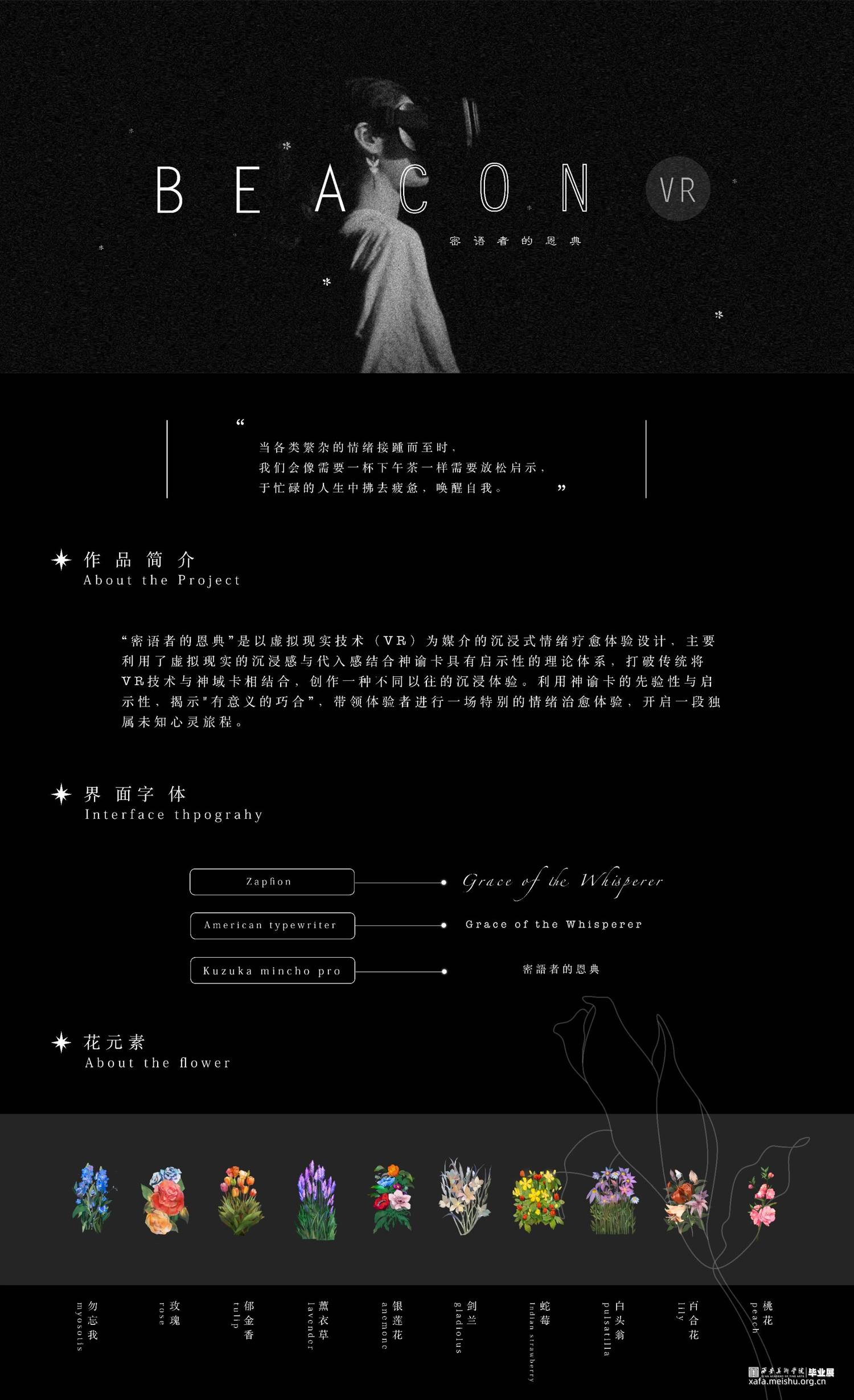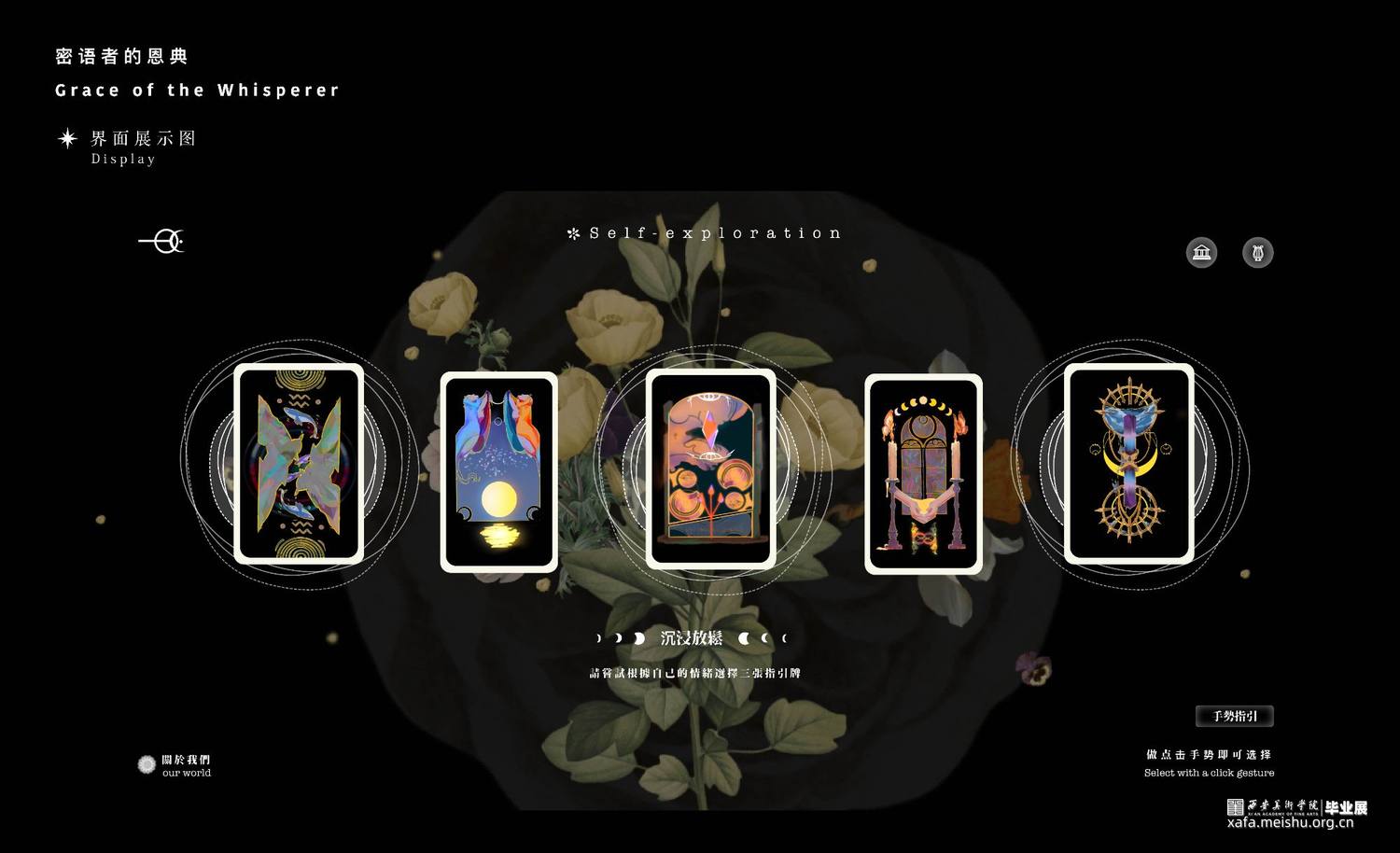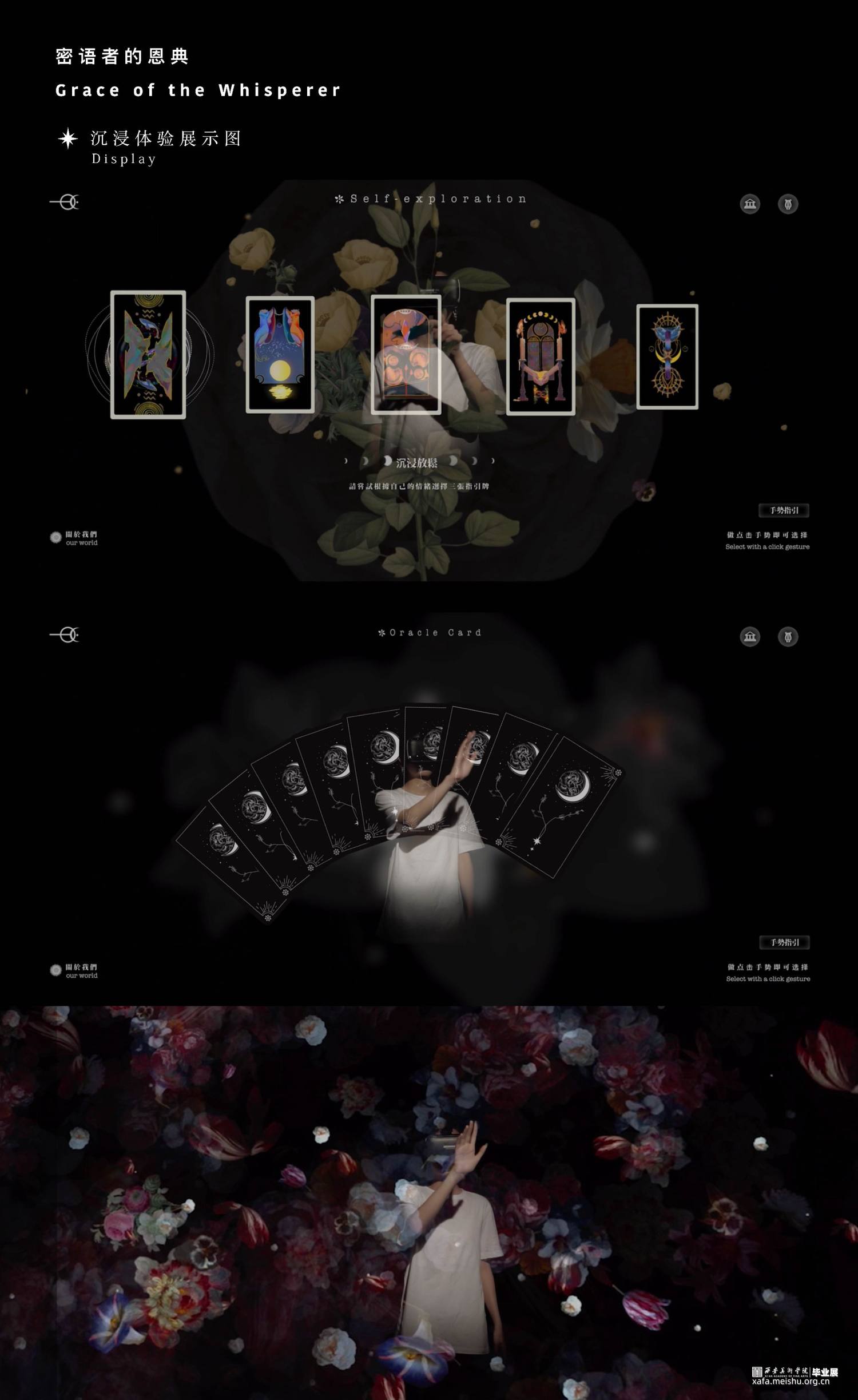《Beacon·密语者的恩典》是以虚拟现实技术(VR)为媒介的沉浸式情绪疗愈体验设计,主要利用了虚拟现实的沉浸感与代入感结合神谕卡具有启示性的理论体系,打破传统将VR技术与神域卡相结合,创作一种不同以往的沉浸体验。利用神谕卡的先验性与启示性,揭示"有意义的巧合”,带领体验者进行一场特别的情绪治愈体验,开启一段独属未知心灵旅程。