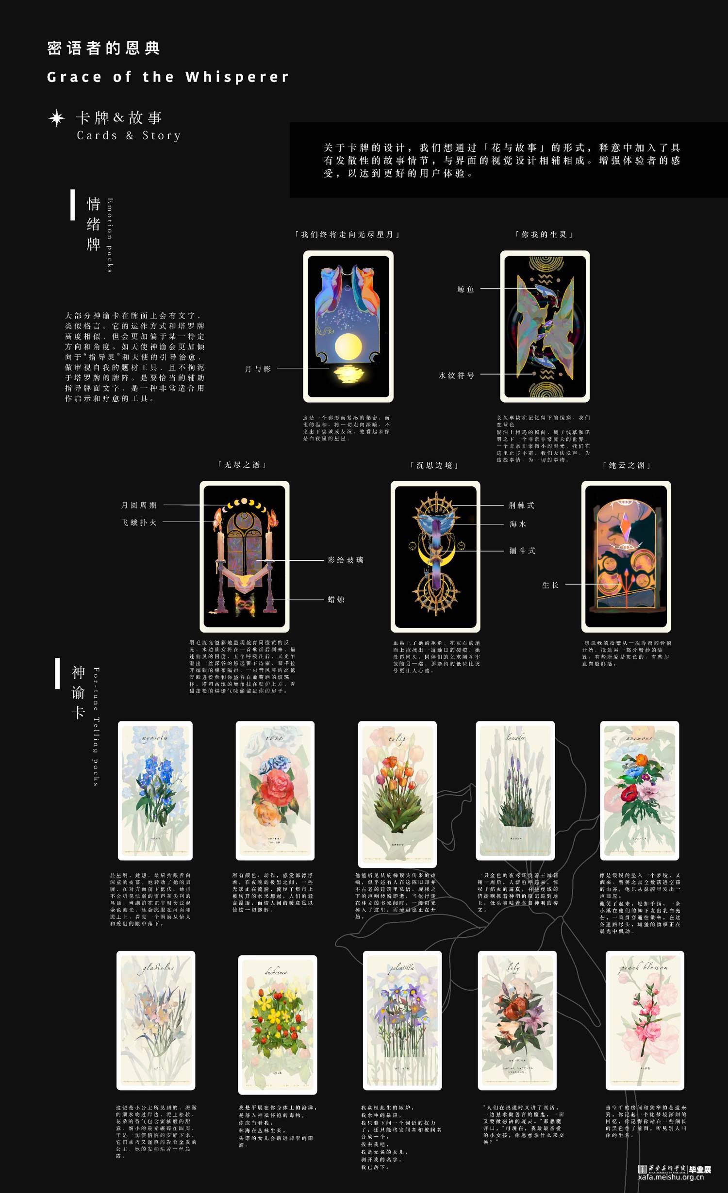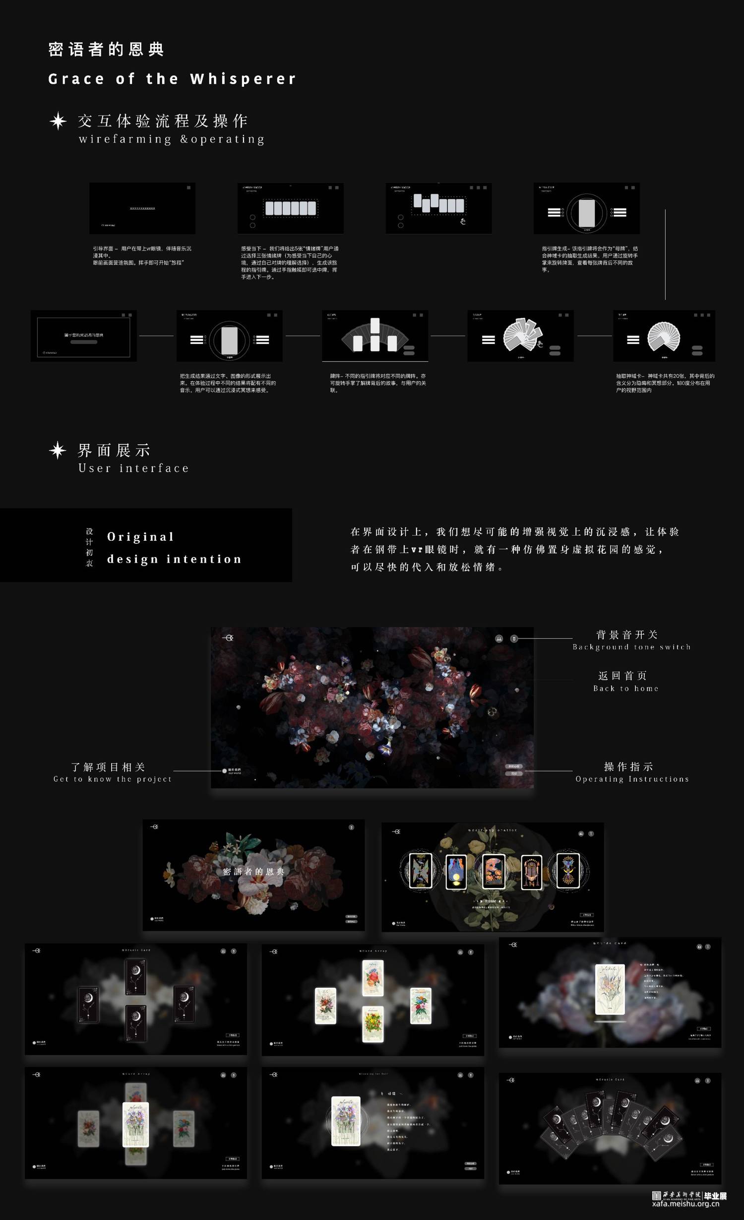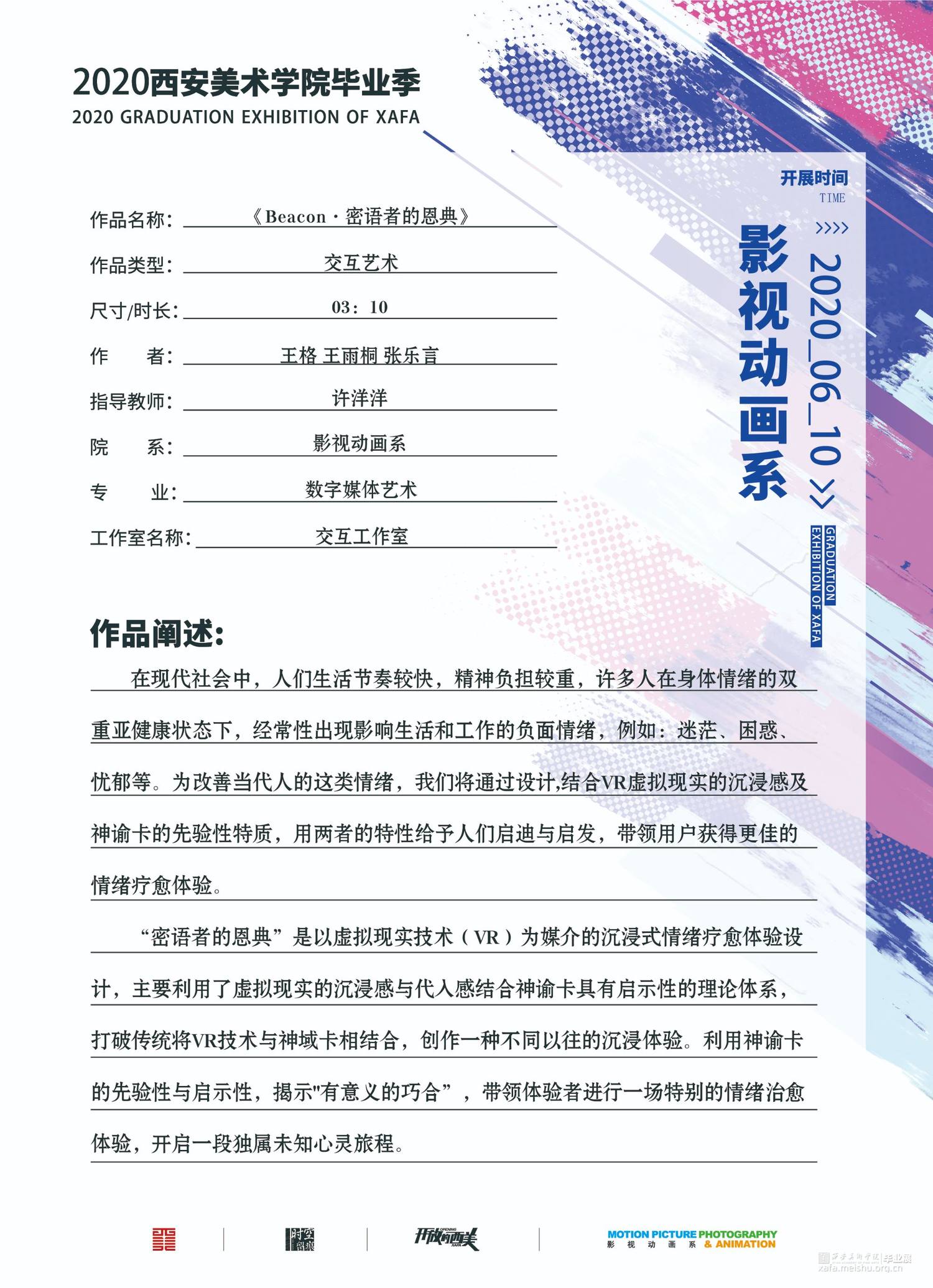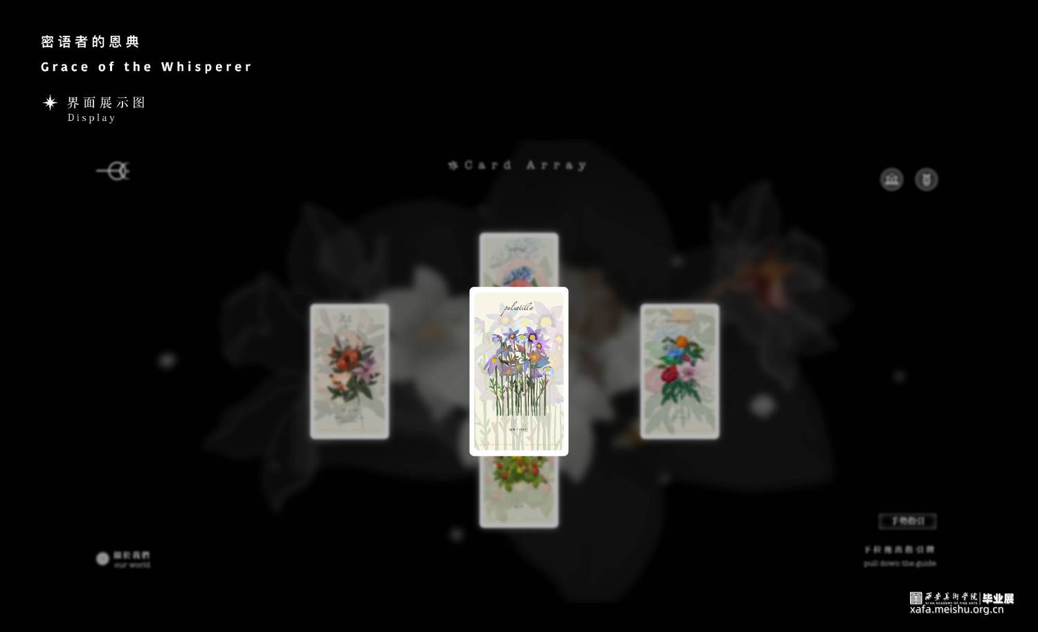 《Beacon·密语者的恩典》是以虚拟现实技术(VR)为媒介的沉浸式情绪疗愈体验设计,主要利用了虚拟现实的沉浸感与代入感结合神谕卡具有启示性的理论体系,打破传统将VR技术与神域卡相结合,创作一种不同以往的沉浸体验。利用神谕卡的先验性与启示性,揭示"有意义的巧合”,带领体验者进行一场特别的情绪治愈体验,开启一段独属未知心灵旅程。