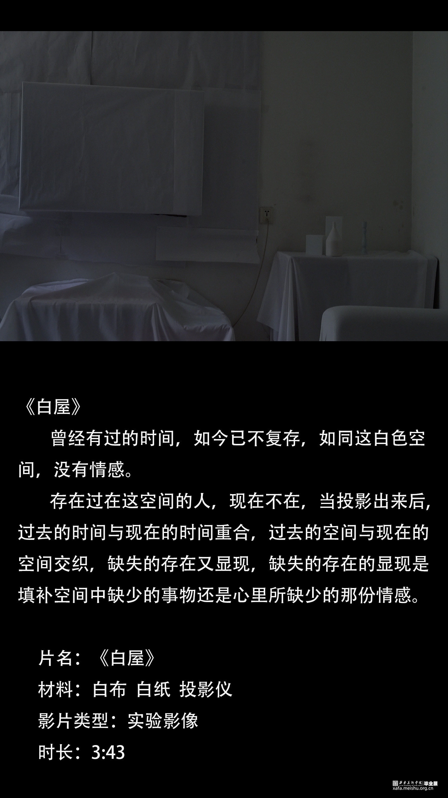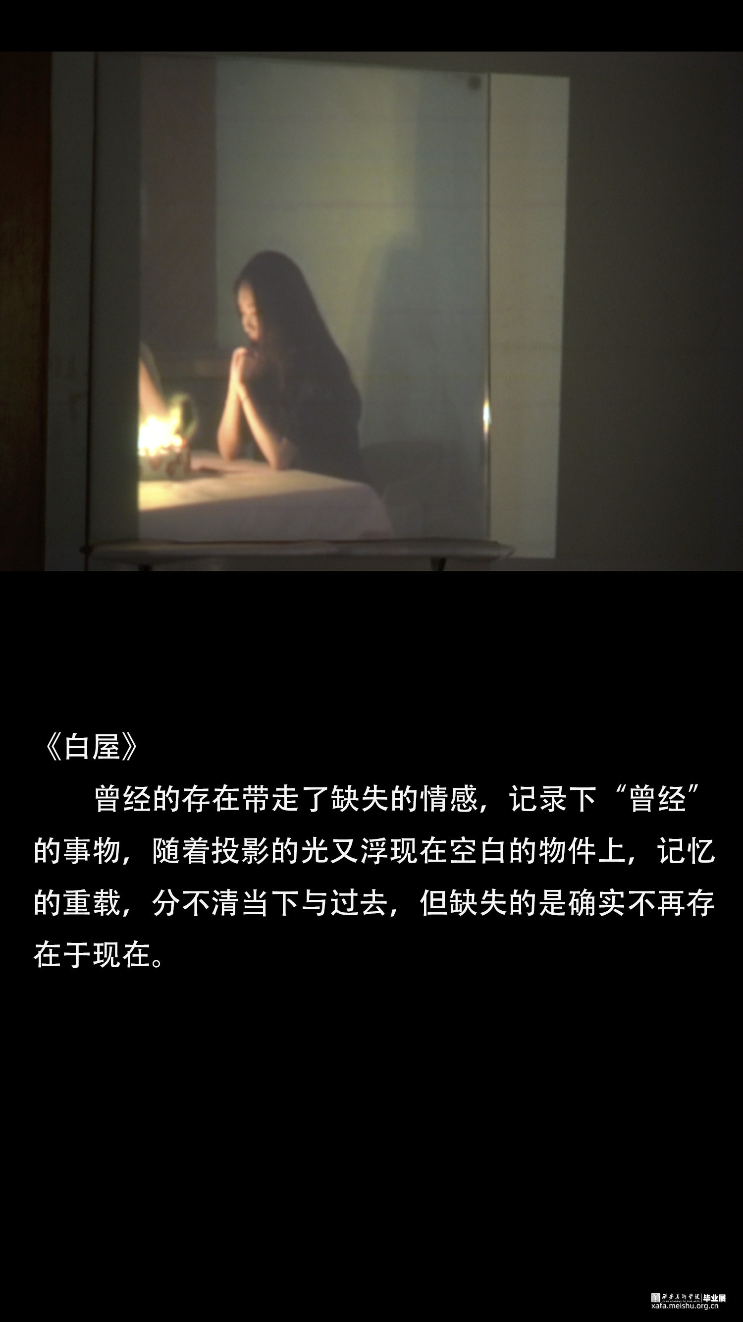 第二部分是张俊丰的实验影像,使用的技术是mapping,场景都是白色的,投影出现在原位置上后又渐渐消失。