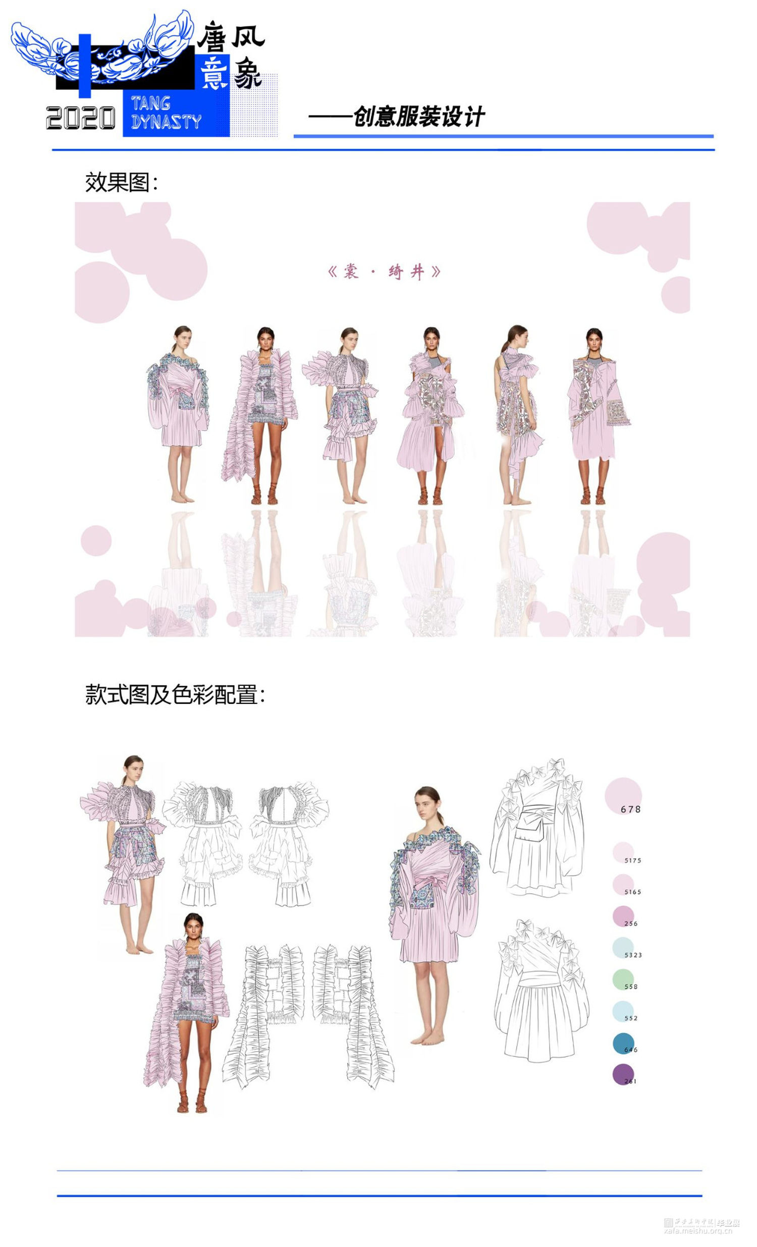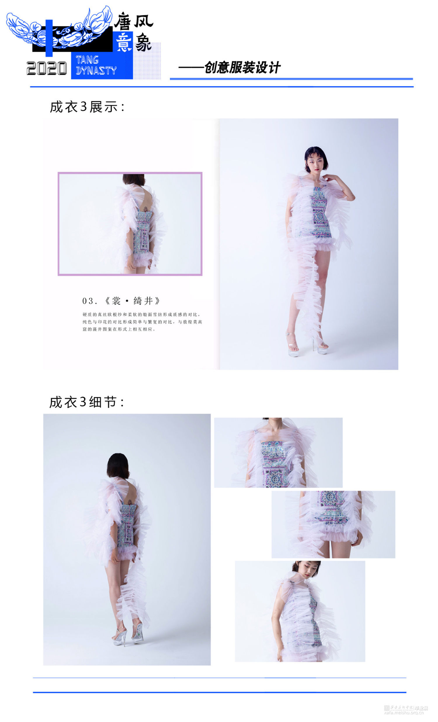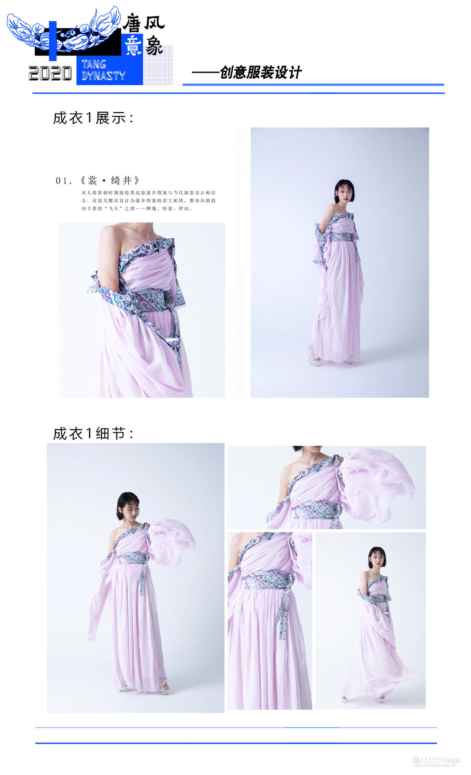 将藻井图案与当代服装设计相结合,在传统文化中汲取养分,与新颖的设计思路相融合,使传统图案更加熠熠发光。传达出传统与时尚碰撞、融合的设计理念,给人以精神感官和视觉审美上的双重满足,体现出传统图案与当代服装设计结合所迸发的生机与魅力。