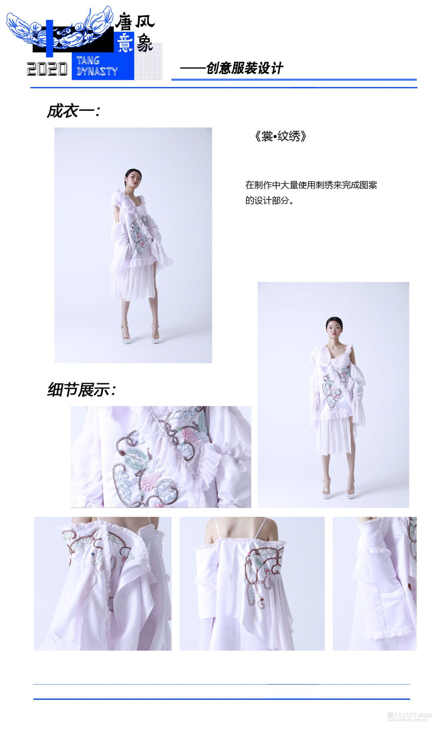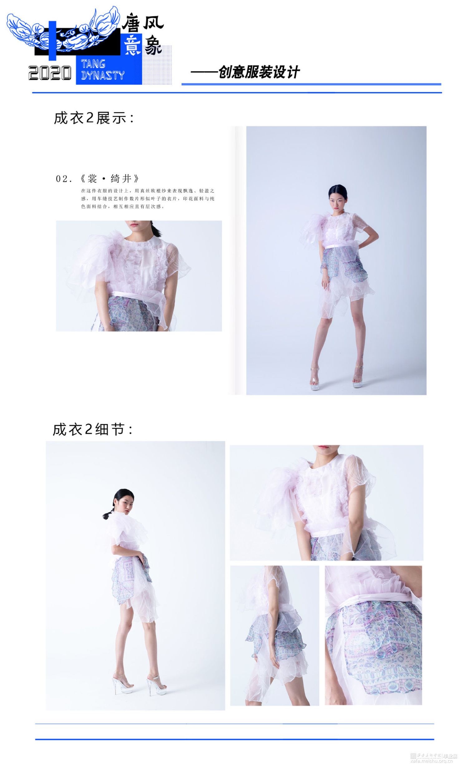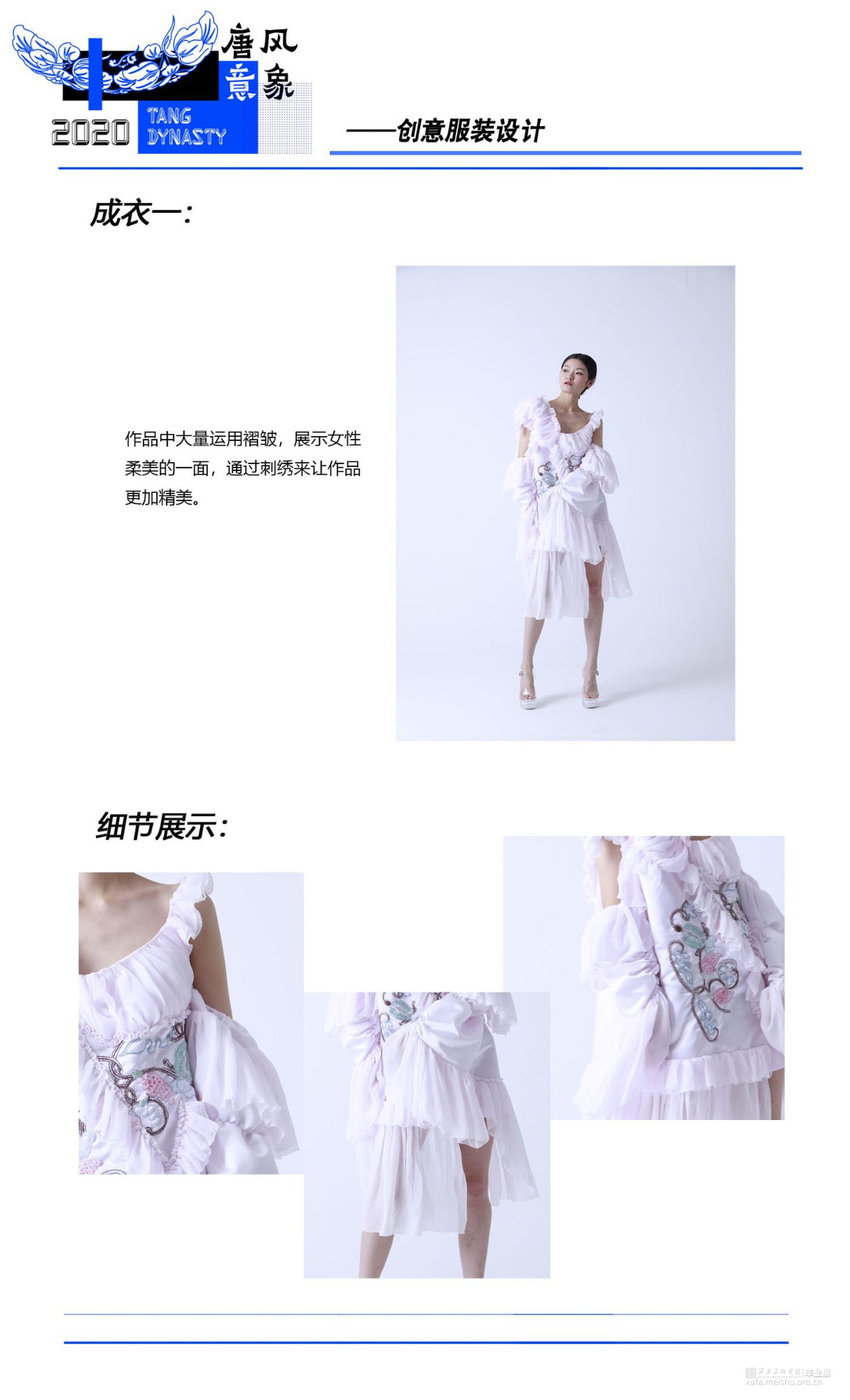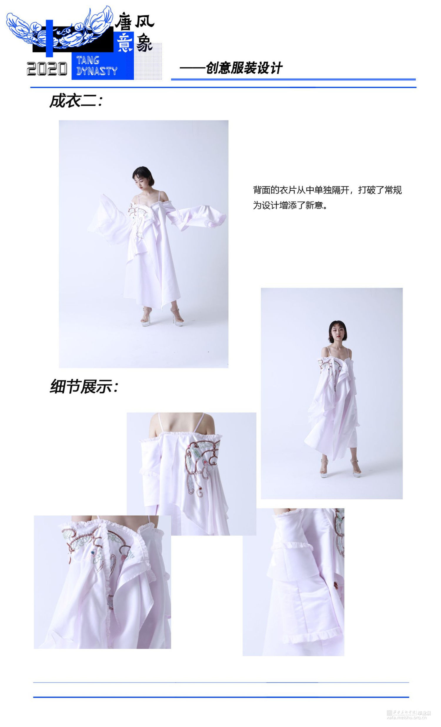 将藻井图案与当代服装设计相结合,在传统文化中汲取养分,与新颖的设计思路相融合,使传统图案更加熠熠发光。传达出传统与时尚碰撞、融合的设计理念,给人以精神感官和视觉审美上的双重满足,体现出传统图案与当代服装设计结合所迸发的生机与魅力。