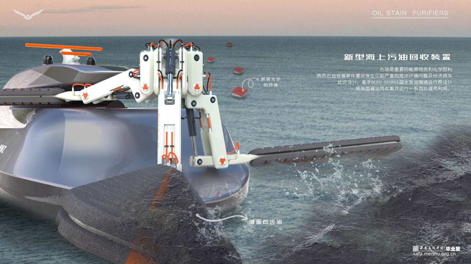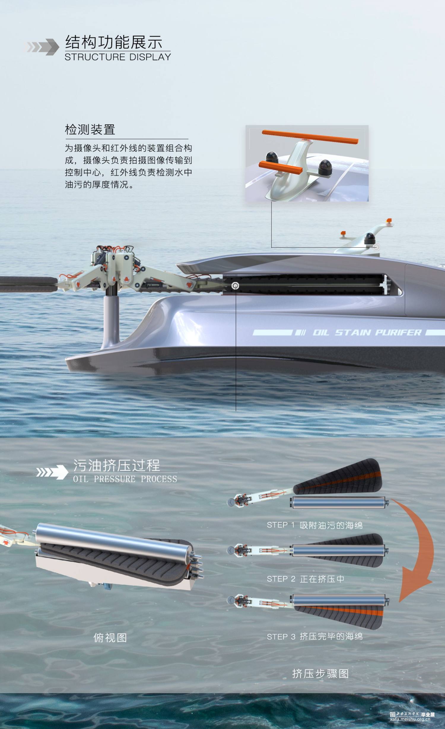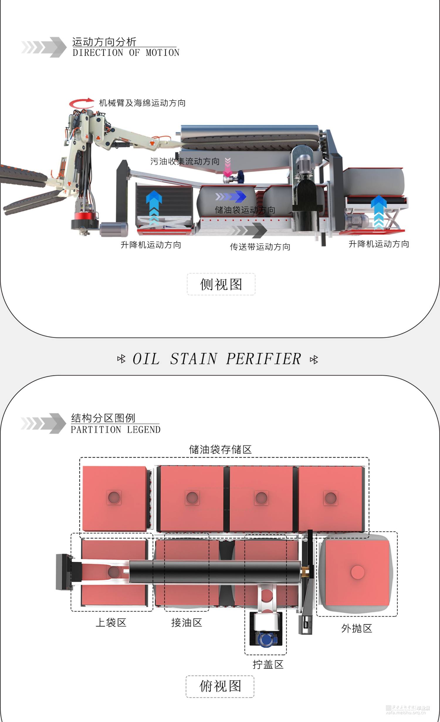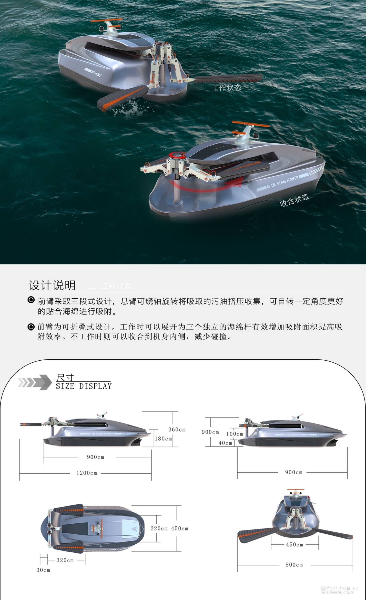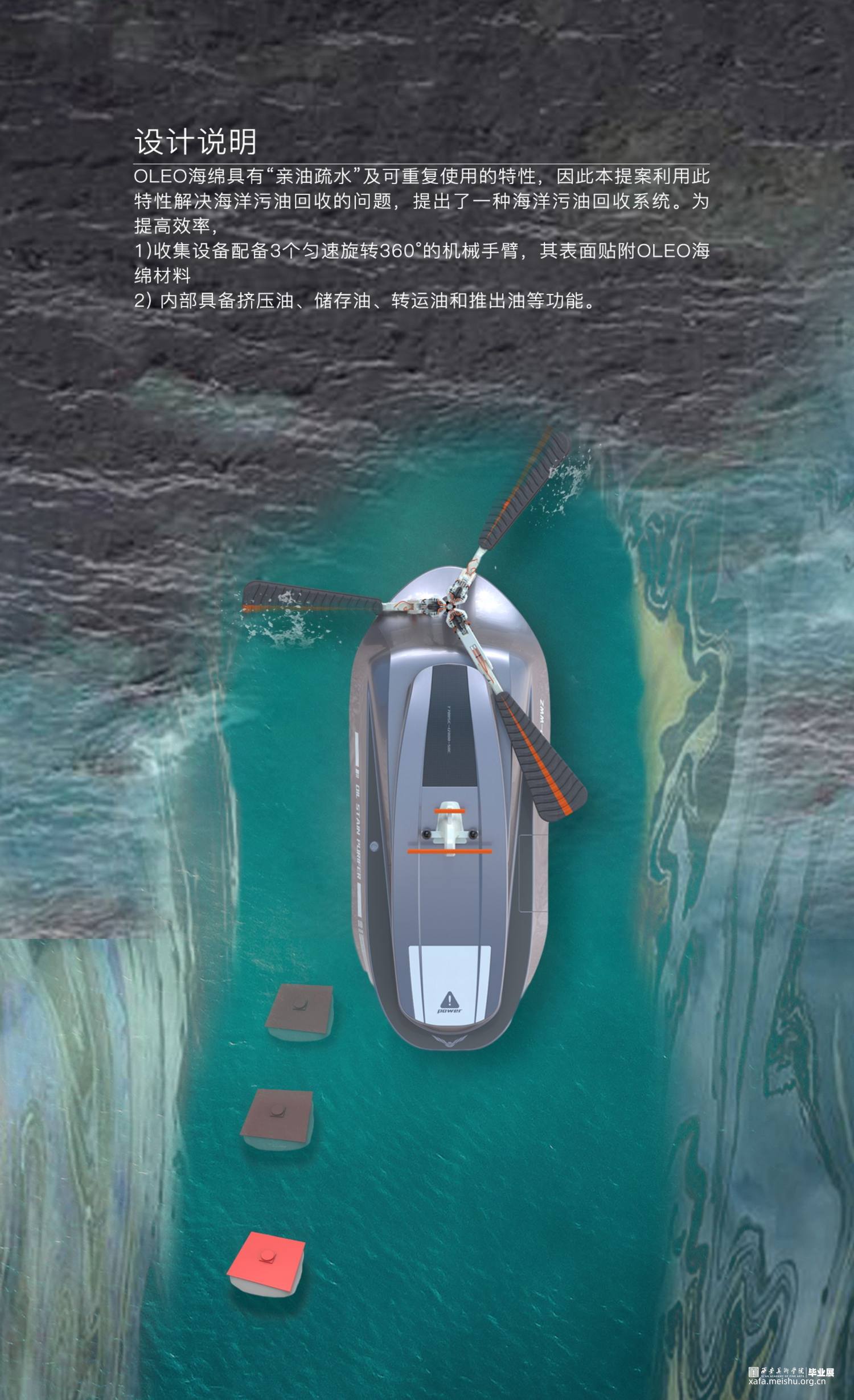 1) 收集设备配备3个匀速旋转360°的机械手臂,其表面贴附OLEO海绵材料;
