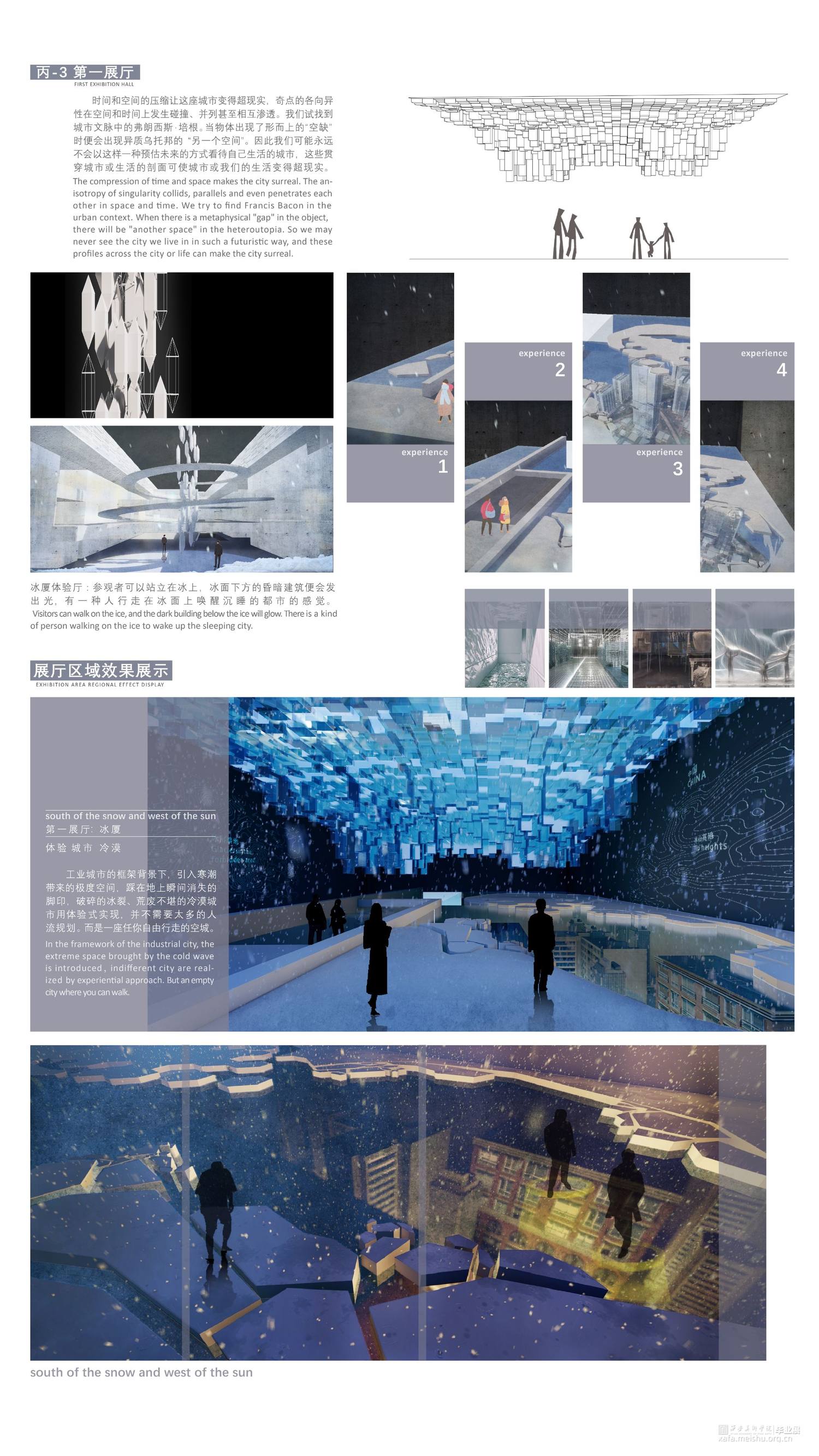 工业城市的框架背景下,引入寒潮带来的极度空间,踩在地上瞬间消失的脚印,破碎的冰裂,荒废不堪的冷漠城市用体验式来实现,并不需要太多的人流规划。而是一座任你自由行走的空城。
