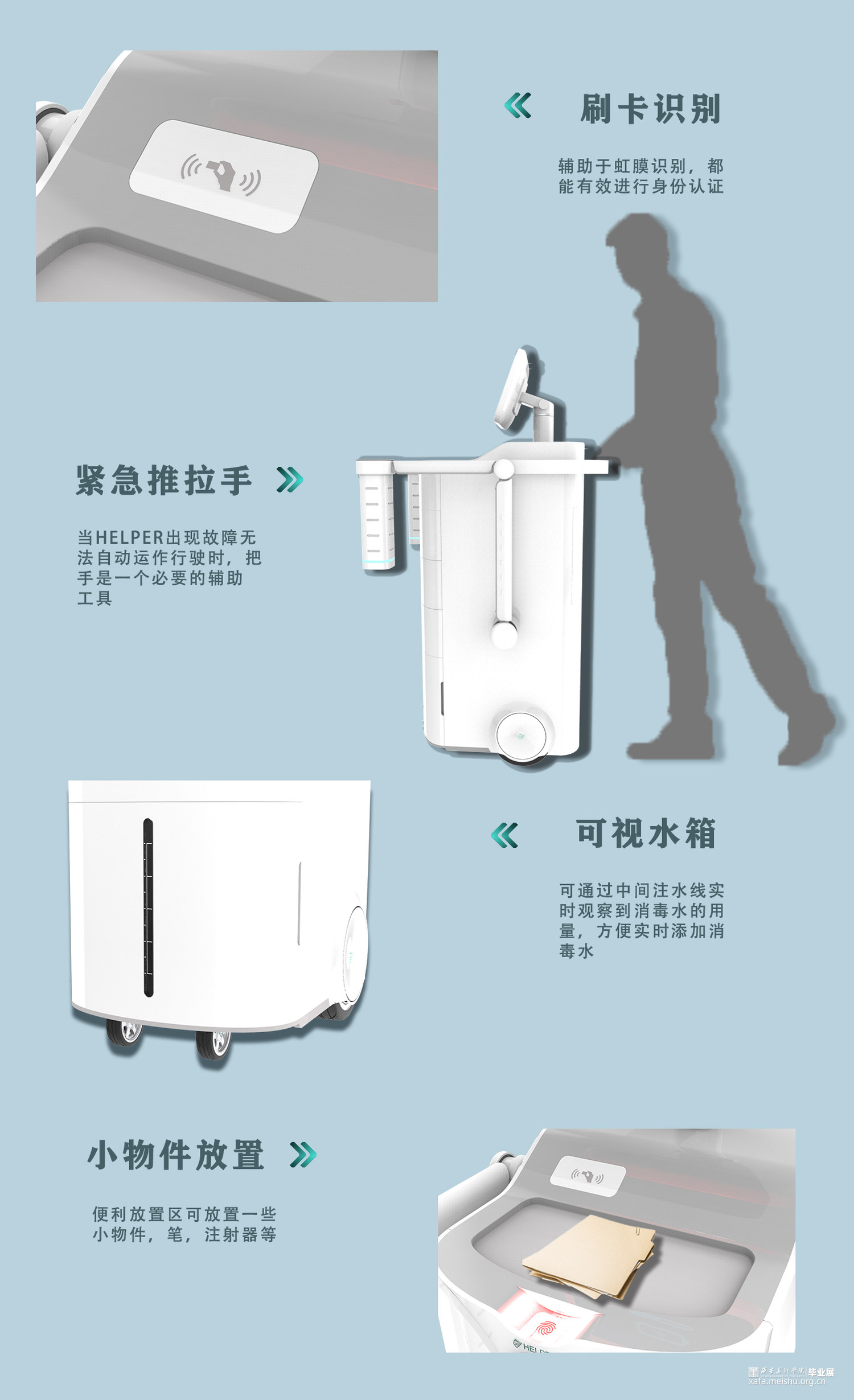 新冠型肺炎是一种传染性极强的病,期间还存有14天的潜藏期,到目前还没有特效的药检测和防控就成了抑制疫情重要手段。 在疫情期间中国医护人群被疫情感染就有3000多人,全球被感染医护人群高达几万人,医护人员正处于高危环境下,对他们的生命造成威胁。许多医务人员因为繁忙的工作任务而倒下。为了更好的解决这一问题,我们设计了HELPER防疫医疗助手,减轻医务人员的工作量,以最大限度优化医疗机器人在防疫领域的空缺。