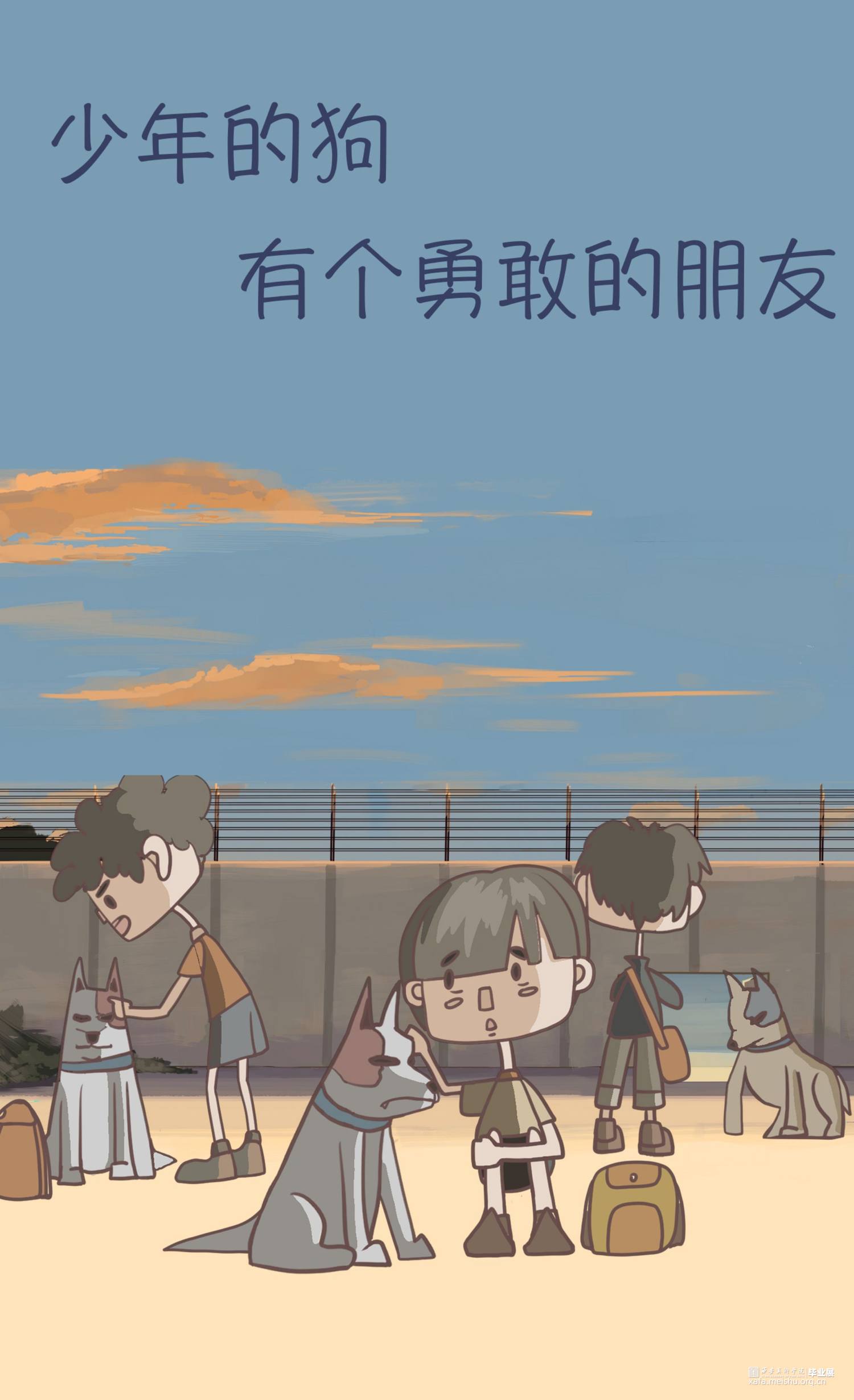 少年的狗有个勇敢的朋友