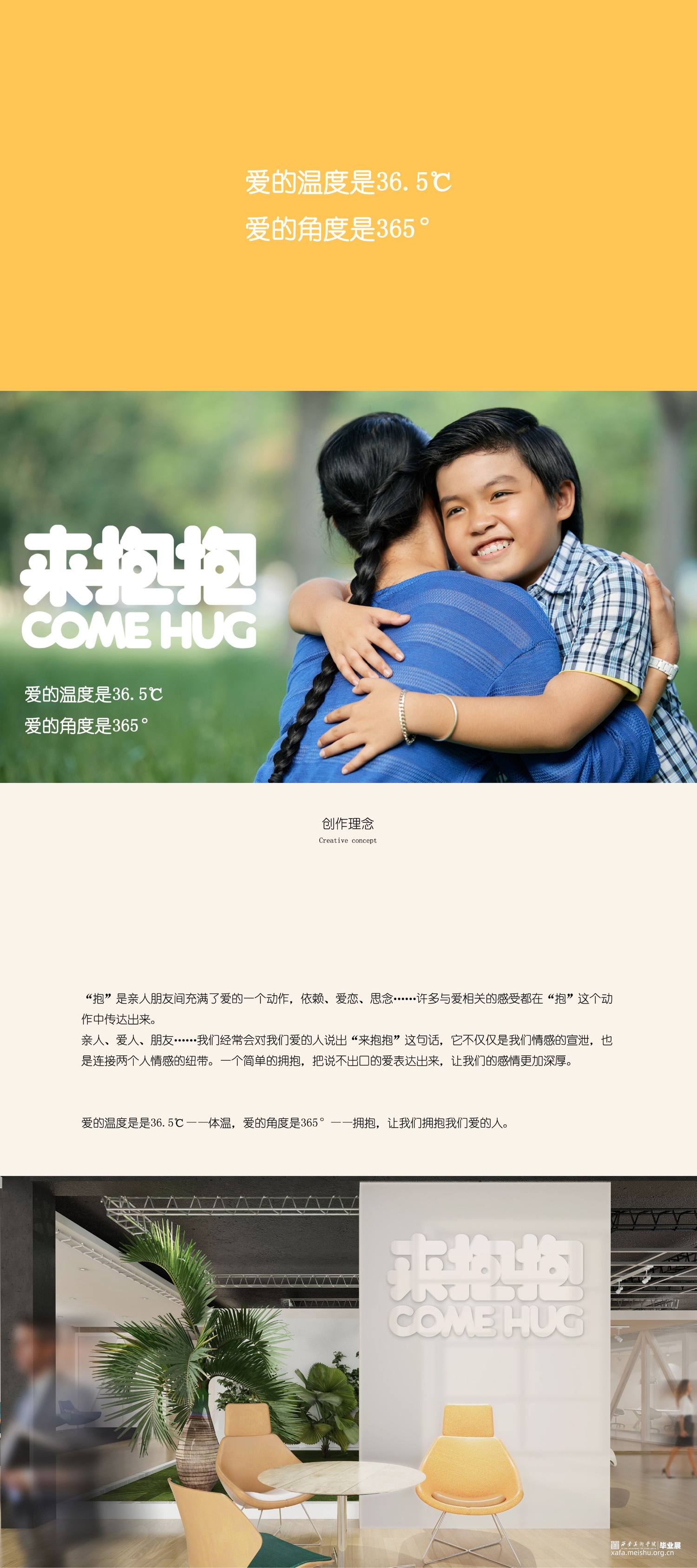 我们的项目名称是《来抱抱》。我们是从“抱”这个动作出发的,拥抱是我们和家人、朋友、爱人之间交流感情的一种很重要的方式,抱不仅是一个动作,也是两个人温度的交换,是两个人爱的交融。所以“来抱抱”作为一个祈使句,我们希望可以让每个看到的人都触碰到自己内心最柔软的地方,去拥抱一下自己最爱的人。