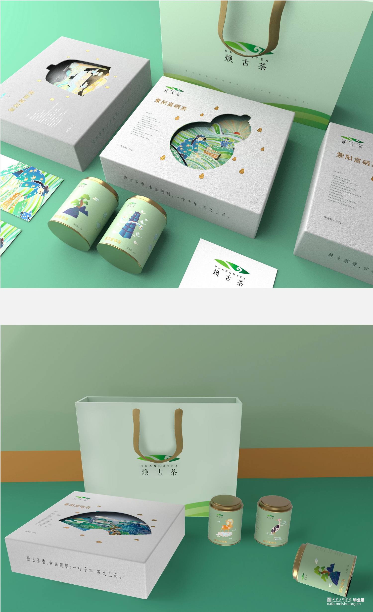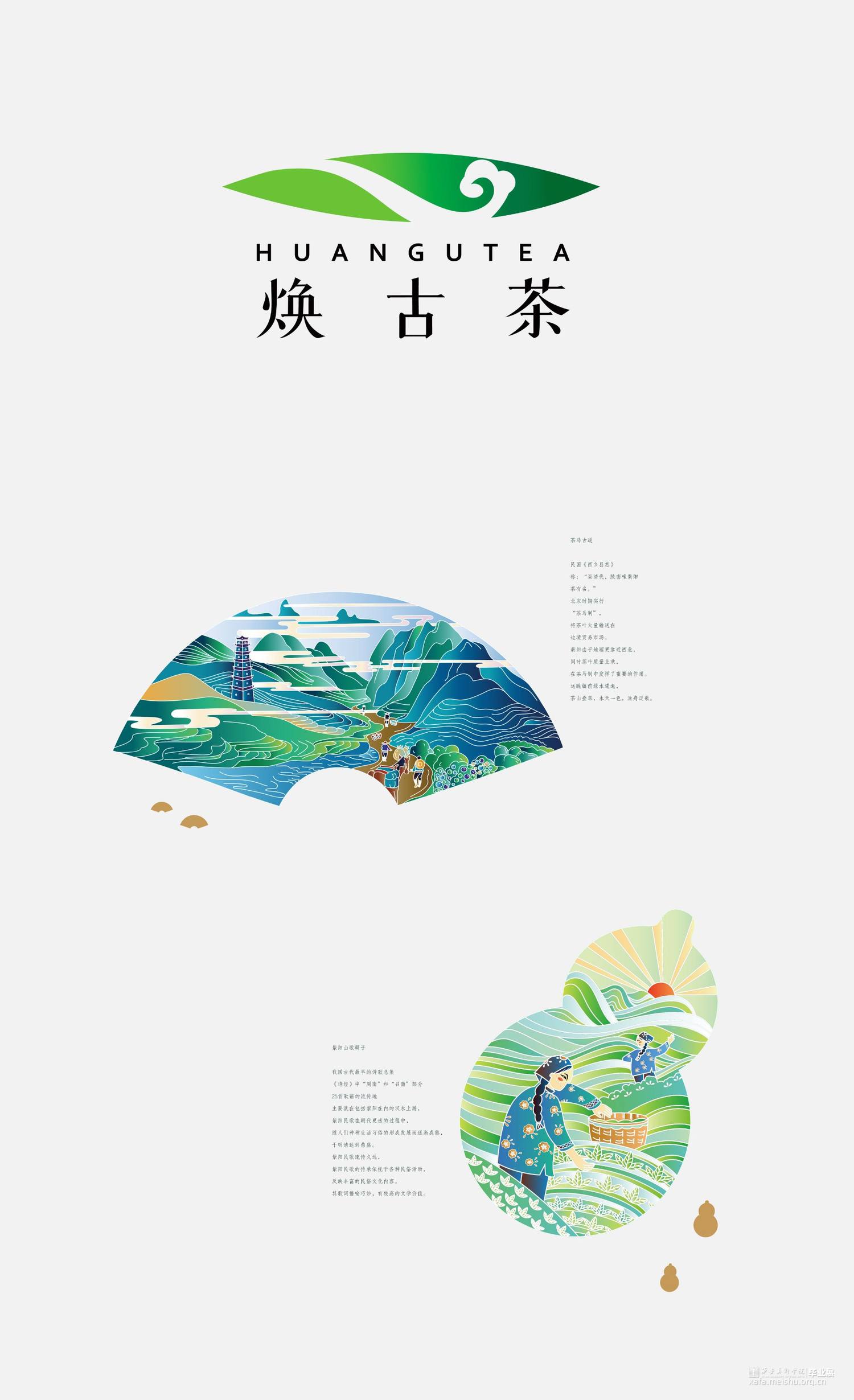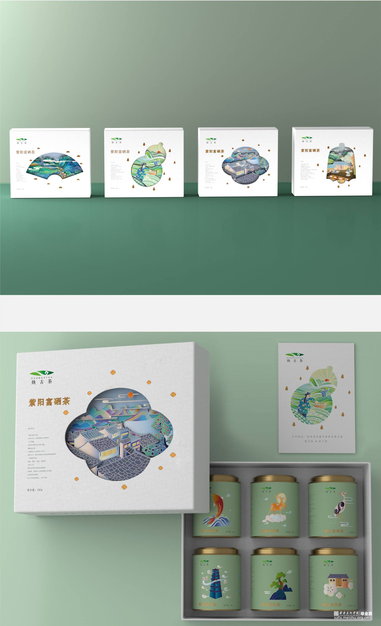 在240g的礼盒装插图上将地域文化与人文文化结合,选用焕古茶最有代表性的场景,如外包装的茶马古道,山水与古塔结合,采茶与紫阳民歌结合,石板房民居,制茶过程,