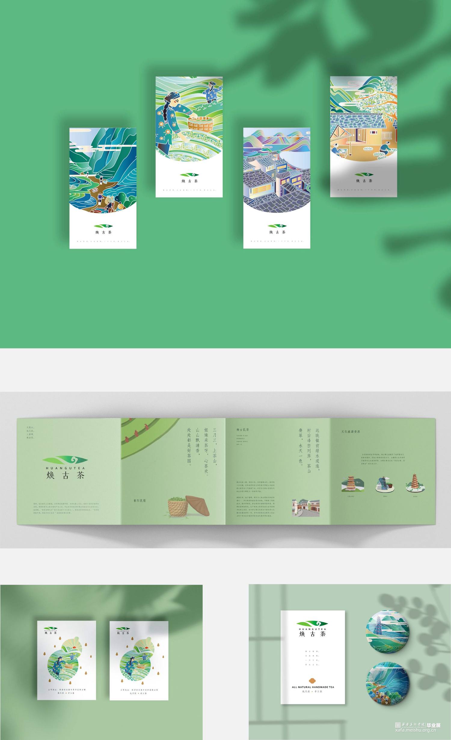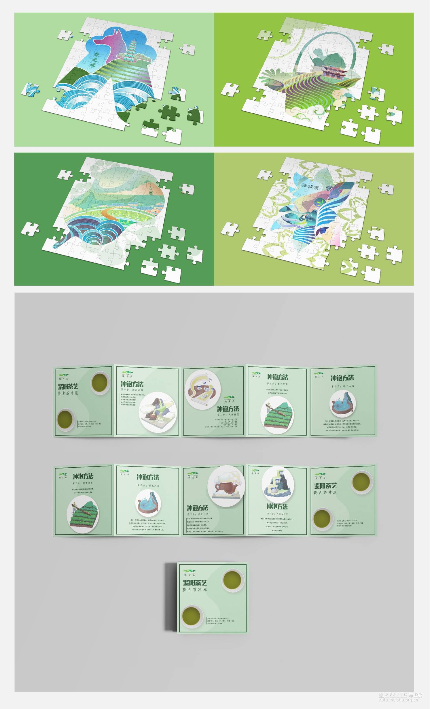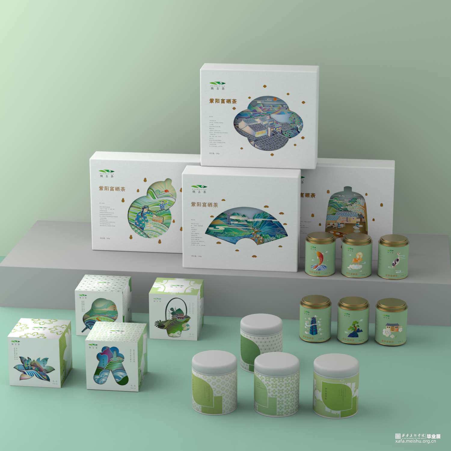 在240g的礼盒装插图上将地域文化与人文文化结合,选用焕古茶最有代表性的场景,如外包装的茶马古道,山水与古塔结合,采茶与紫阳民歌结合,石板房民居,制茶过程,