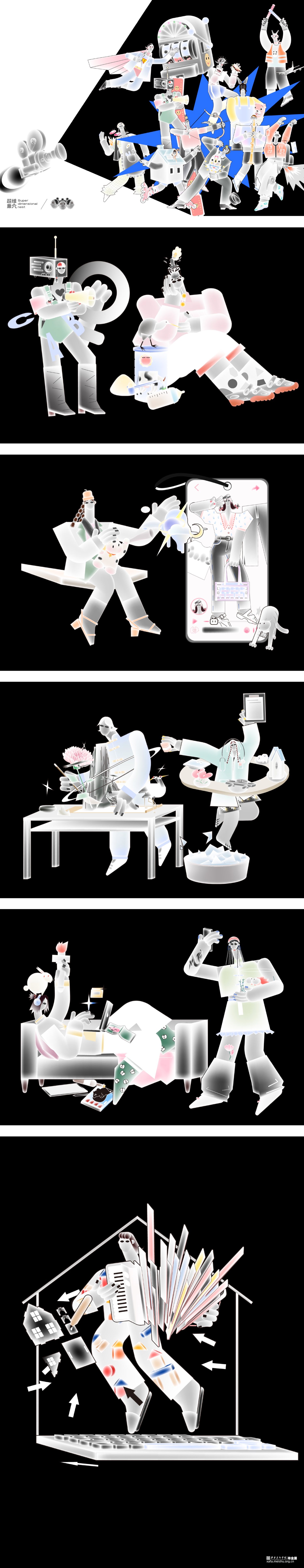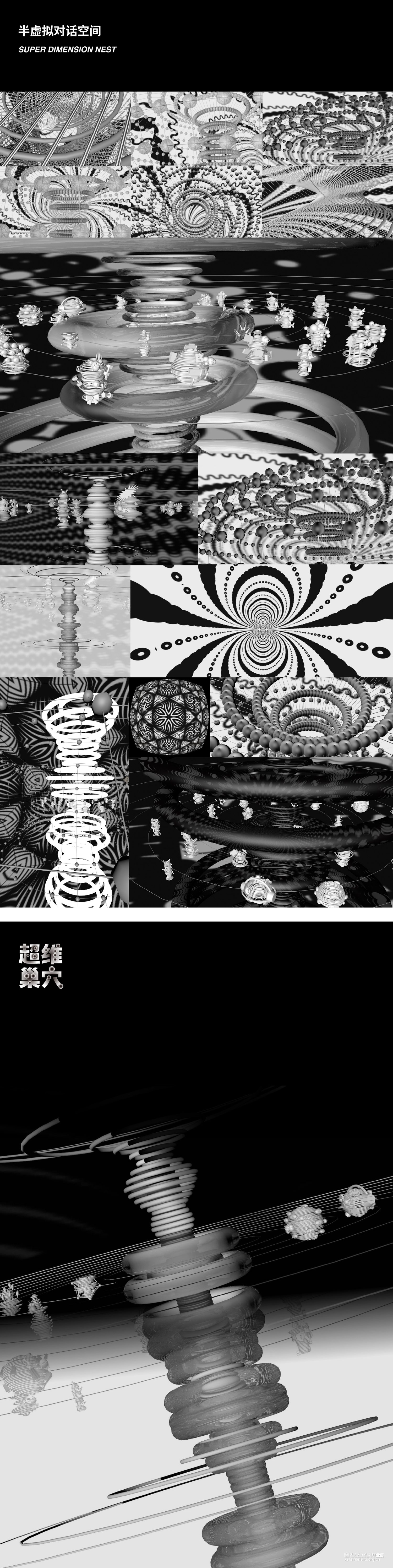 从个人入手,与个人交流,虚拟他们跨时空对话,来表现这个群体,探讨人与社会,独居与城市的结构,也就是得出超维巢穴的概念。