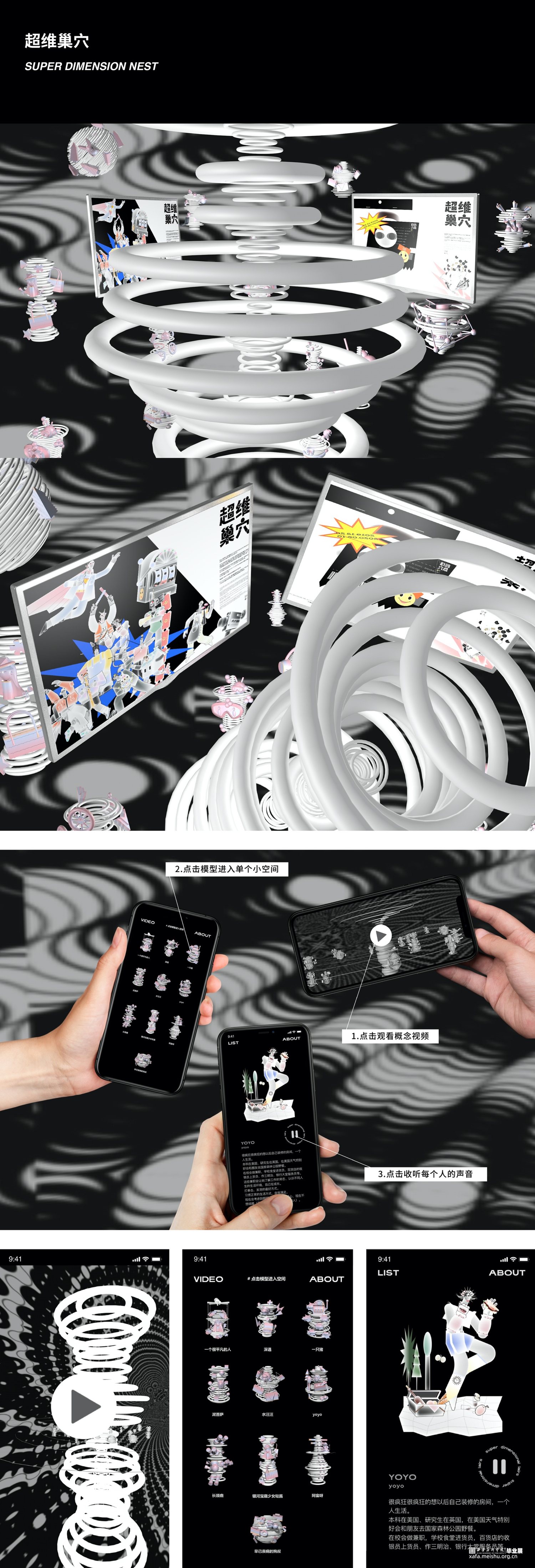 由于社会的发展,年轻人为追寻自己的梦想越来越多的散落世界各地,我们采访了60多名独居青年,通过构建半虚拟空间“超维巢穴”,让大家在穿梭视觉化场景的同时聆听不同时空下独居青年的"隔空对话"。