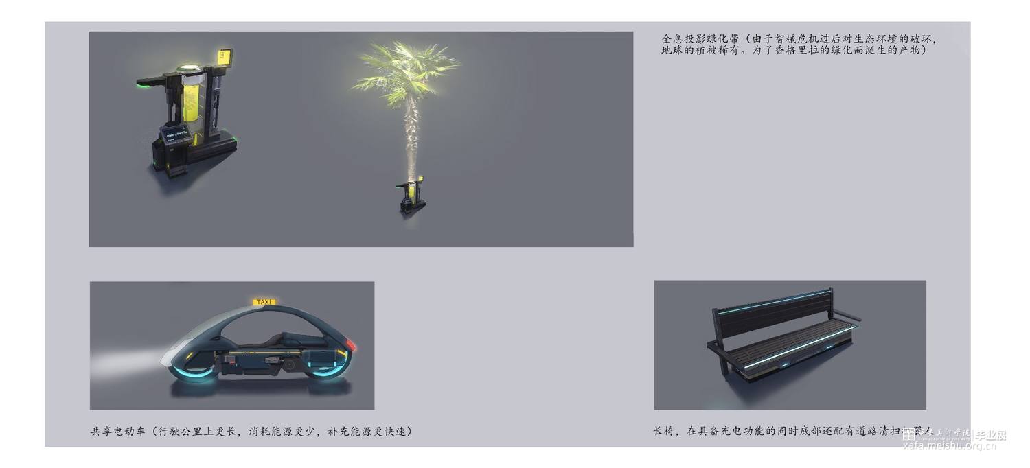 科技的高速发展反哺着人们的日常生活,夜晚的霓虹街区楼宇之间的正在播放新闻的全息影像,街道旁各类广告牌展示牌、正在营业的全自动无人商铺和无人售卖机。城市绿化也被更为先进的全息投影装置所取代。还有未来世
