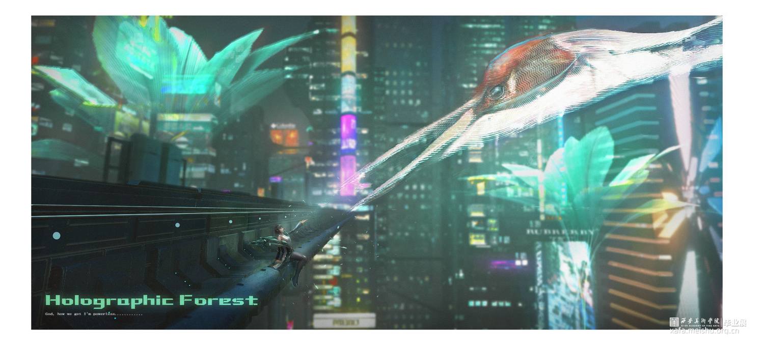 由于战争,以及曾经人类发展对环境的影响。在未来世界里绝大多数动植物都灭绝了,人们只能从以往的视频和资料中去认识、了解它们。高架桥边,一位女孩用投影装置将她喜欢的丹顶鹤投影在了楼宇之间(丹顶鹤自古依赖被