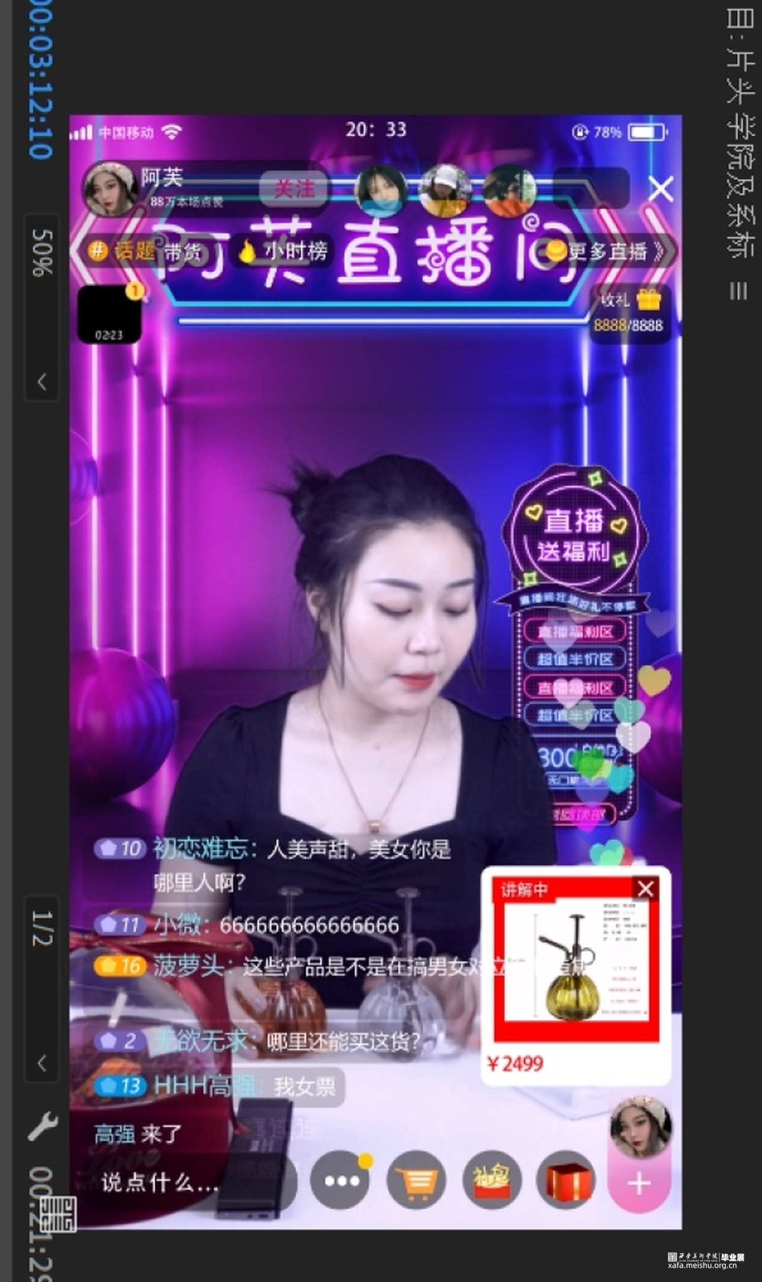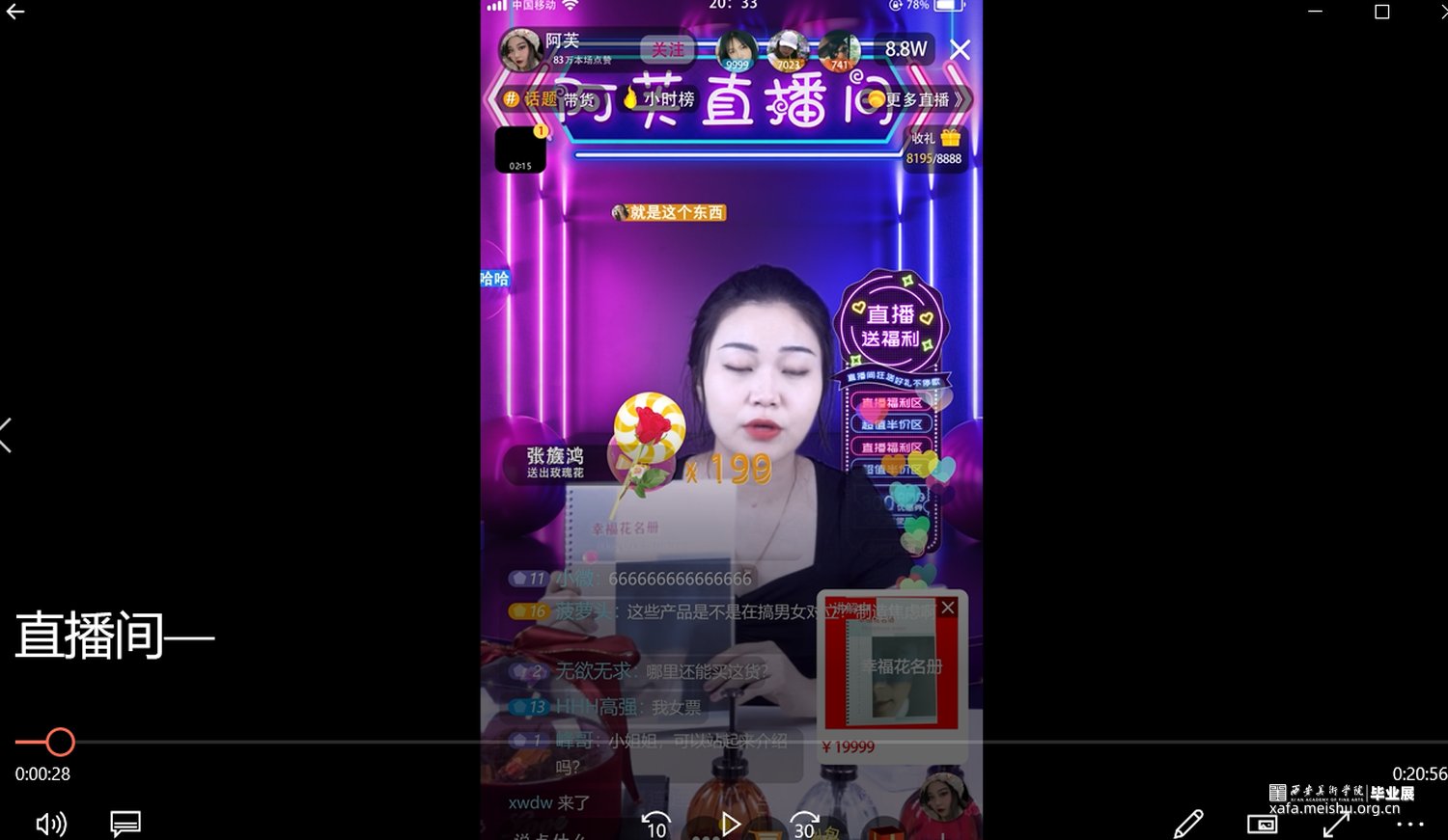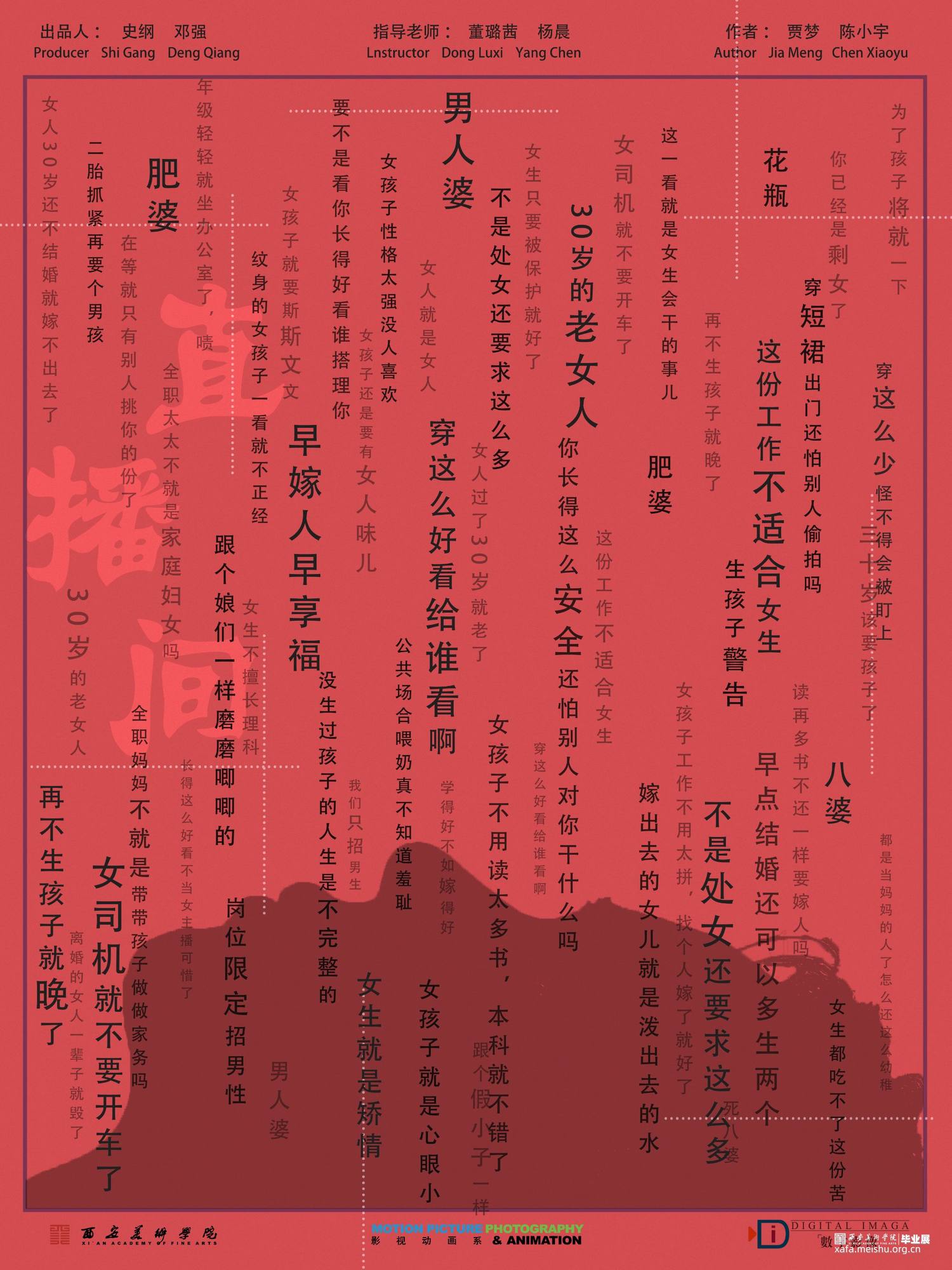 本作品总结了十种生活中常见的女性歧视现象,将这些现象物化成十个现实存在的商品,用后期特效模拟了一场网络卖货直播。这是一场关于物化与标签,关于女性歧视的虚拟直播。