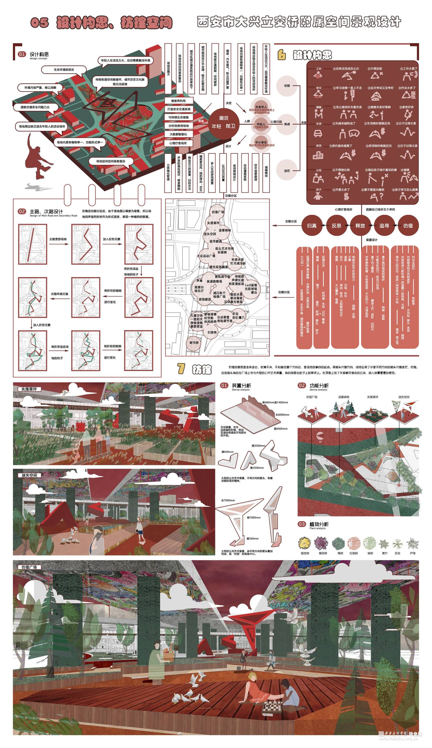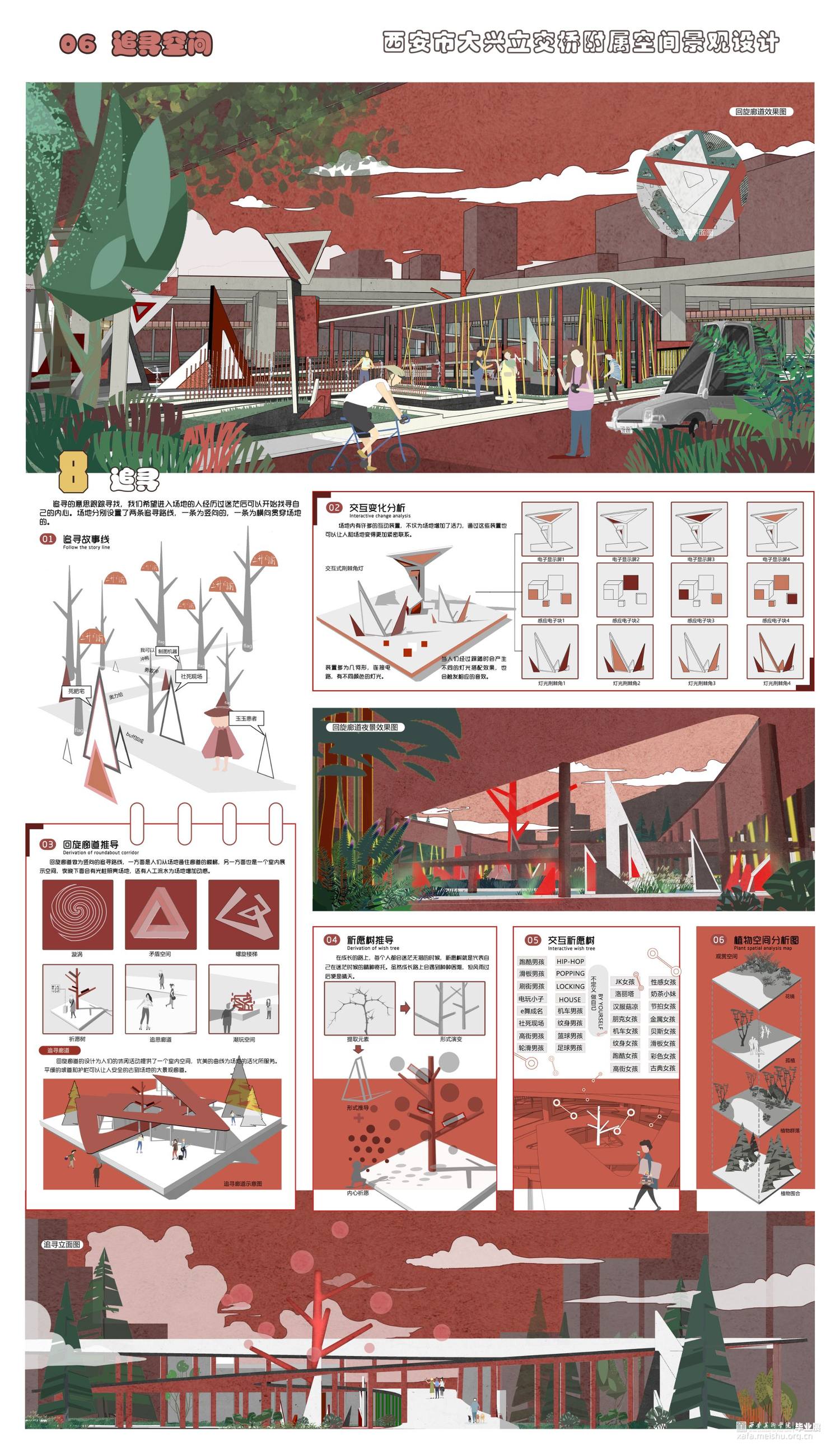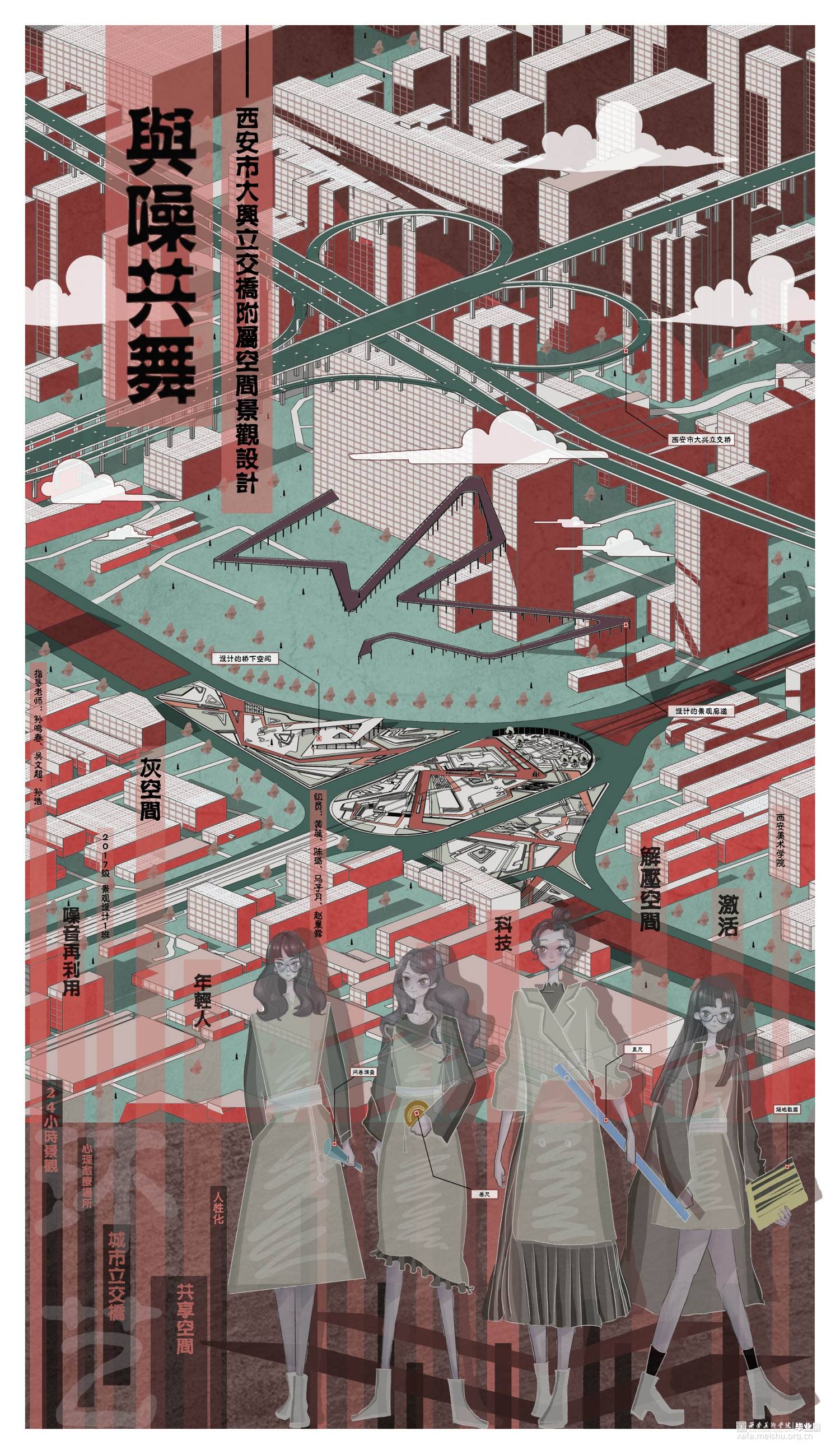高架桥的出现给人们出行解决了许多问题,与此同时由它的背光面引发的问题也不断增多。人们对于高架桥初始的想法是用它的受光面来解决城市交通拥挤的问题,但由于高架桥而形成的桥下灰色空间却变得难以利用,成为城市的消极空间,这个消极空间存在着光线、高度受限的问题,同时由于四周及上方都是市政交通,也存在着灰尘大、噪声严重的问题。高架桥下消极空间的出现,不仅使周围居民出行出现问题,也使得经过这个场地的人们存在着一定的安全隐患,加上城市的可利用空间越来越少,如何利用高架桥下的消极空间显得尤为重要。此次设计,旨在将高架桥下